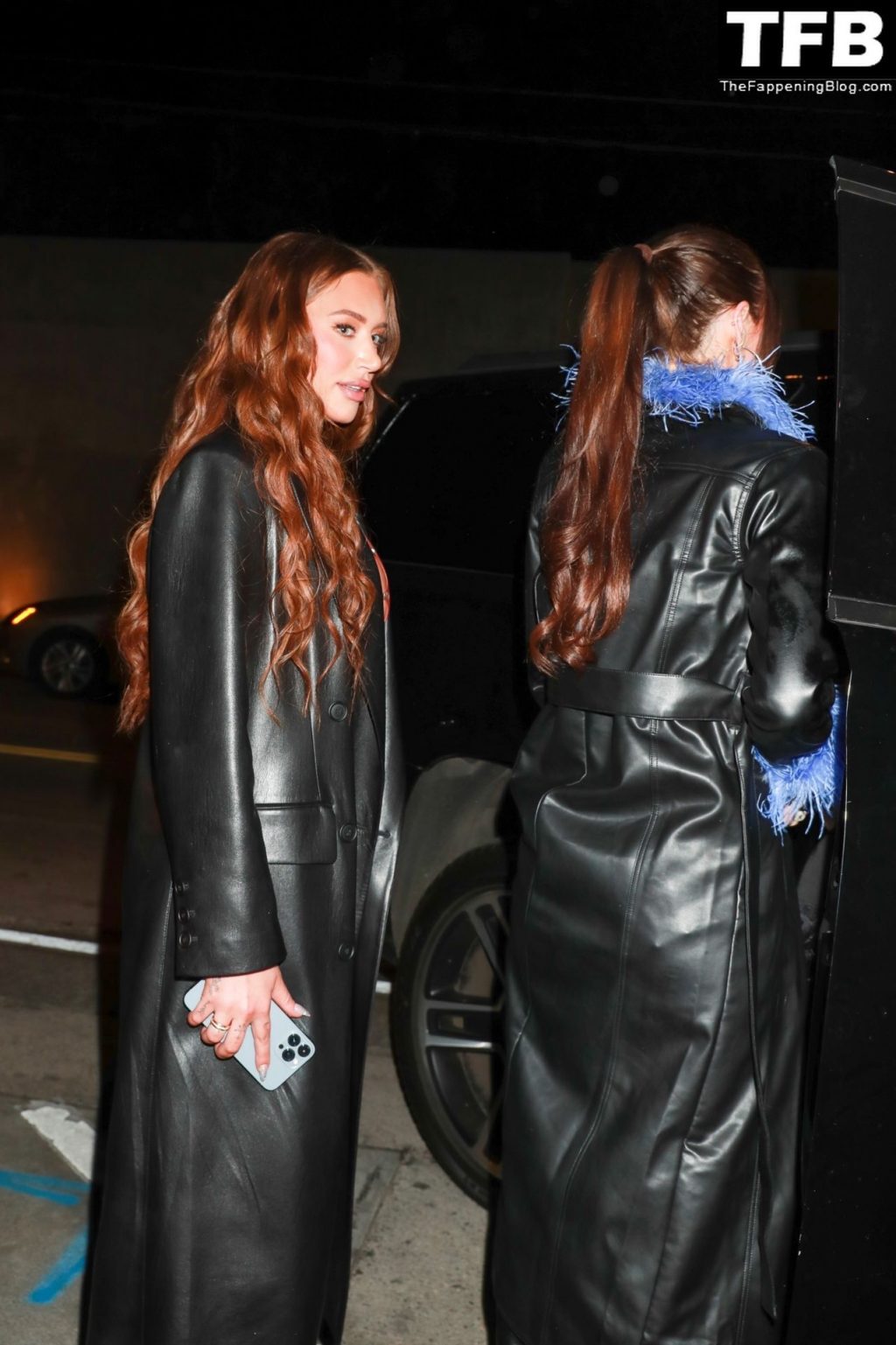 La mejor amiga de Kylie Jenner, Anastasia ‘Stassi’ Karanikolaou, luce un nuevo look mientras deslumbra con un abrigo de cuero negro durante una cena con amigas en Craig’s en West Hollywood, 30/01/2022.