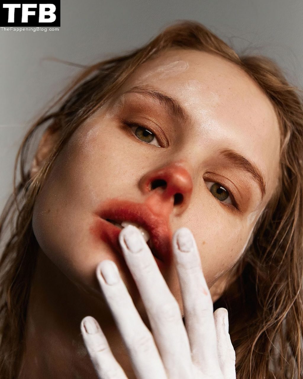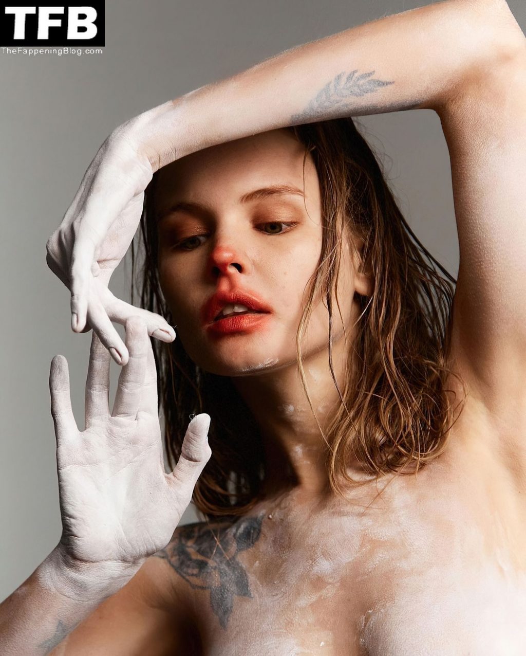 La modelo/actriz rusa Anastasiya Scheglova luce espectacular mientras posa desnuda, cubriendo sus pechos naturales en una sesión fotográfica de Dasha Mayer (2021).