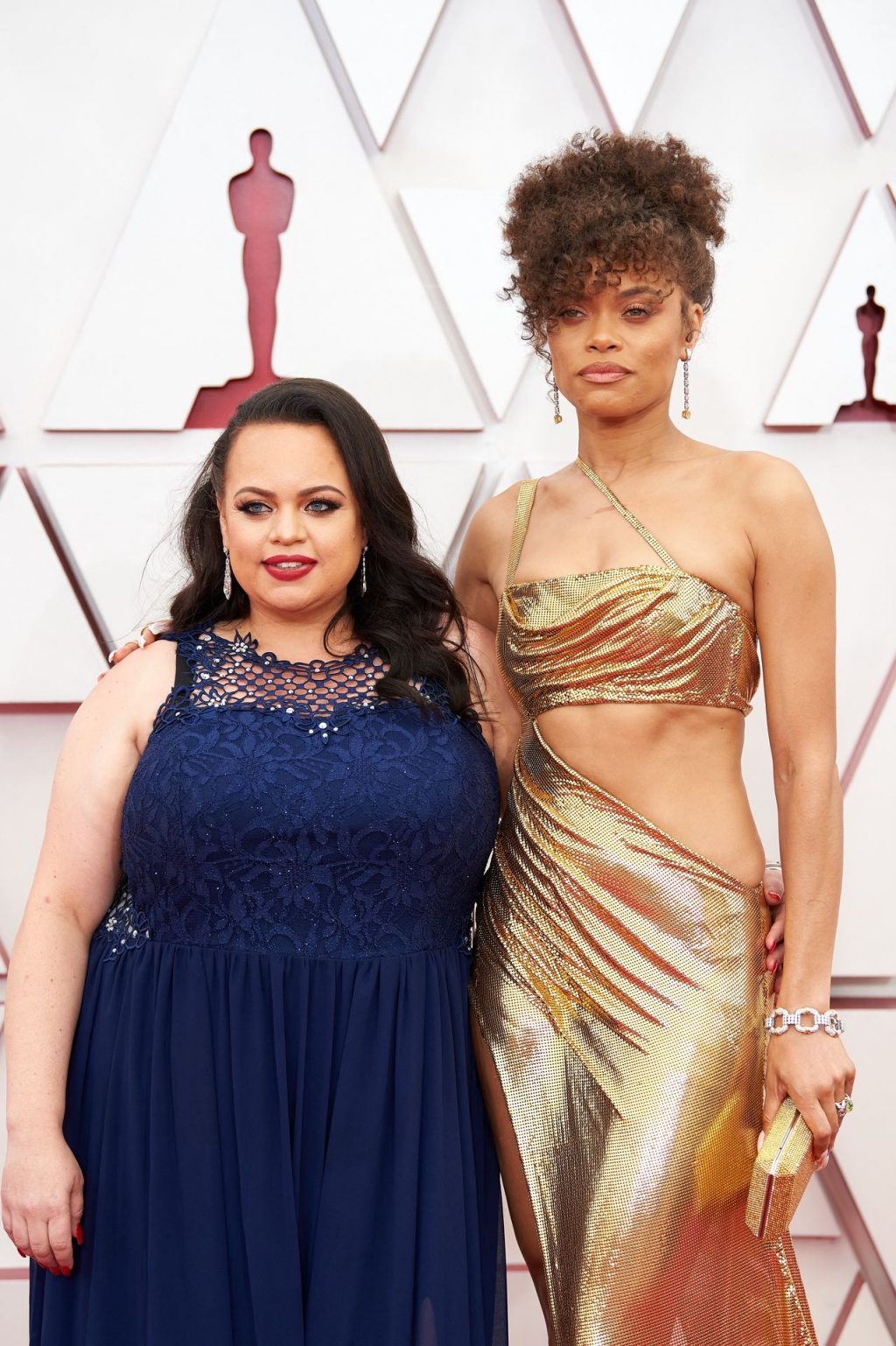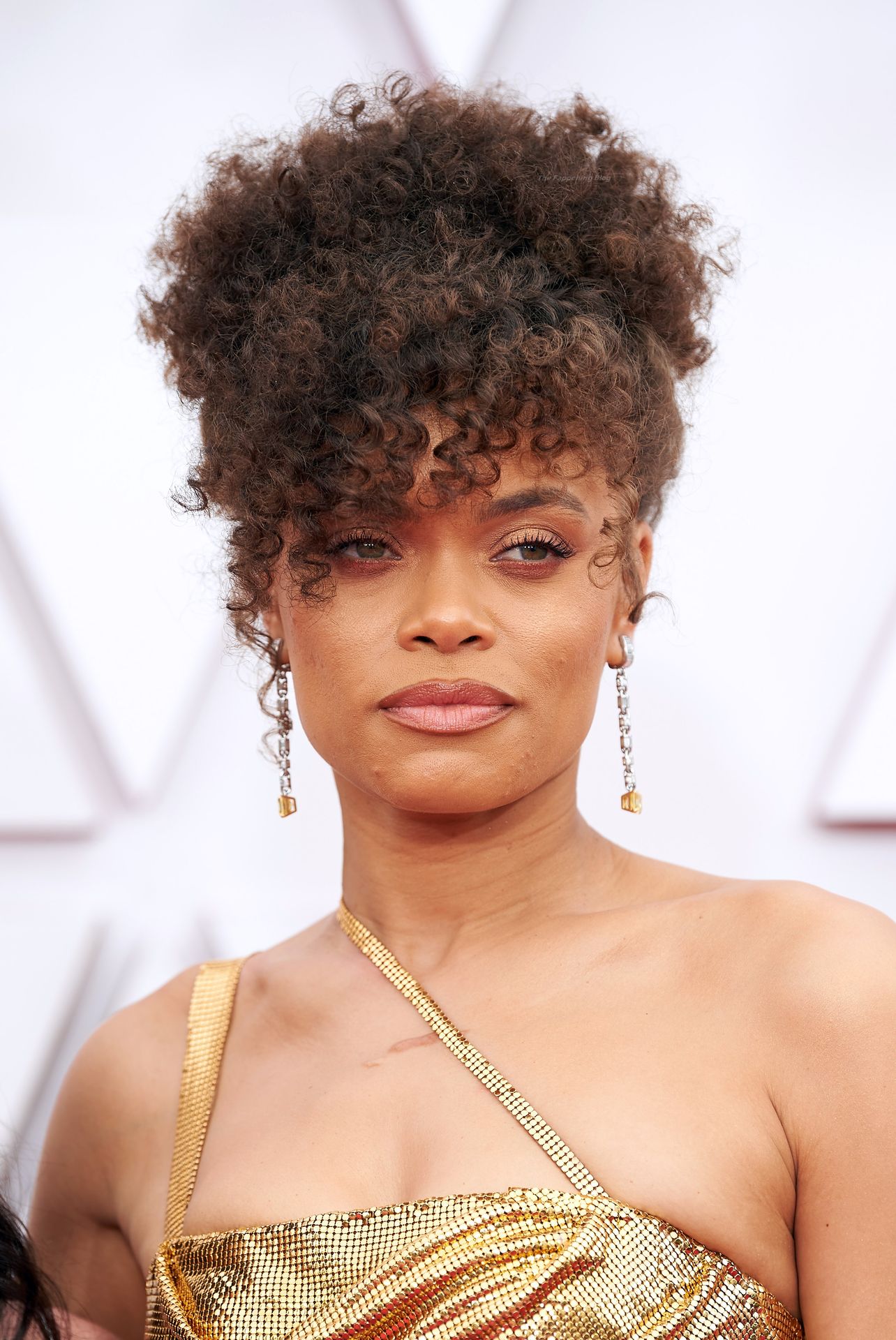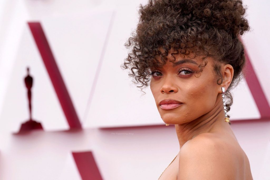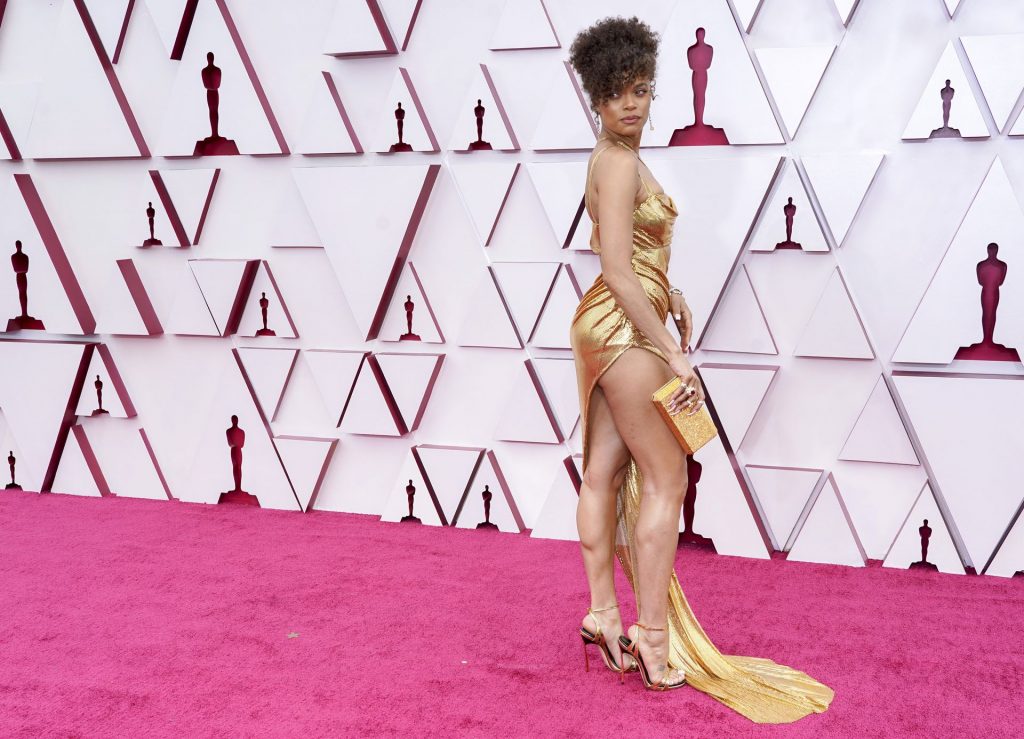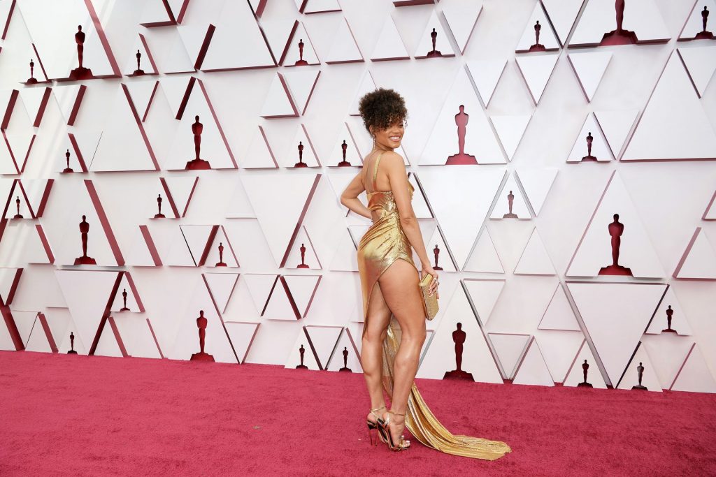 La actriz y cantante estadounidense Andra Day llega a la alfombra roja de la 93ª Entrega de los Oscars en Union Station en Los Ángeles, 25/04/2021.