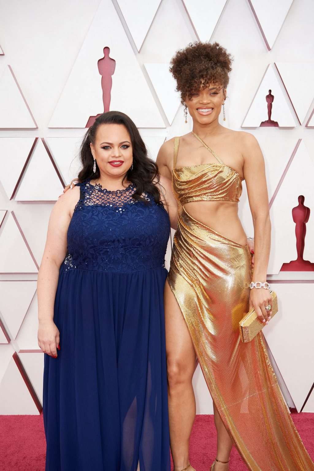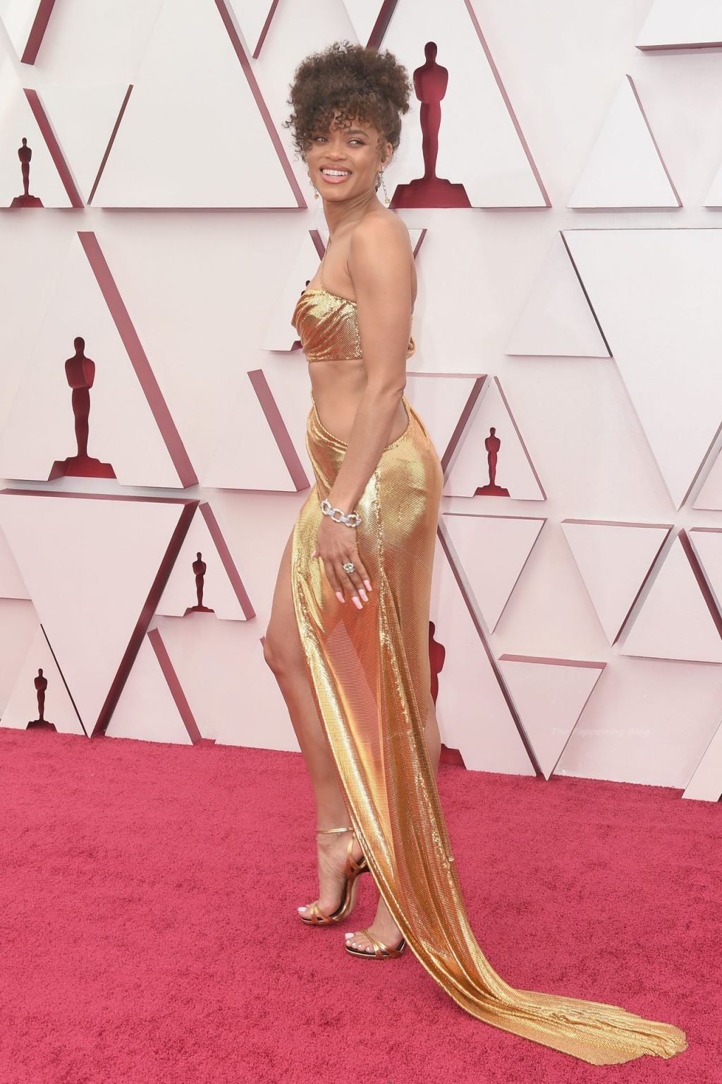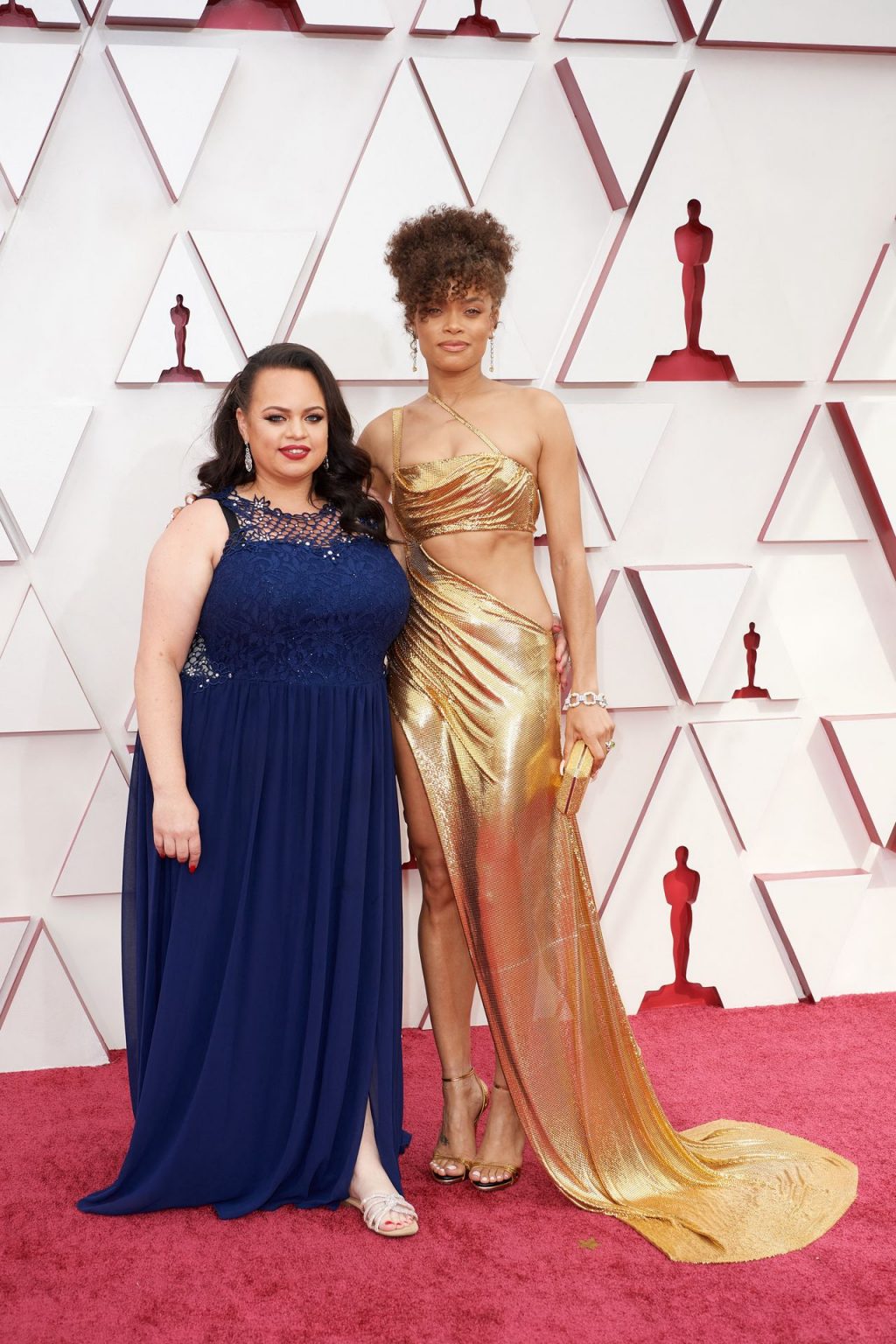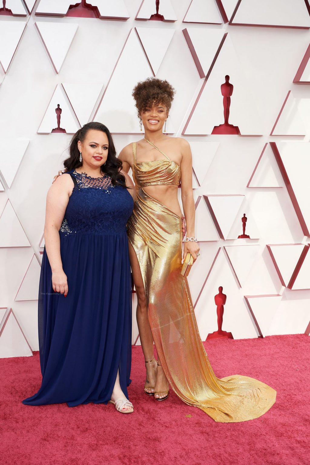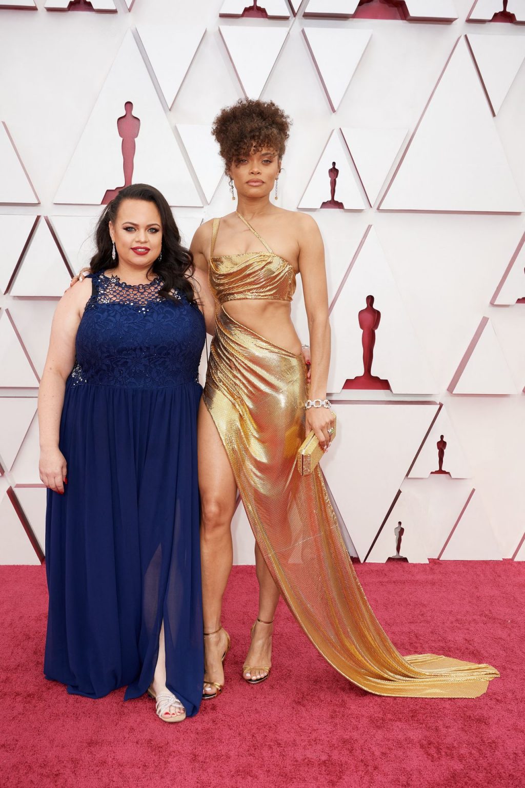 La actriz y cantante estadounidense Andra Day llega a la alfombra roja de la 93ª Entrega de los Oscars en Union Station en Los Ángeles, 25/04/2021.