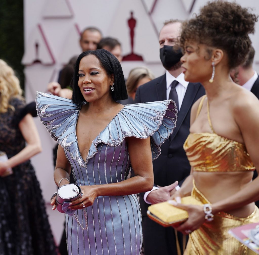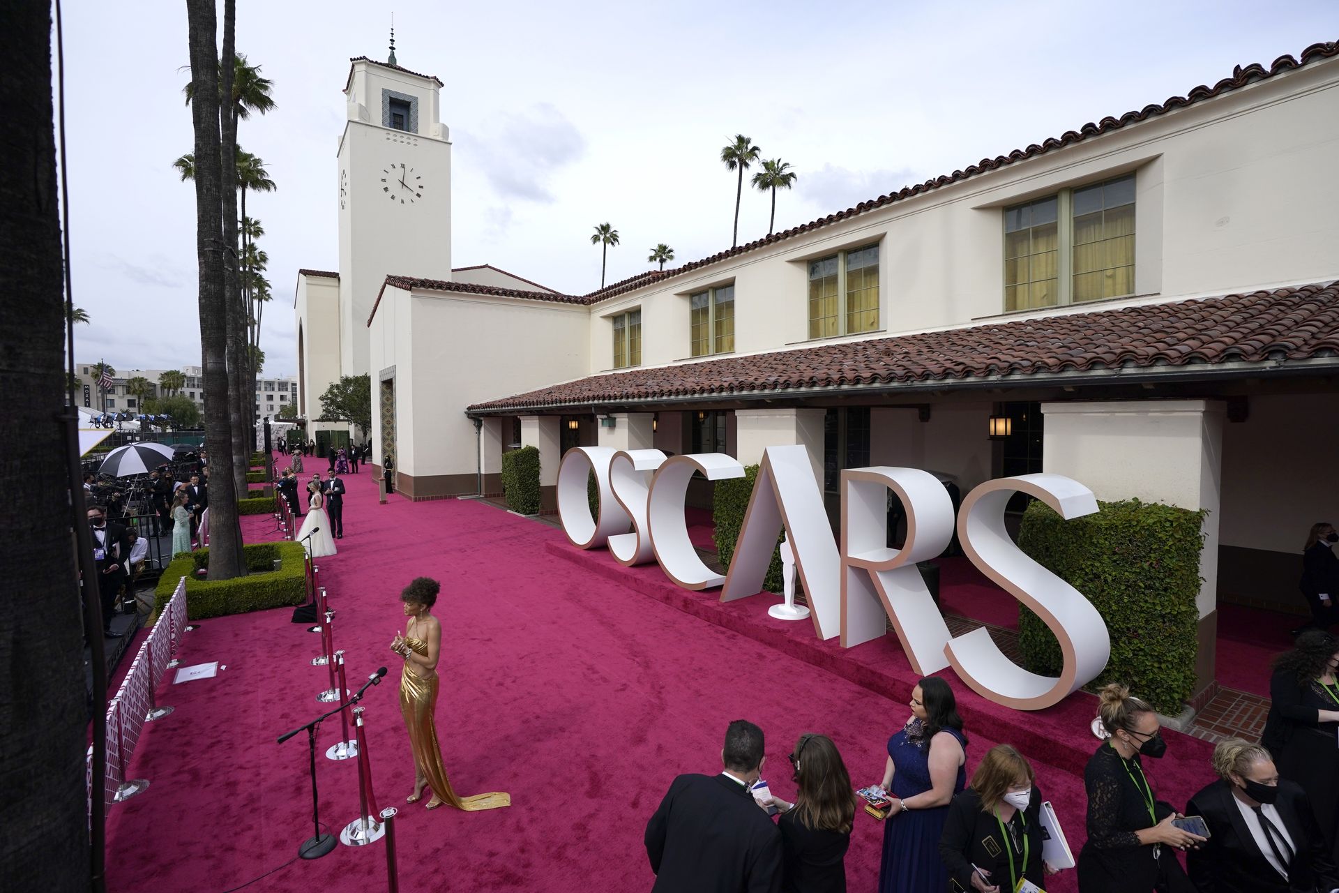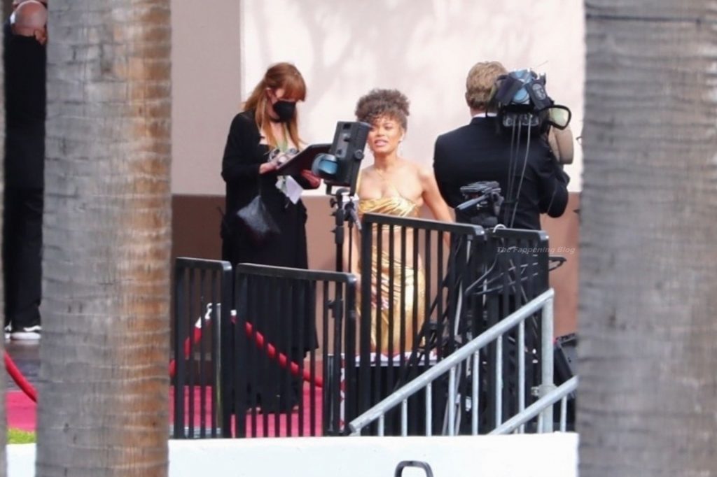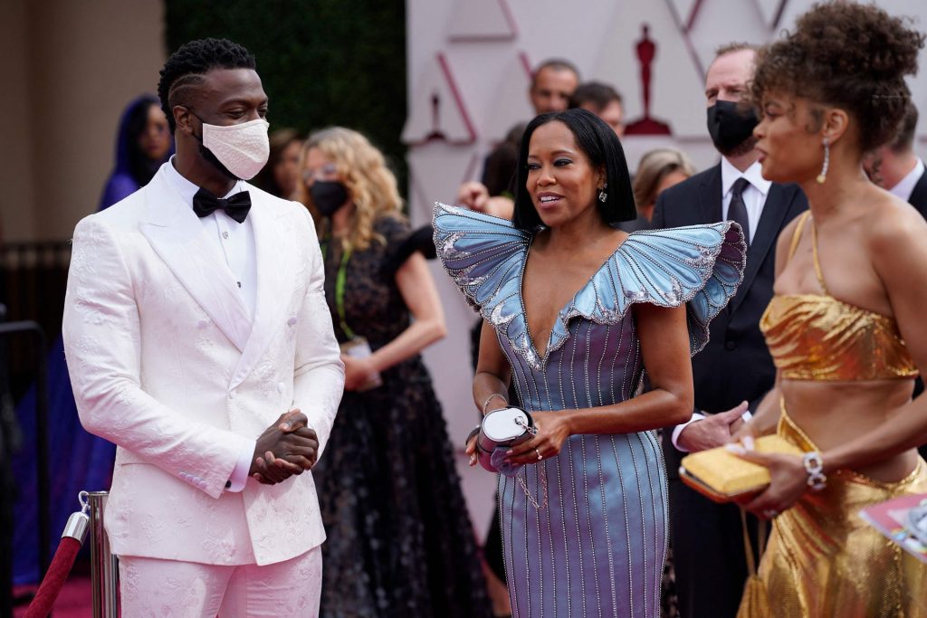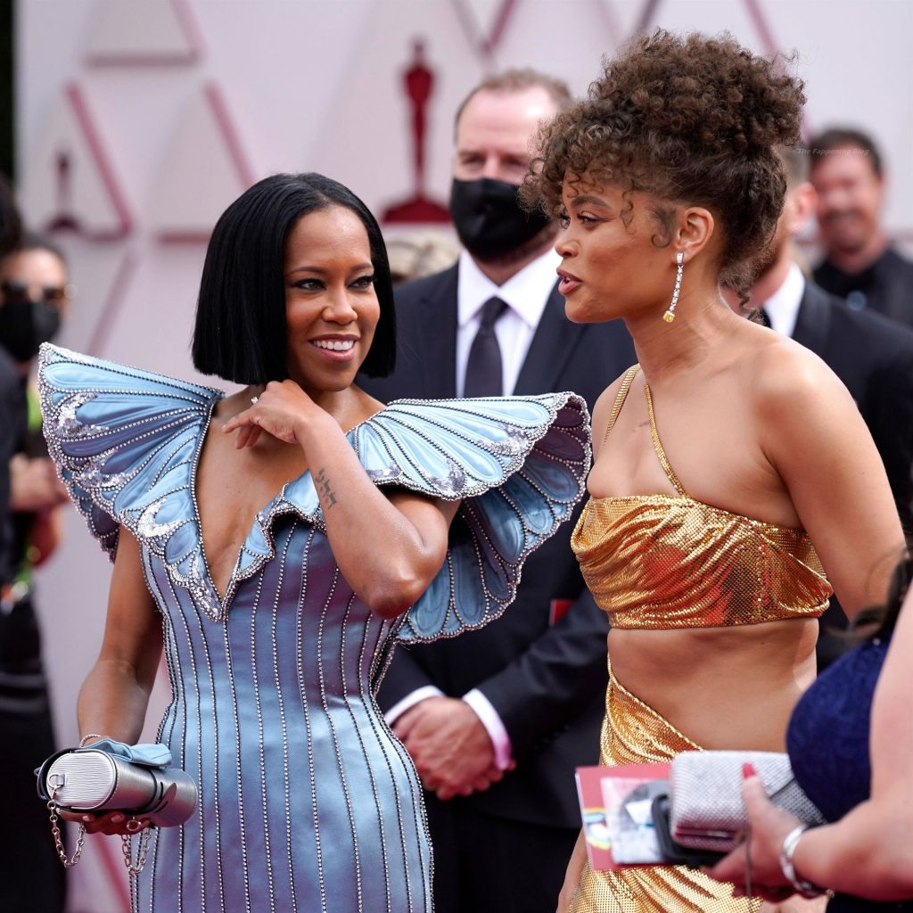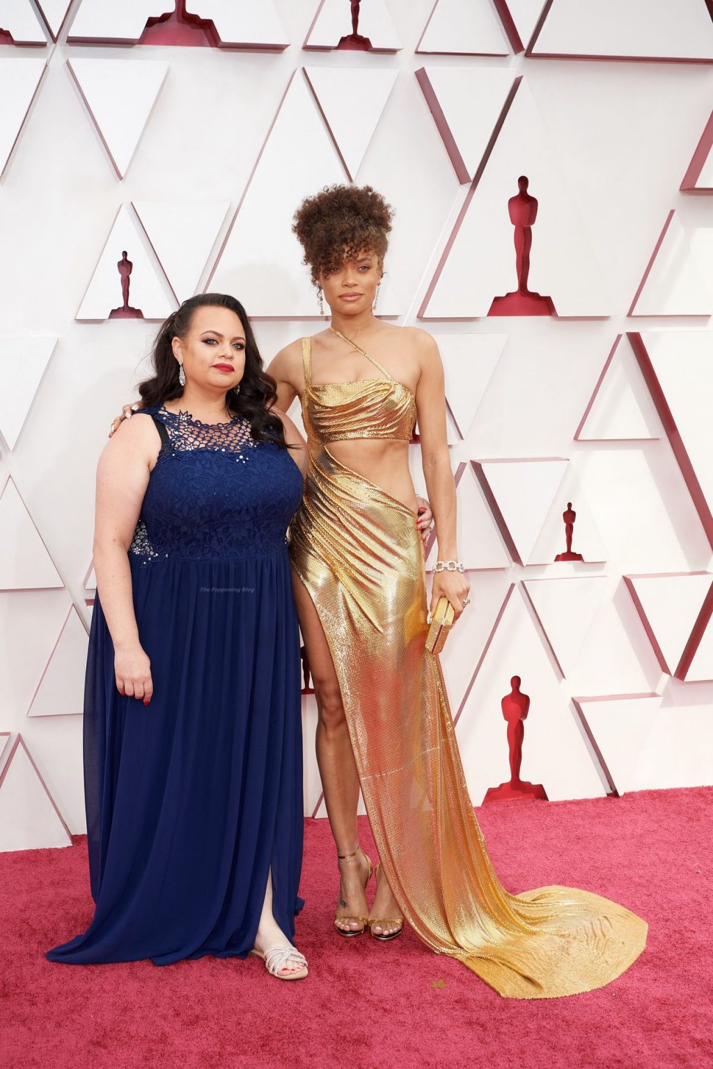 La actriz y cantante estadounidense Andra Day llega a la alfombra roja de la 93ª Entrega de los Oscars en Union Station en Los Ángeles, 25/04/2021.