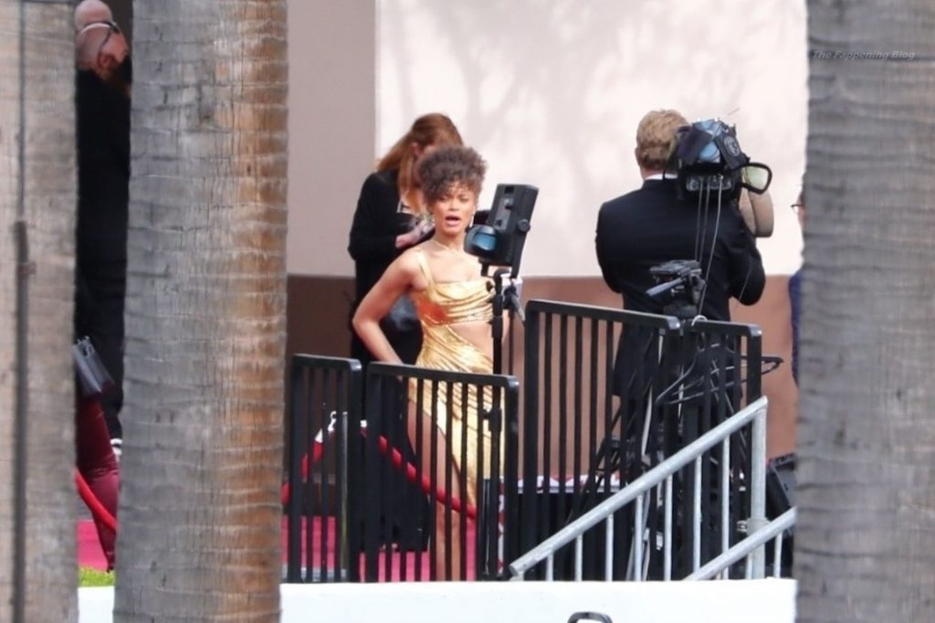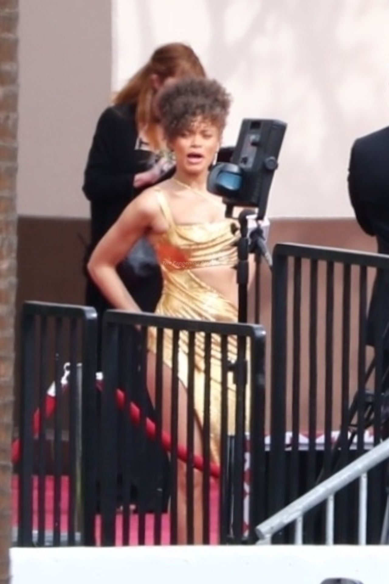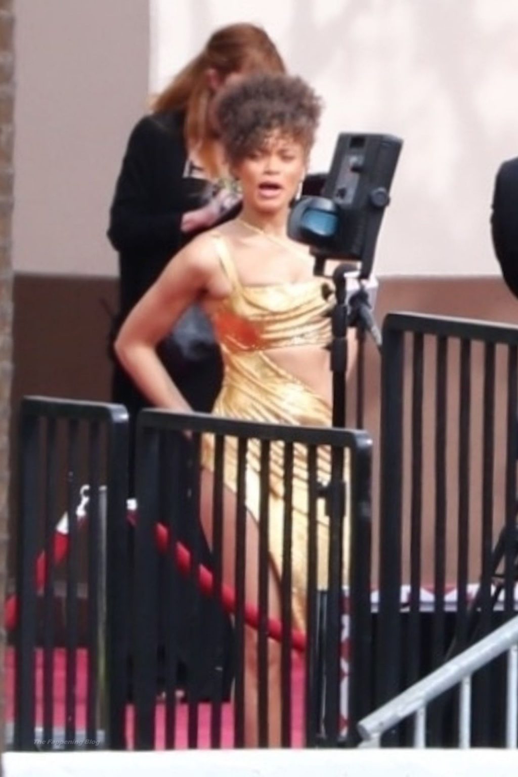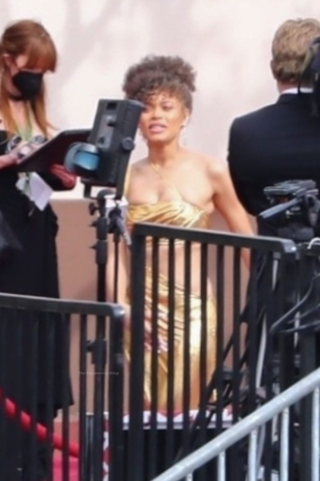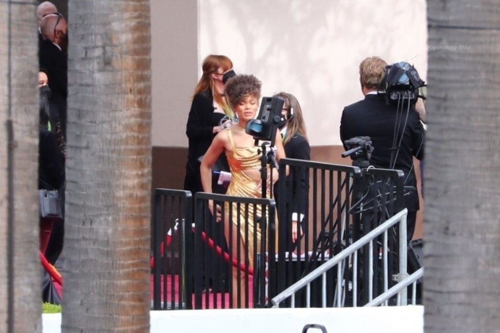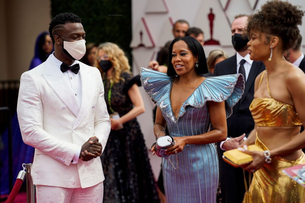 La actriz y cantante estadounidense Andra Day llega a la alfombra roja de la 93ª Entrega de los Oscars en Union Station en Los Ángeles, 25/04/2021.