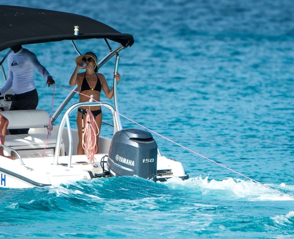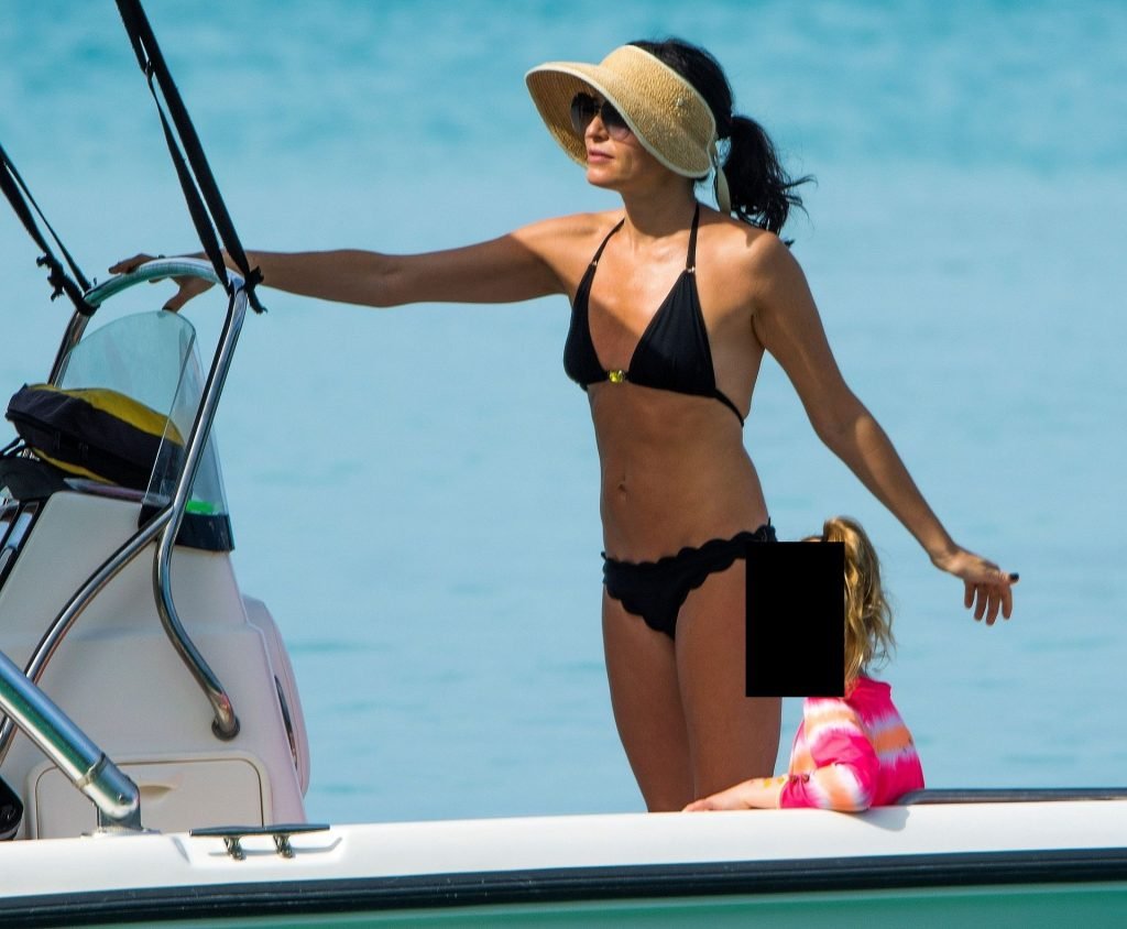 La cantante irlandesa Andrea Corr y su familia disfrutan de un día en la playa en Barbados, 18/02/2019. Andrea mostró sus abdominales marcados en su bikini mientras estaba en la playa.
