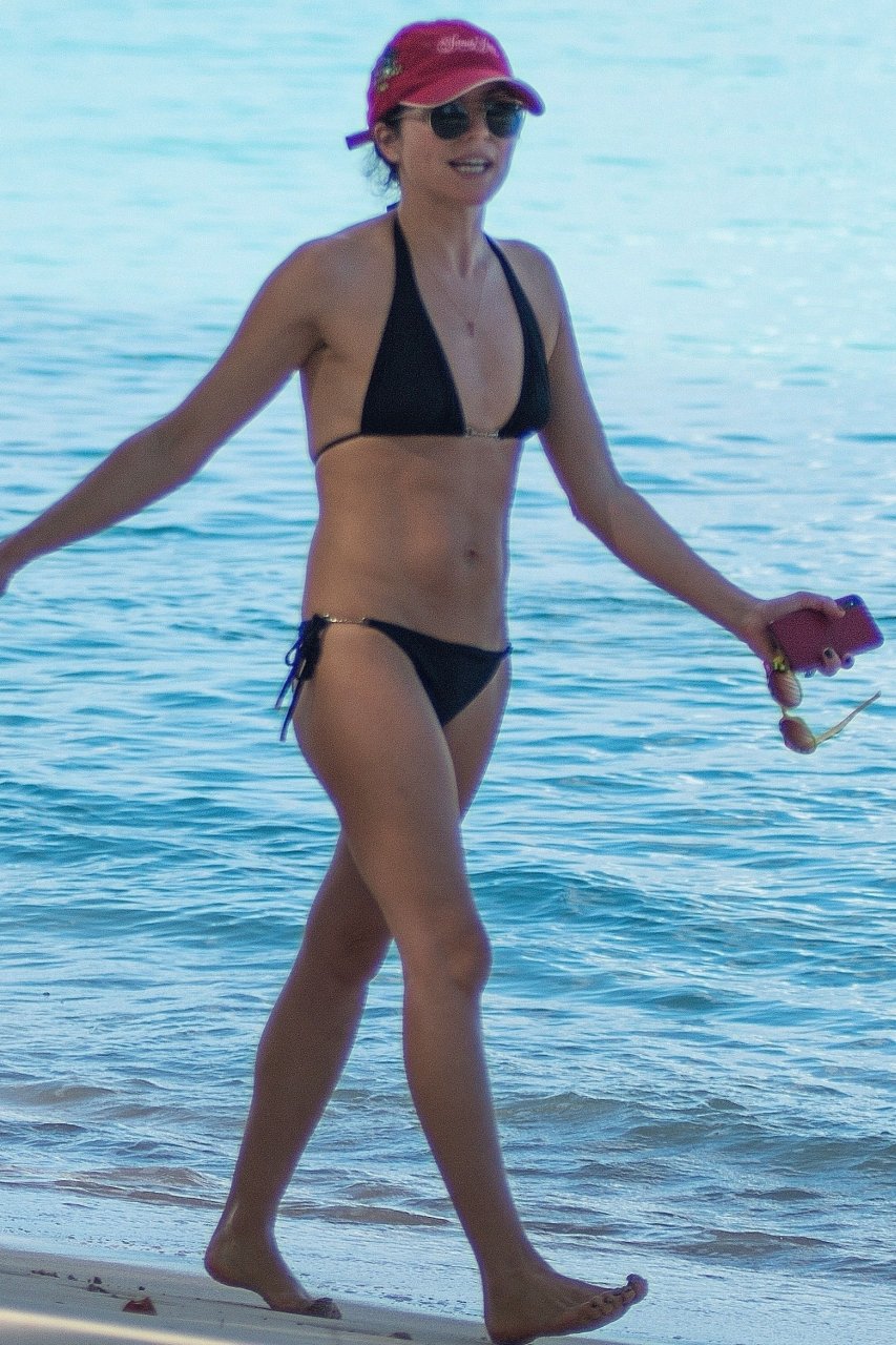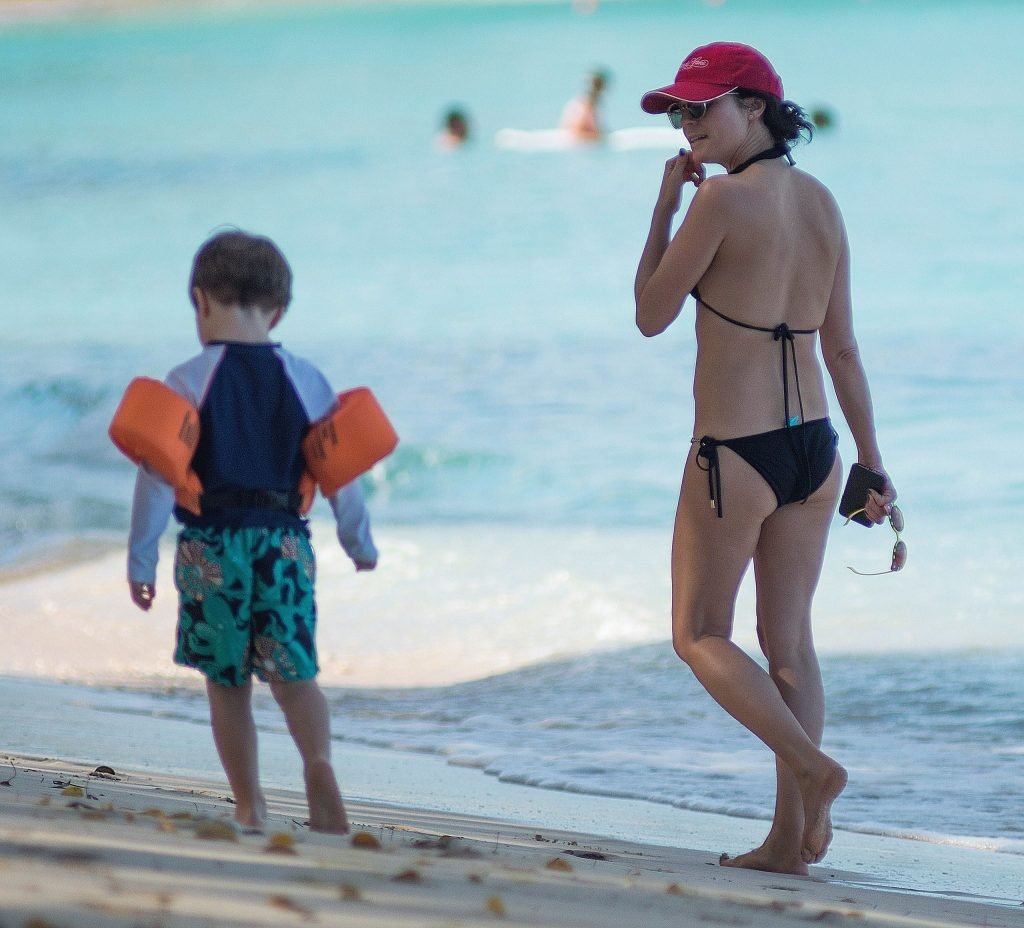 La actriz y cantante irlandesa Andrea Corr, de 43 años, se pone un bikini negro y disfruta de un día relajante en la playa con su familia en Barbados, 24/03/2018. Andrea caminó por la orilla y nadó un poco.