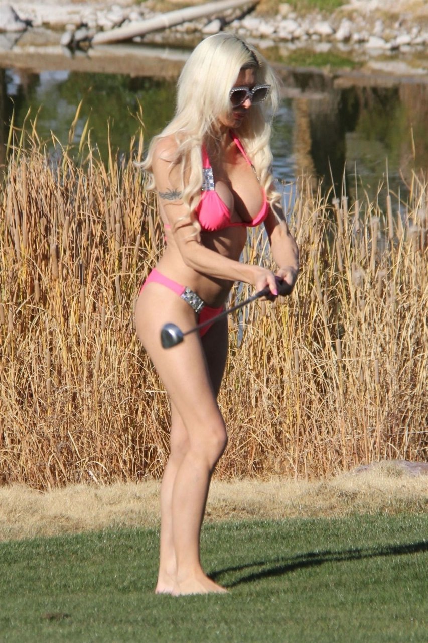 La estrella de reality Angelique “Frenchy” Morgan posa en un bikini rosa en un campo de golf en Las Vegas, 21/11/2018. Frenchy está pasando sus vacaciones de Acción de Gracias en la Ciudad del Pecado.