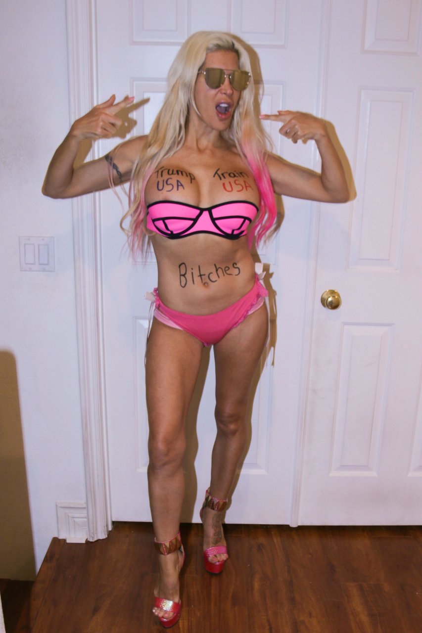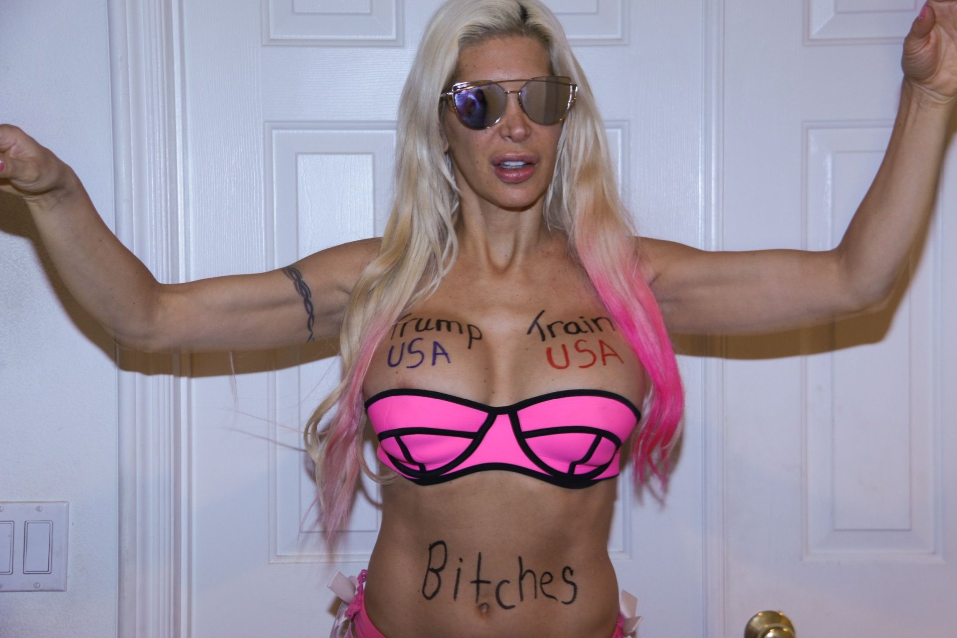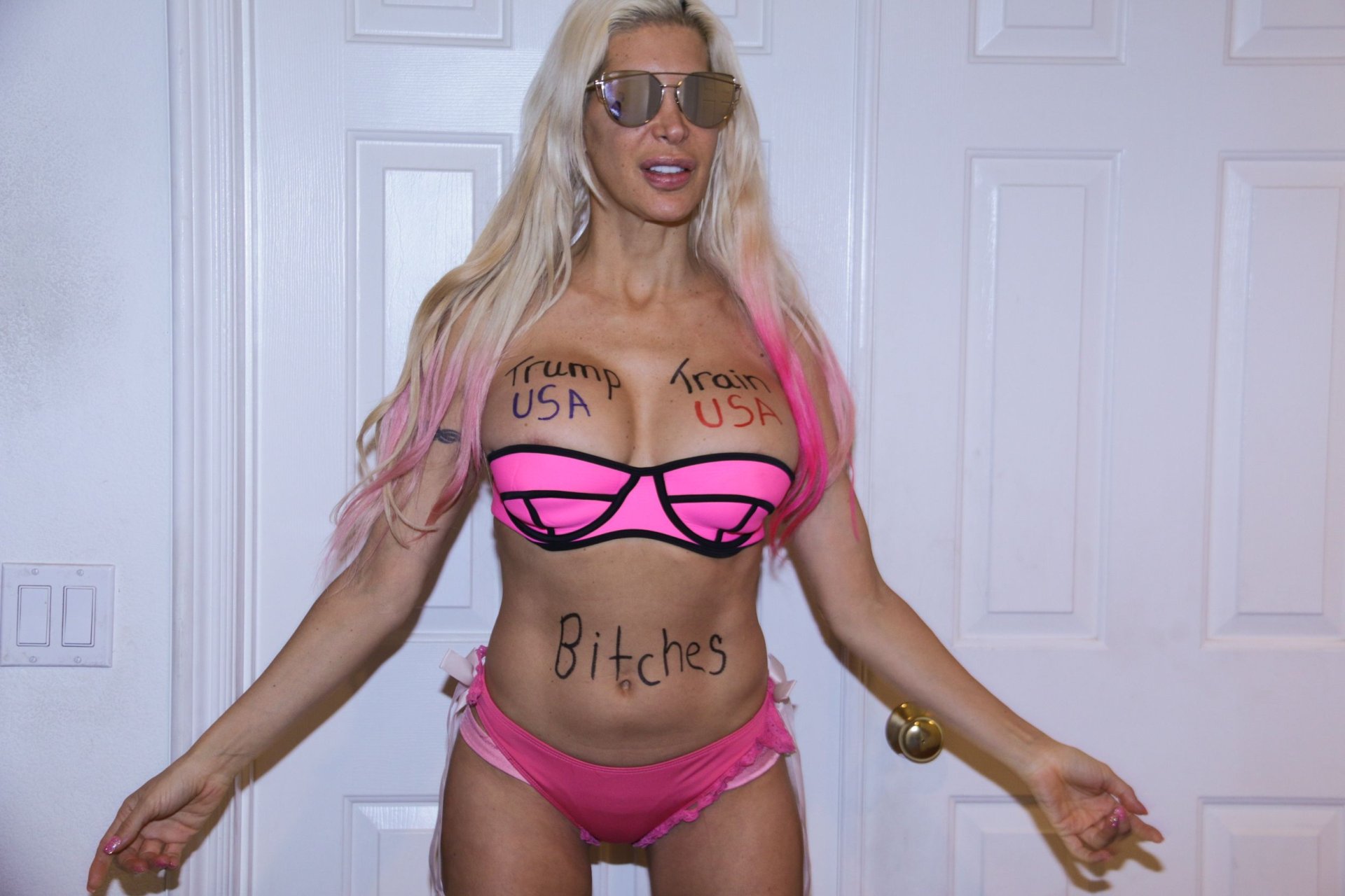 qué perra tan estúpida, fea y jodidamente tonta con tetas falsas como rocas y una mandíbula cuadrada y masculina... ahora esta cosa sí parece un travesti... jódete tRump...