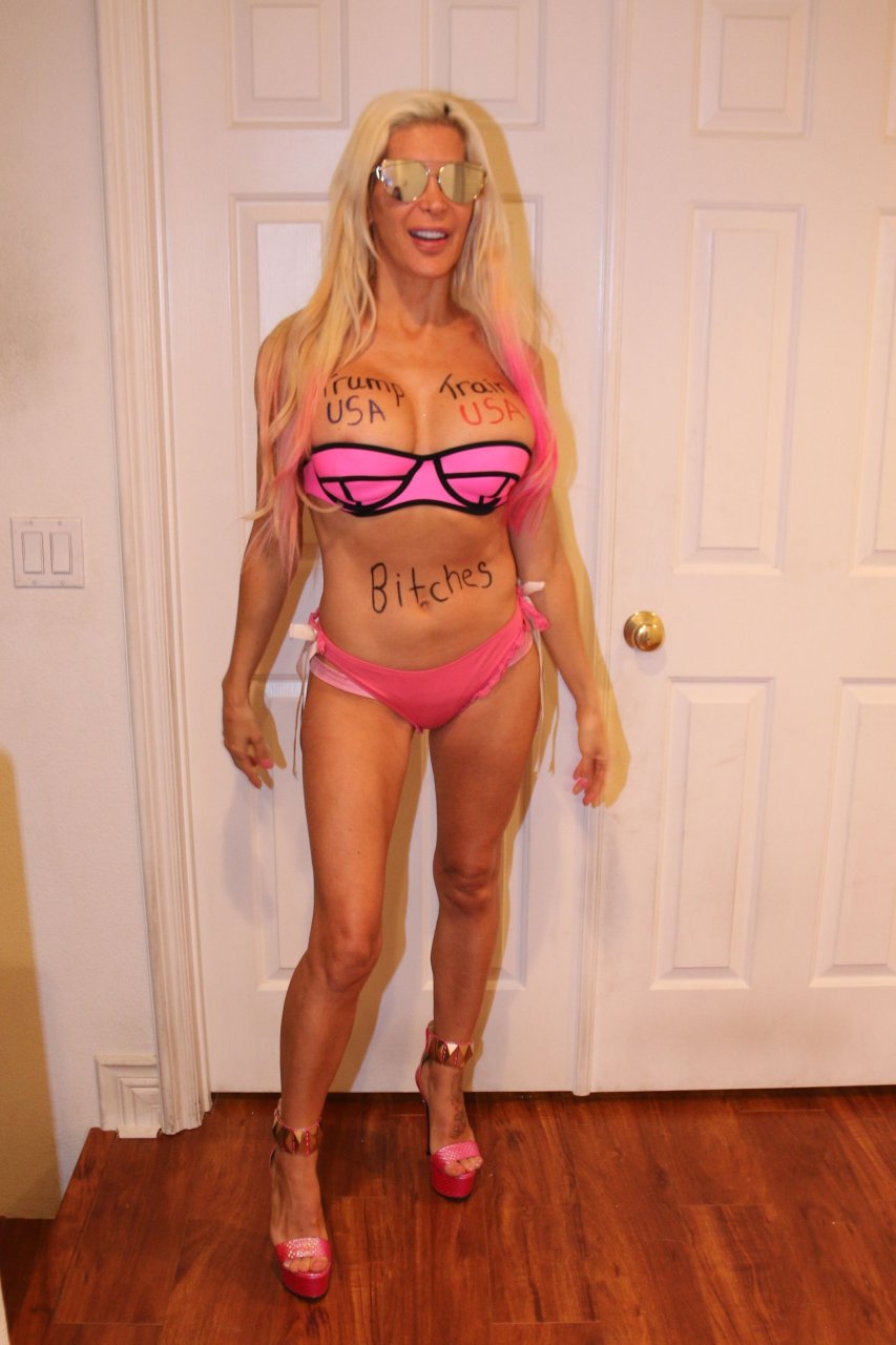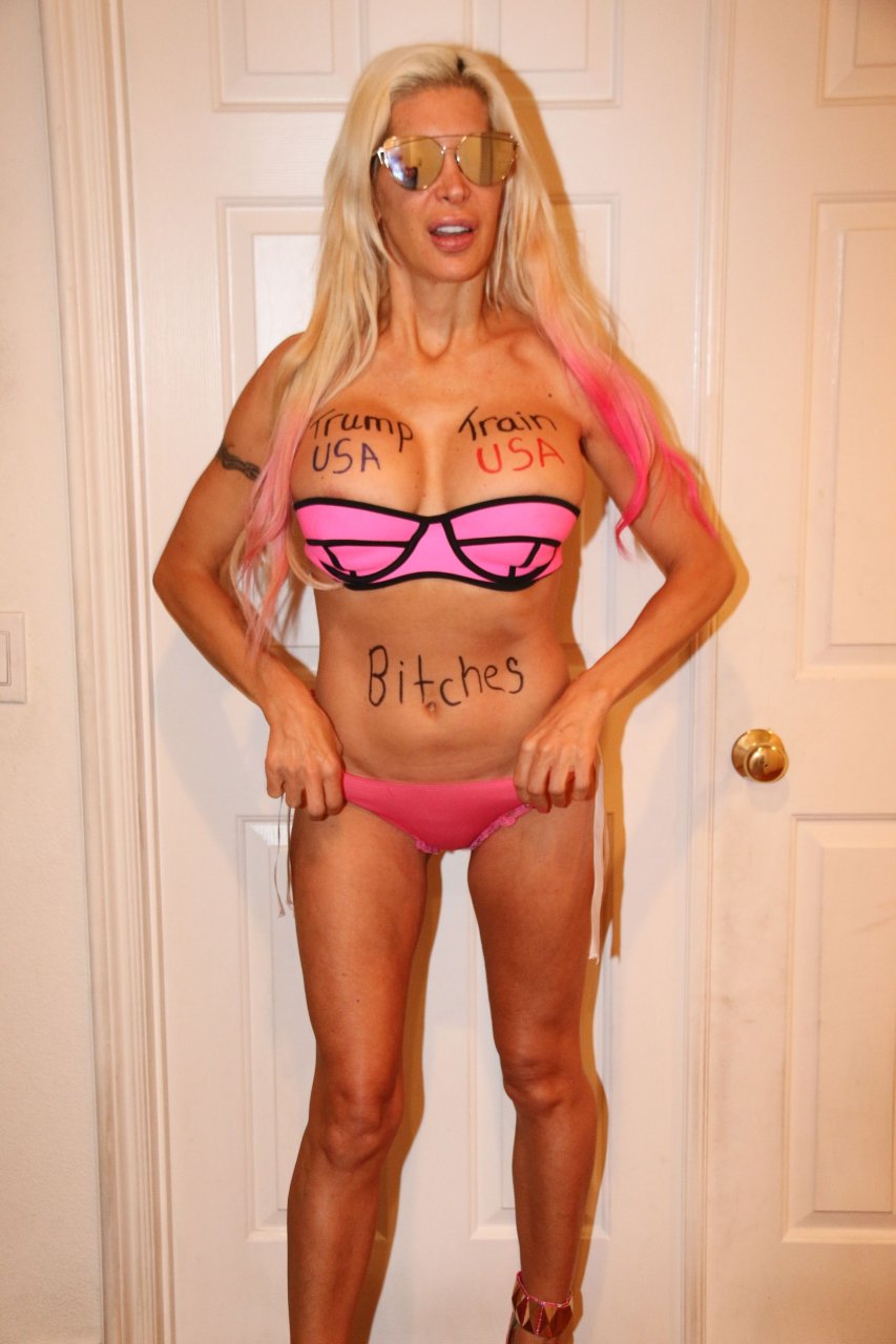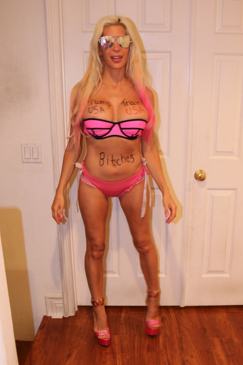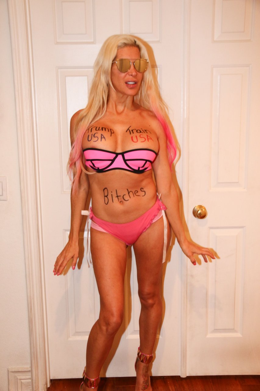 qué perra tan estúpida, fea y jodidamente tonta con tetas falsas como rocas y una mandíbula cuadrada y masculina... ahora esta cosa sí parece un travesti... jódete tRump...