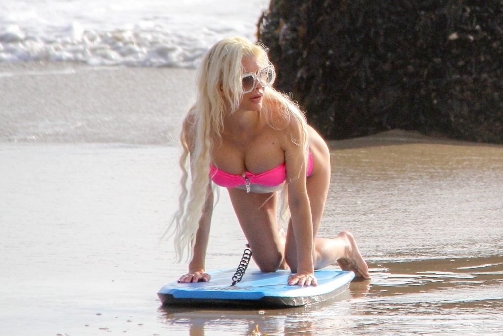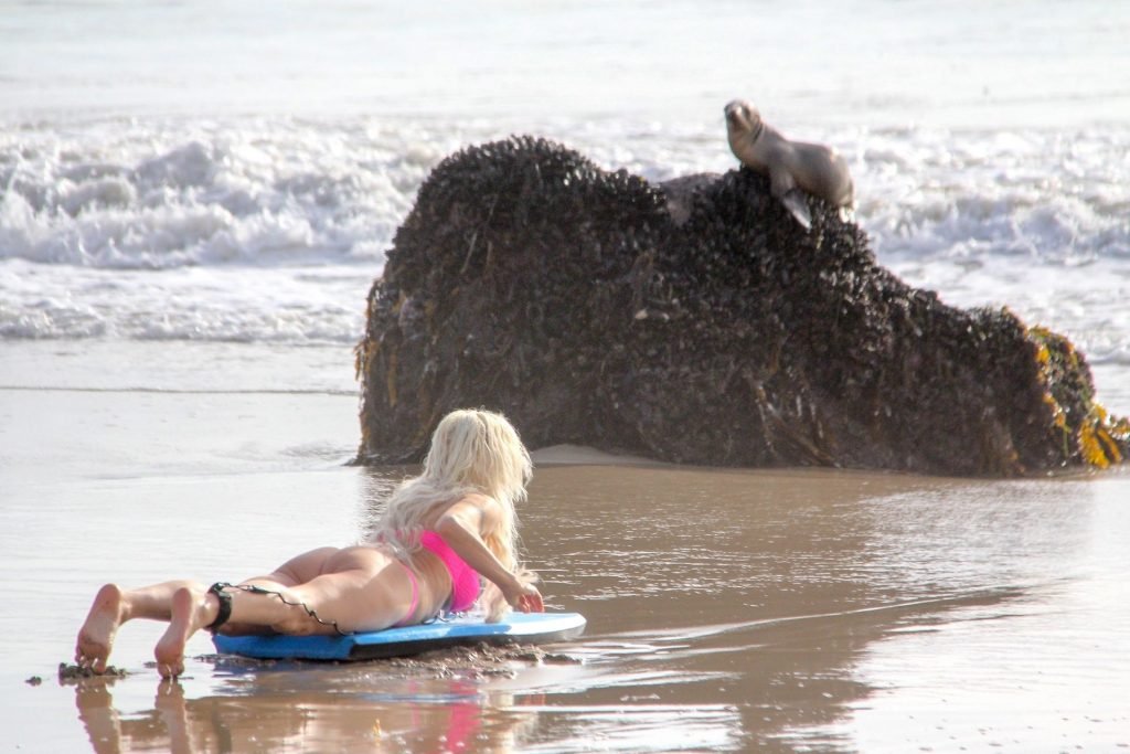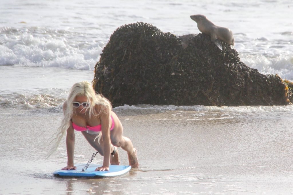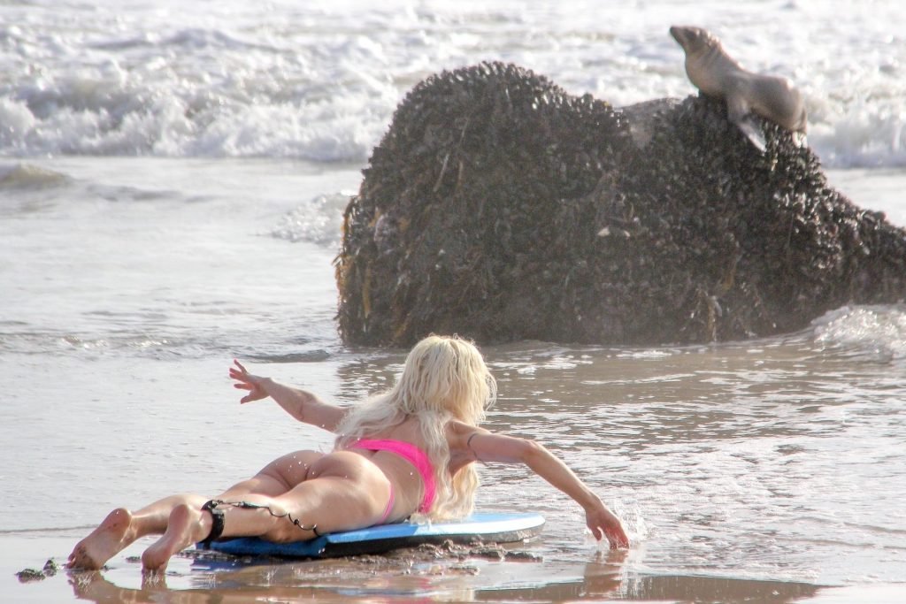 Blanca Angelique “Frenchy” Morgan fue vista en un bikini rosa en la playa de Malibu mostrando sus habilidades en bodyboard, 01/03/2019.
