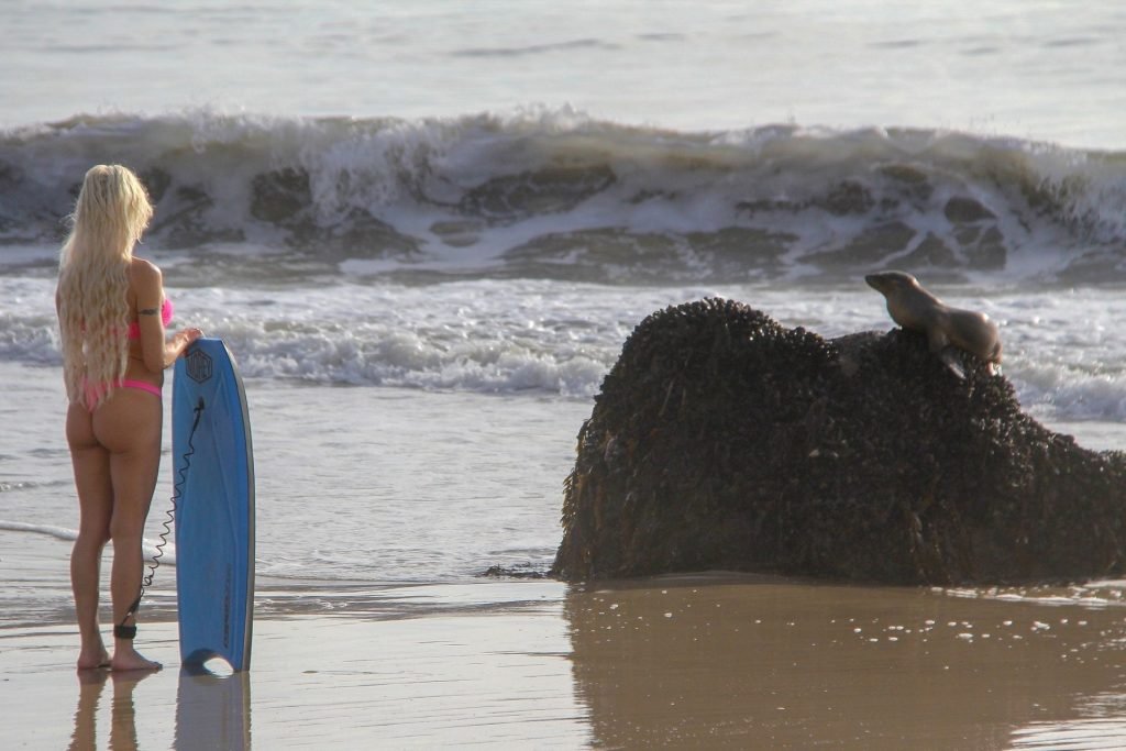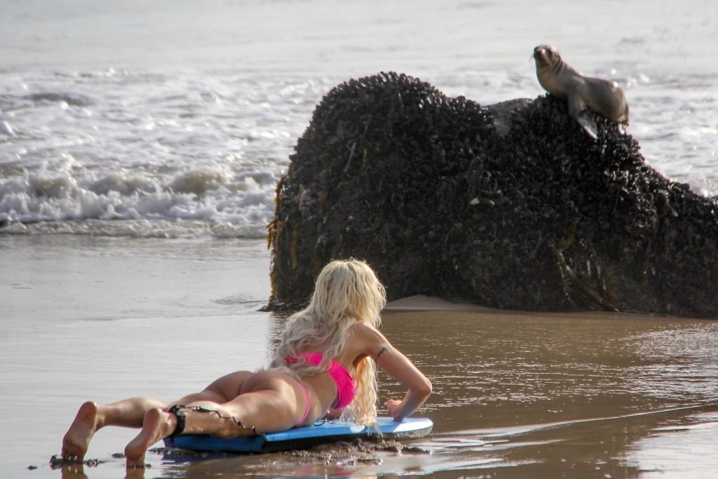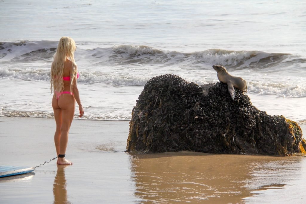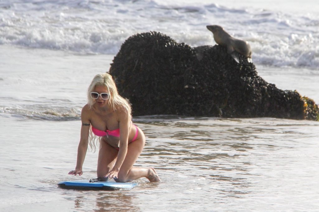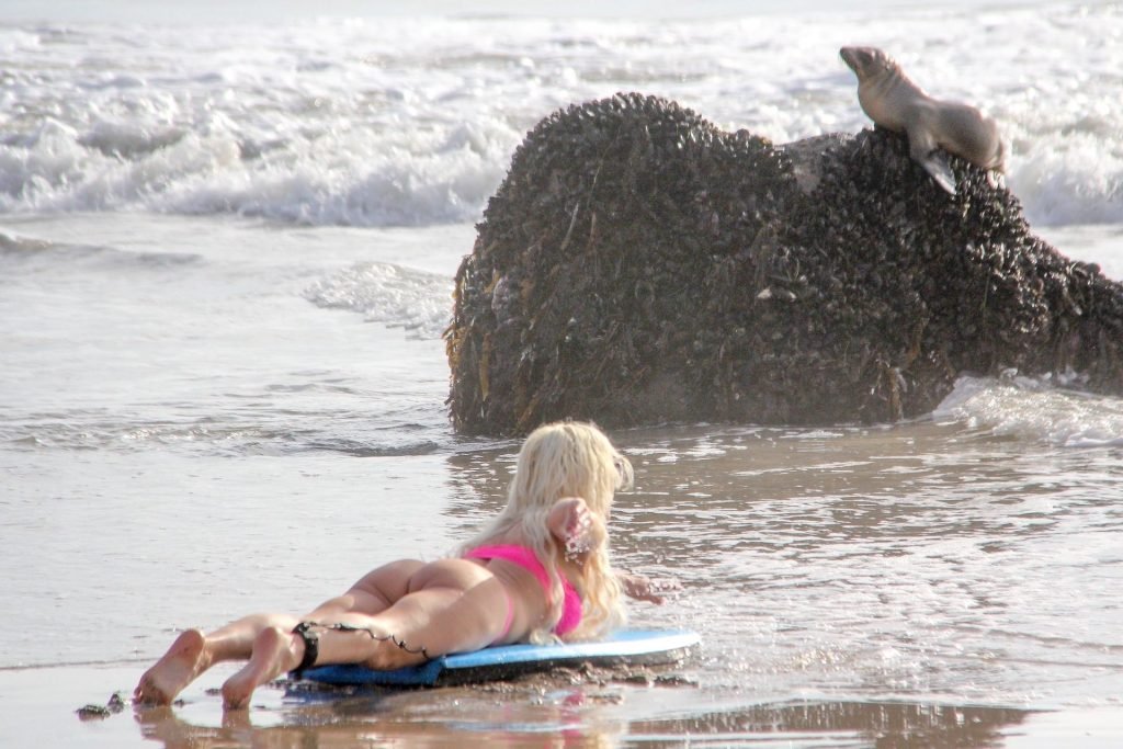 Blanca Angelique “Frenchy” Morgan fue vista en un bikini rosa en la playa de Malibu mostrando sus habilidades en bodyboard, 01/03/2019.