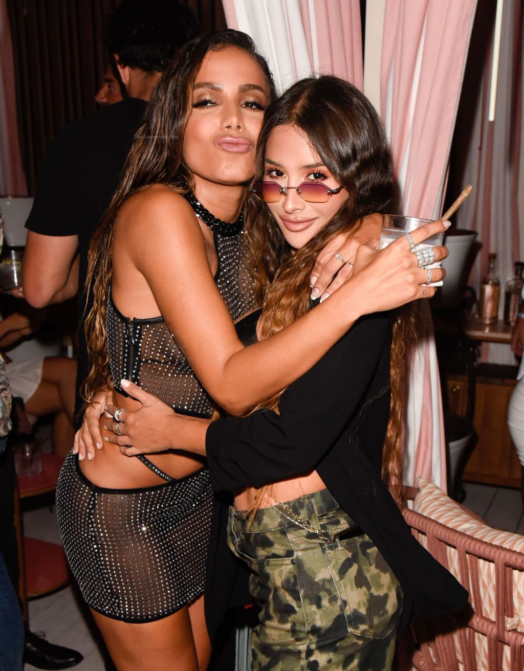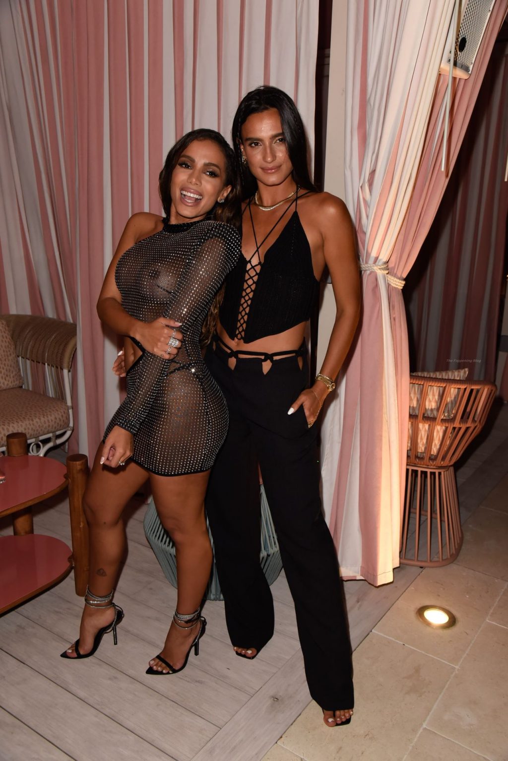 Anitta (Larissa de Macedo Machado) llega a su fiesta de lanzamiento del sencillo “Girl from Rio” en Miami Beach, 30/04/2021. La cantante muestra sus pechos desnudos y presume sus piernas delgadas mientras posa con un vestido transparente sin sostén.