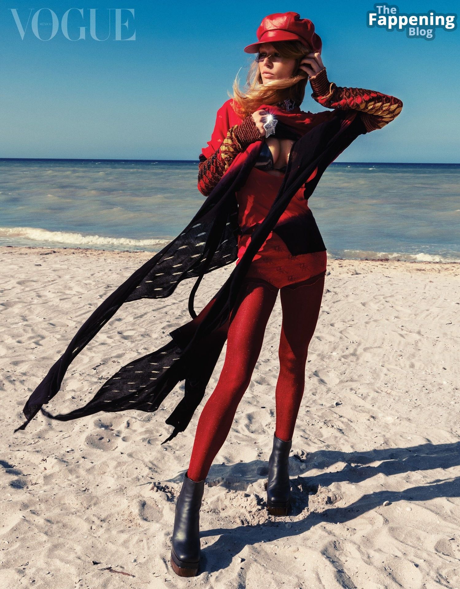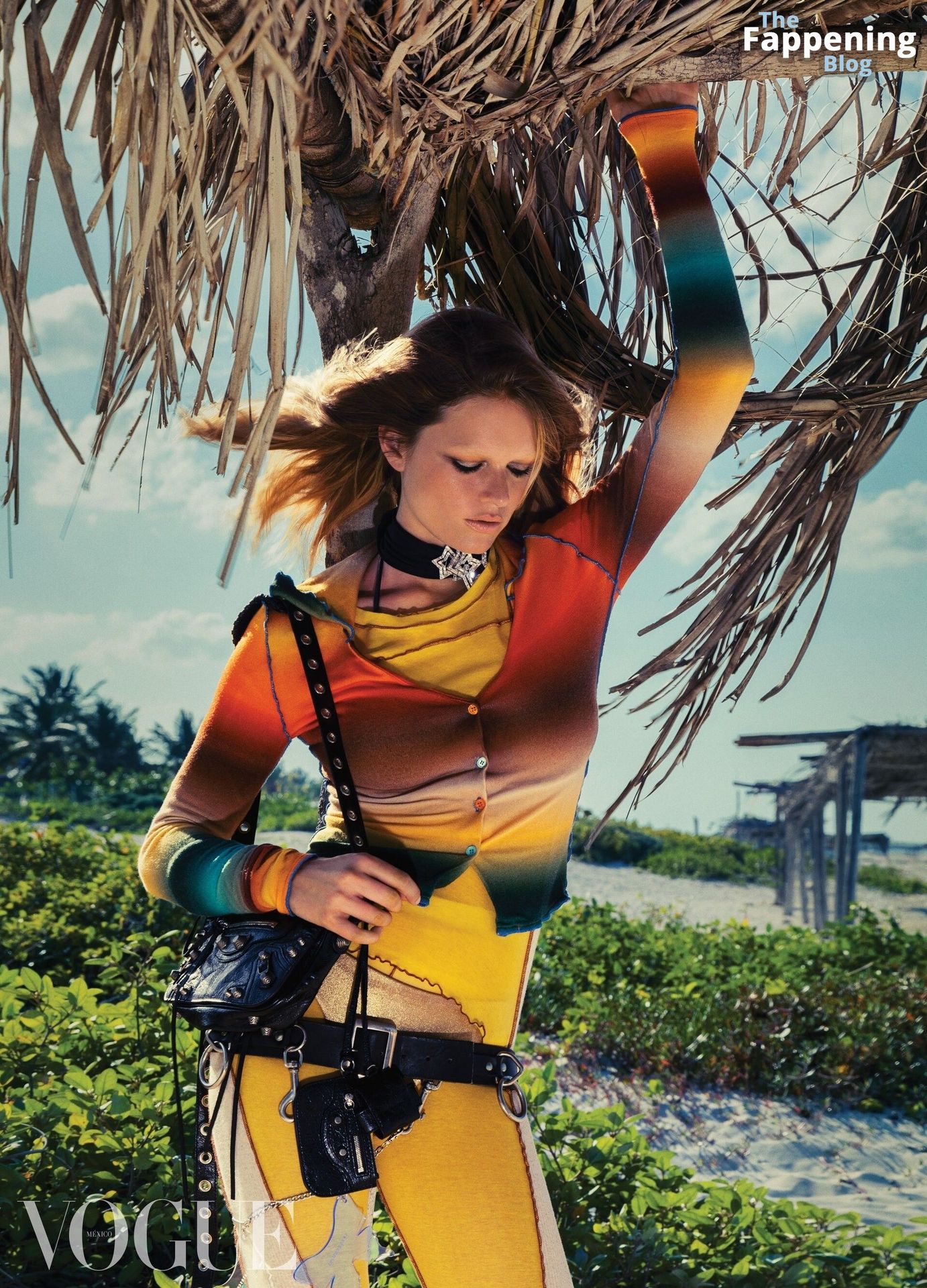 Anna Ewers está arrasando en los sets de México y Grecia. Sus cejas están perfectas, y está irradiando grandes vibras de Brigitte Bardot en su sesión para Vogue. Pero oye, fíjate en su elección de zapatos. Parece que se olvidó de llevar otros y terminó posando con el mismo par. ¡Eso explica por qué hay tantas fotos en primer plano donde su pie está recortado!