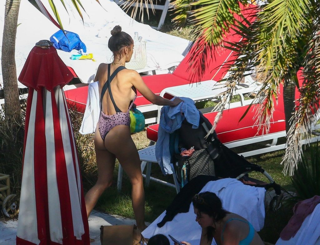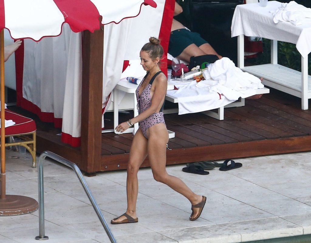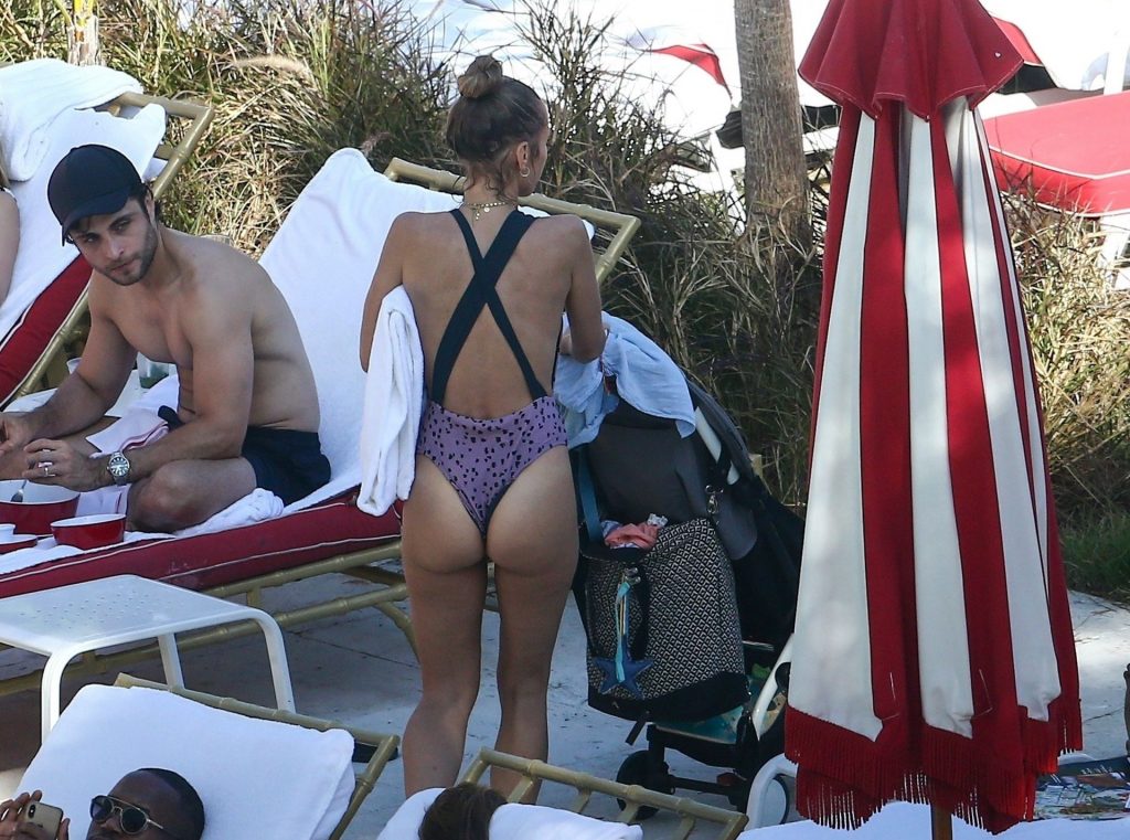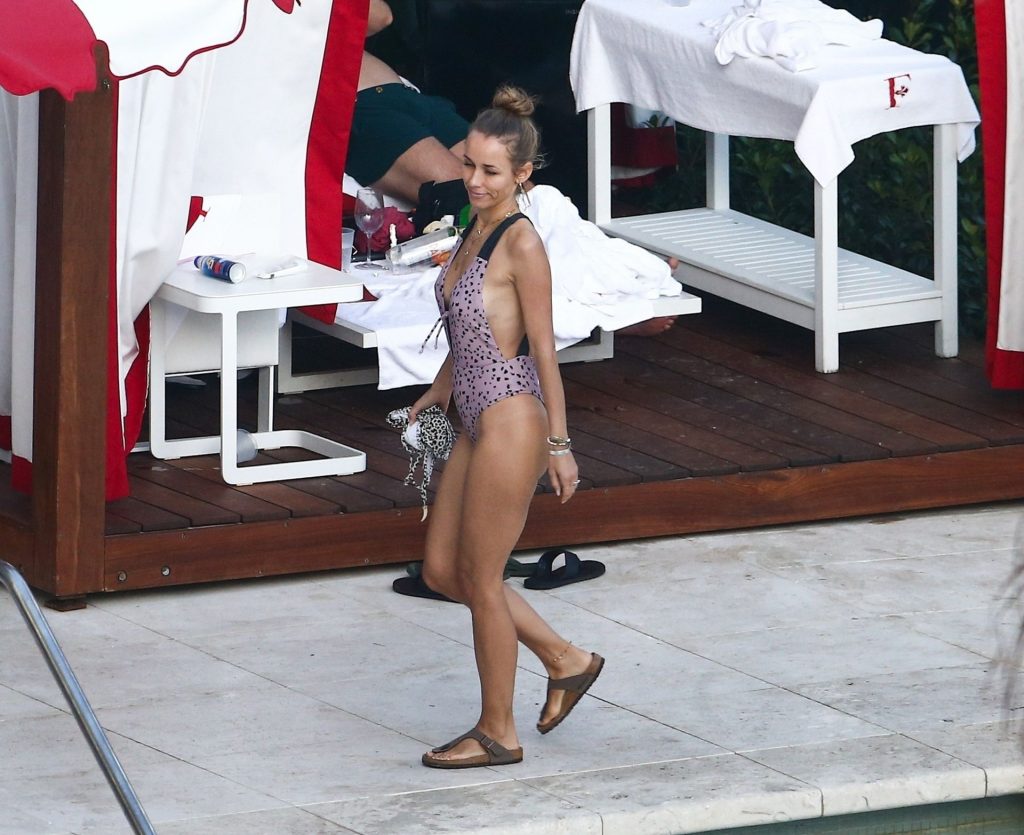 Presentadora de televisión alemana en forma Annemarie Carpendale y su esposo actor Wayne Carpendale disfrutan de sus vacaciones en la piscina del hotel en Miami Beach, 01/03/2020.