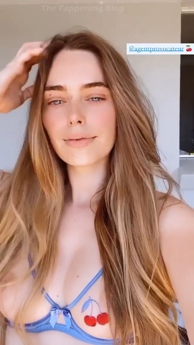 Model Anthea Page muestra sus tetas desnudas mientras posa con un sujetador transparente de una nueva colección de Agent Provocateur – Instagram, 20/11/2020.