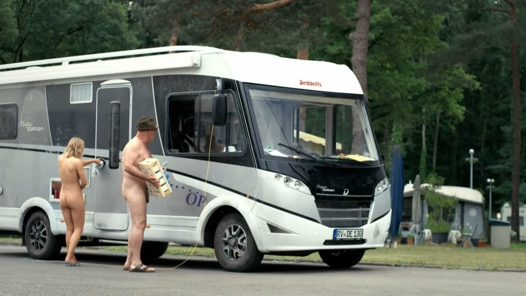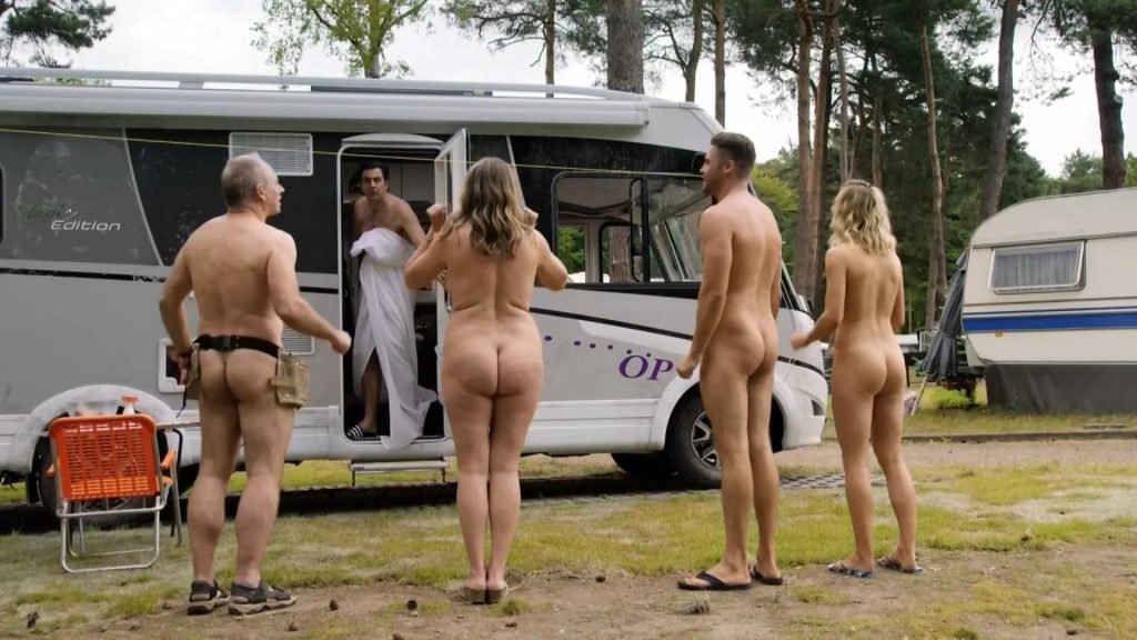 Es una comedia de situación común (no muy buena) que se transmite en la televisión normal en las horas de la tarde no muy temprano y en este episodio el protagonista es echado por su esposa, se va en su casa rodante y accidentalmente termina en un camping nudista... jaja... muy gracioso... jajaja...