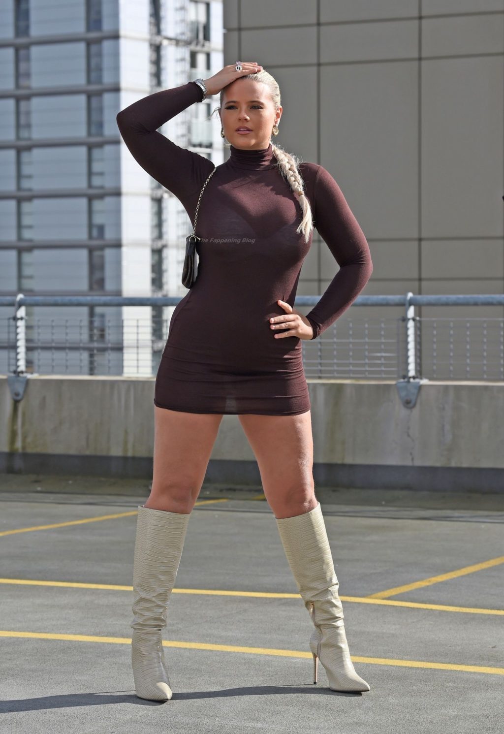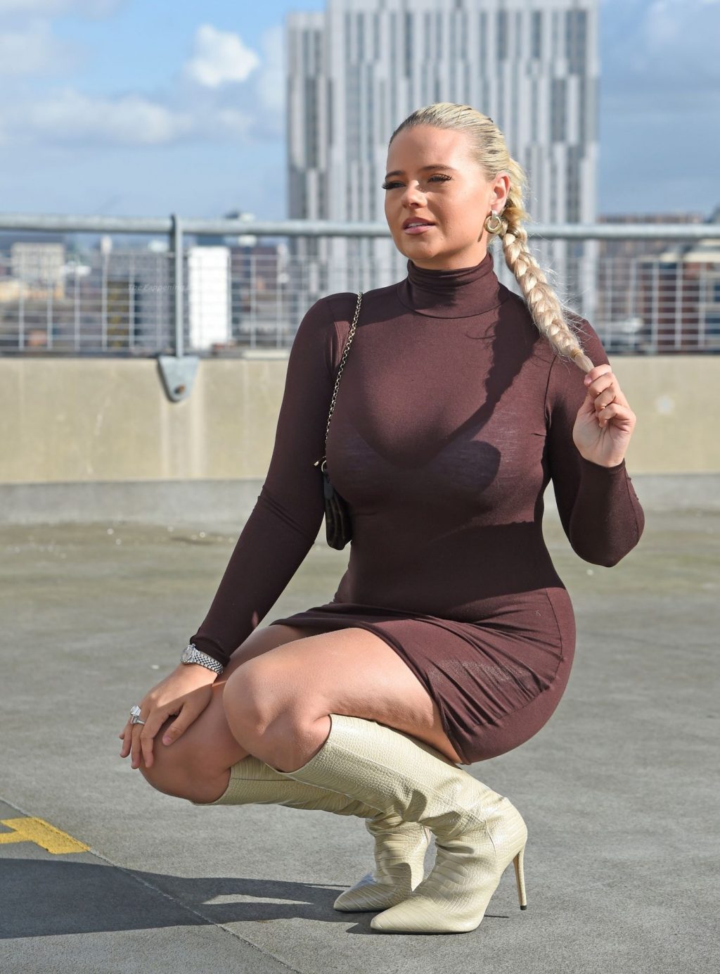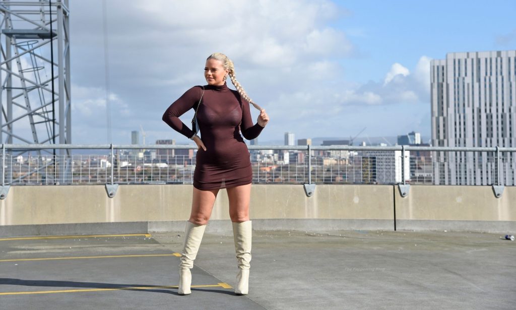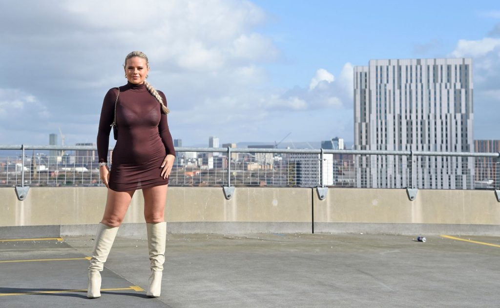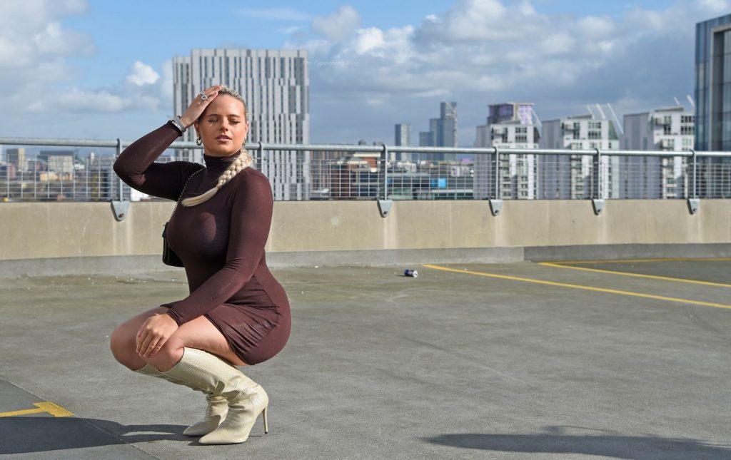 Modelo, influencer y estrella diaria de la página 3, Apollonia Llewellyn, es vista tomando fotos para una marca de moda en Manchester, 03/04/2021.