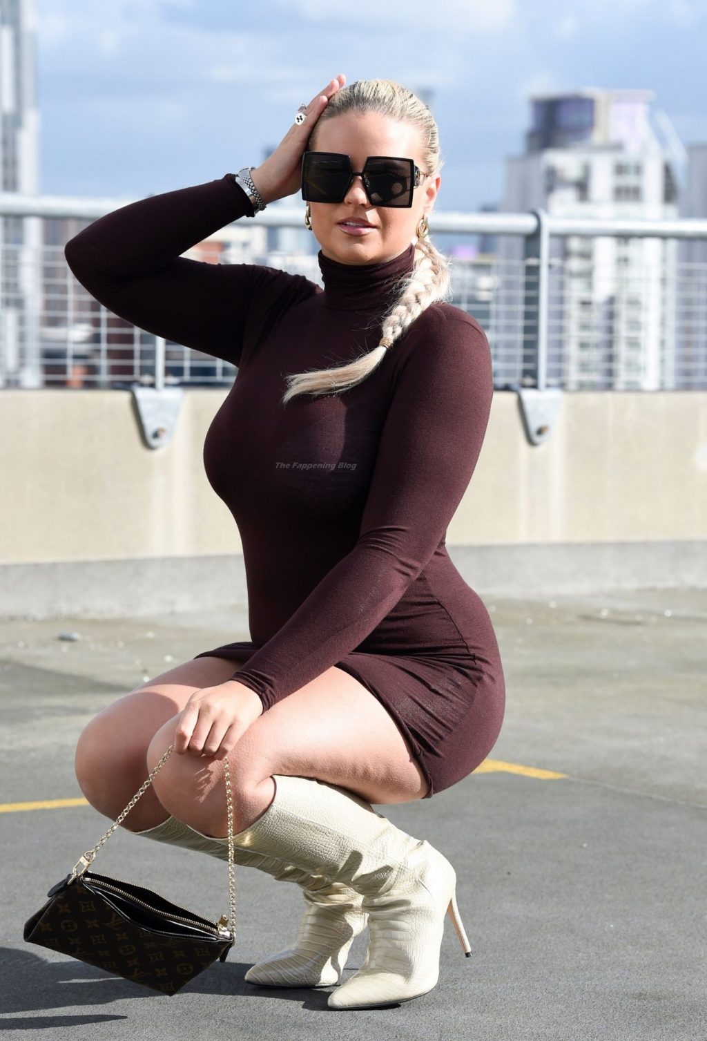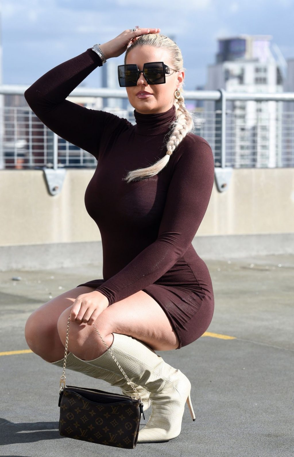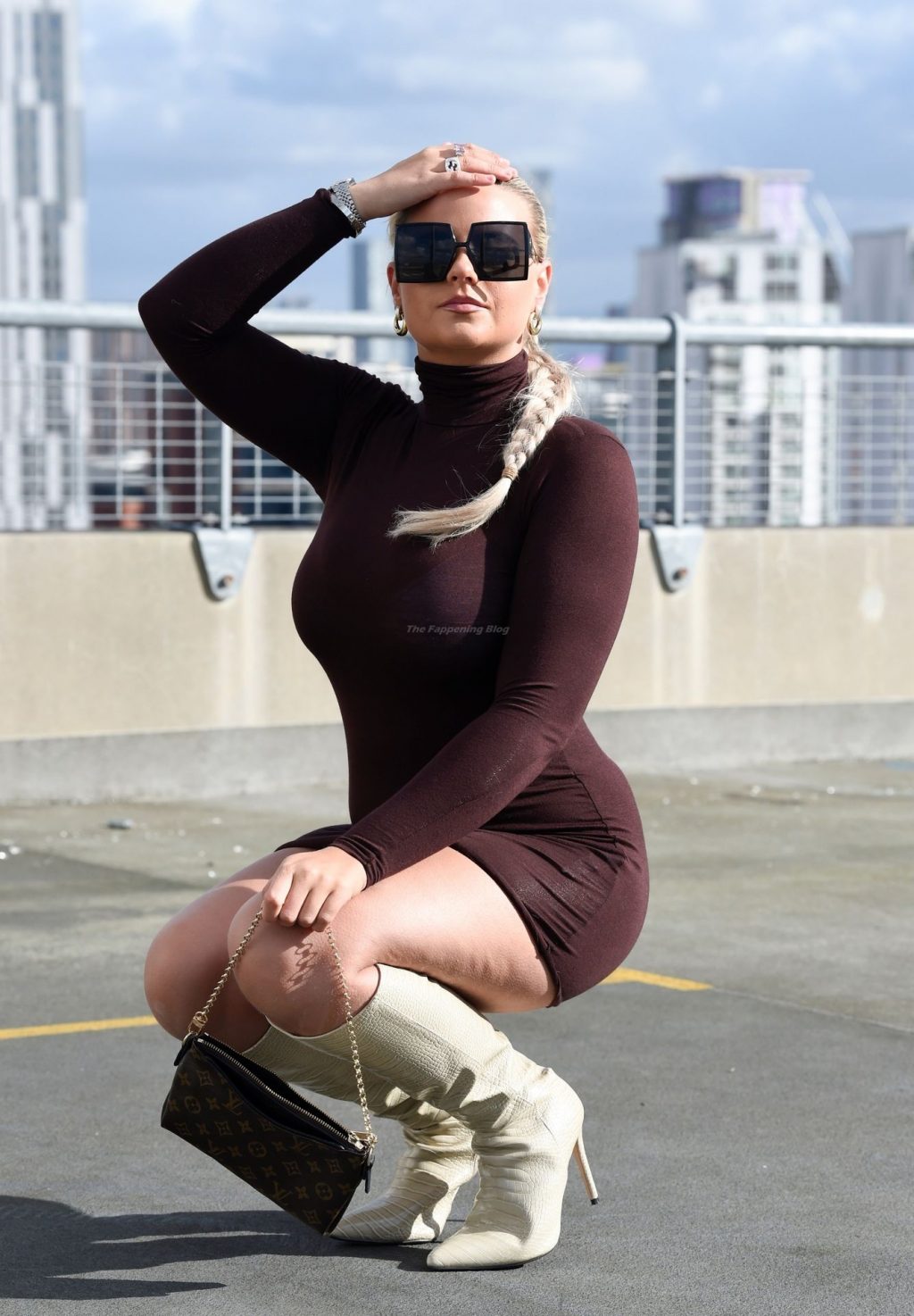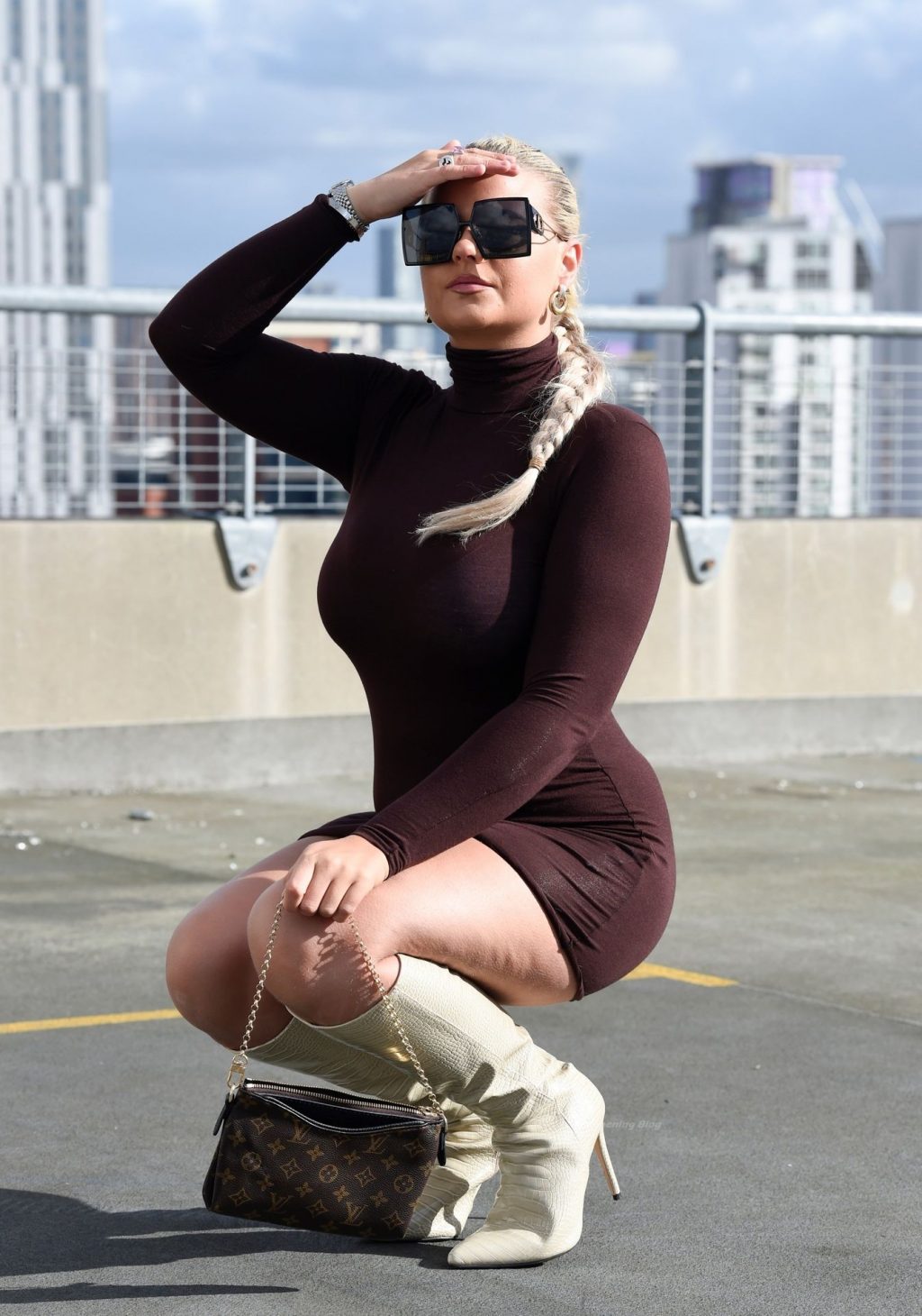 Modelo, influencer y estrella diaria de la página 3, Apollonia Llewellyn, es vista tomando fotos para una marca de moda en Manchester, 03/04/2021.