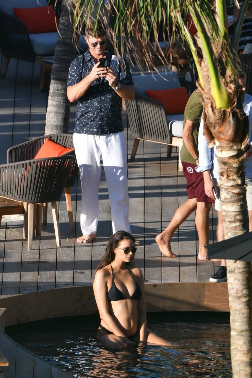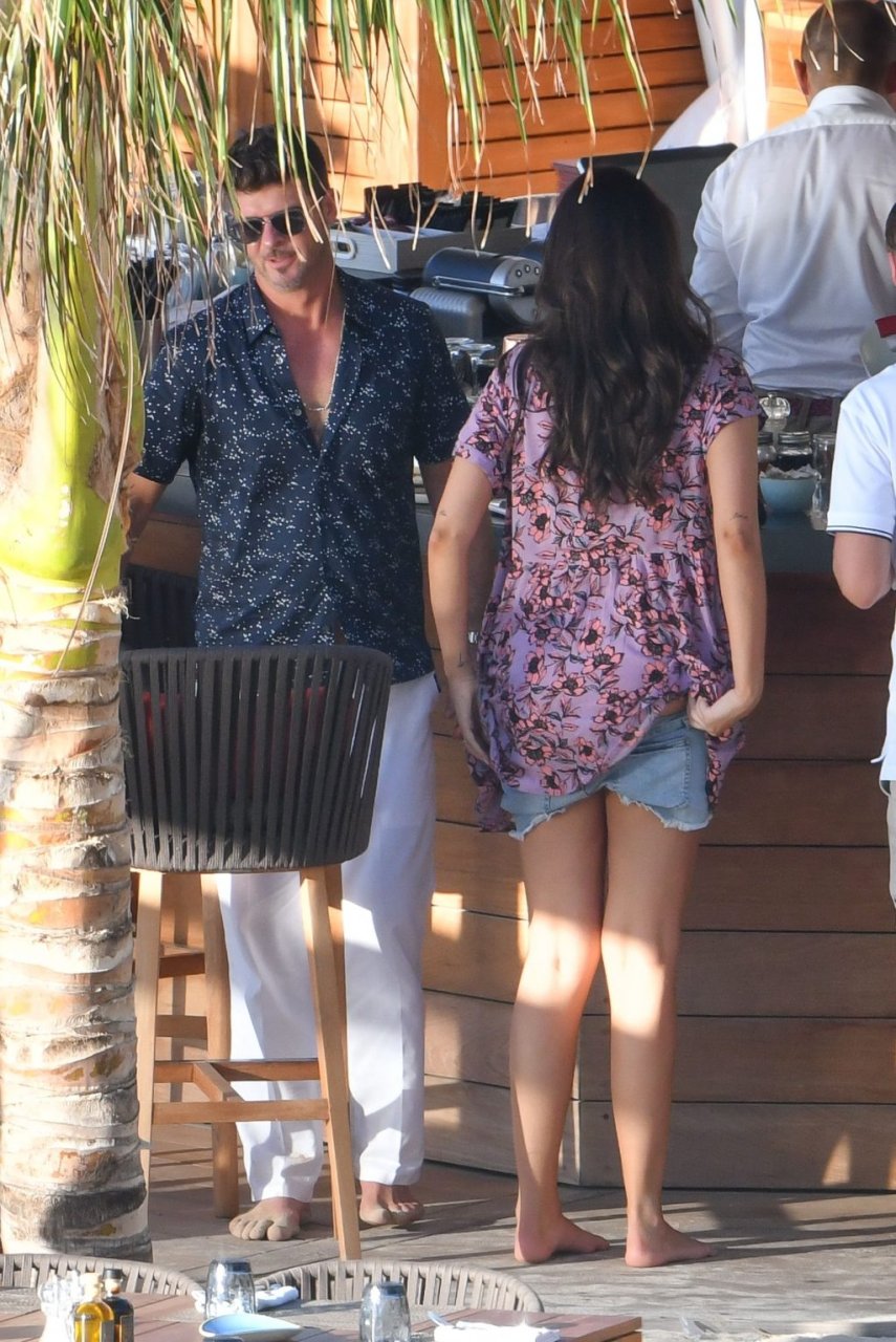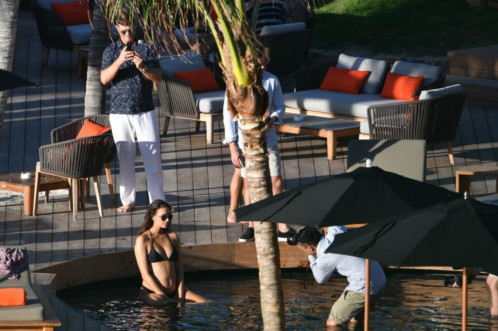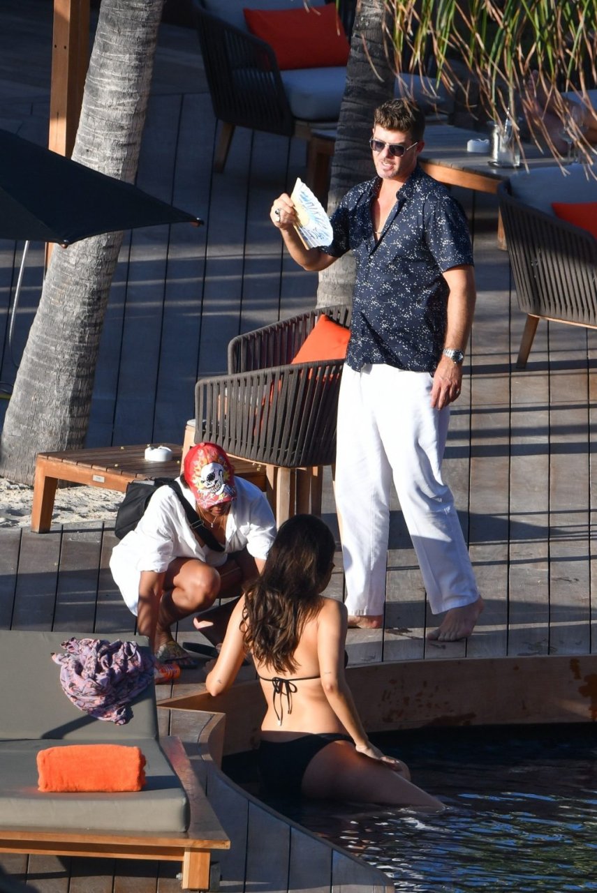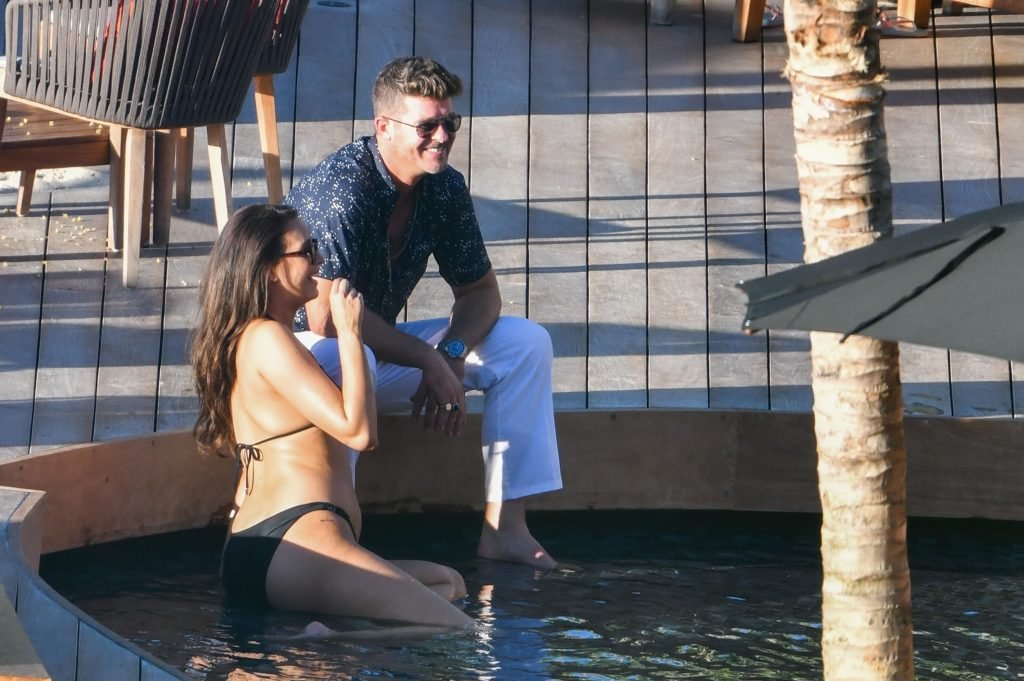 Robin Thicke posa con su pareja embarazada April Love Geary (23) para una sesión de fotos tropical en St. Barts, 26/10/2018. Se pudo ver a Thicke acurrucándose con April en una piscina inflable.