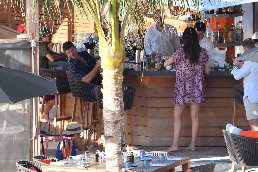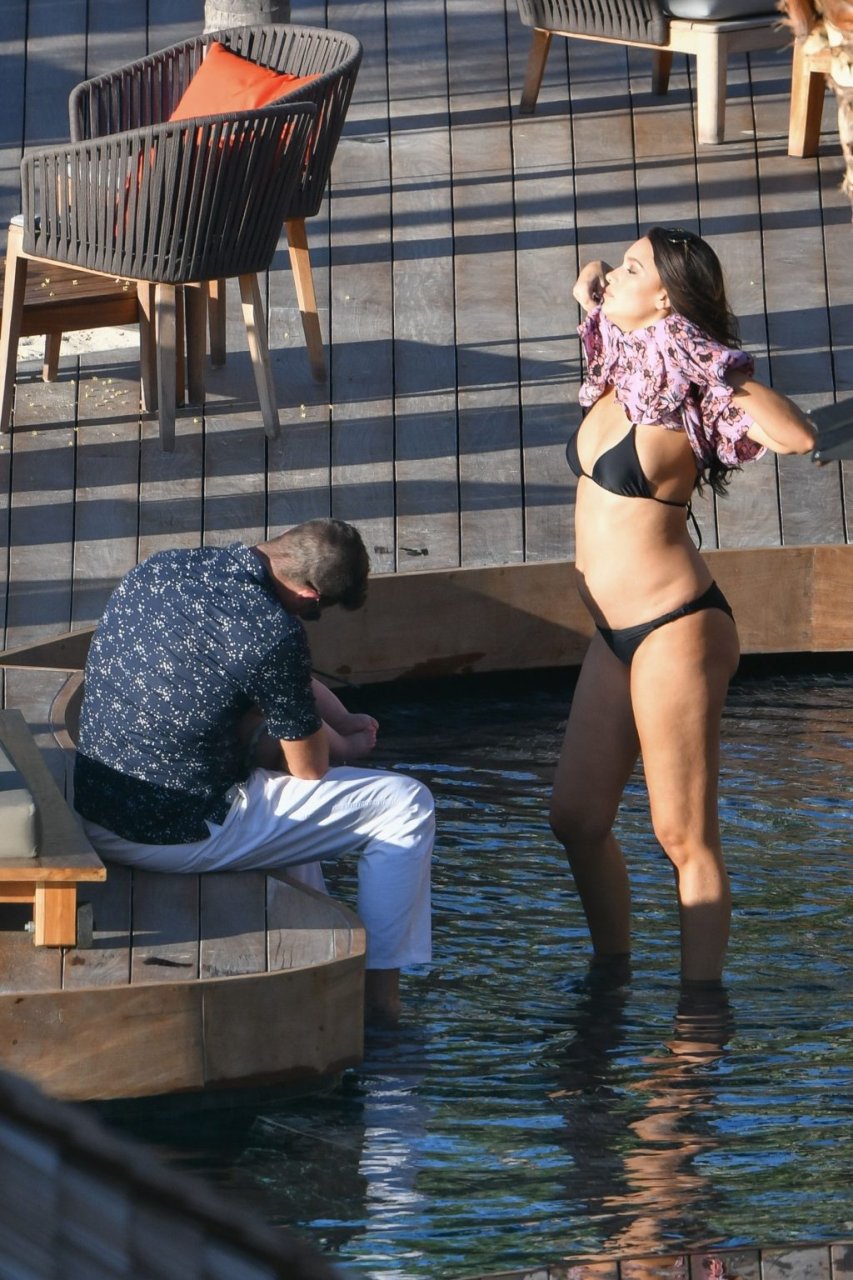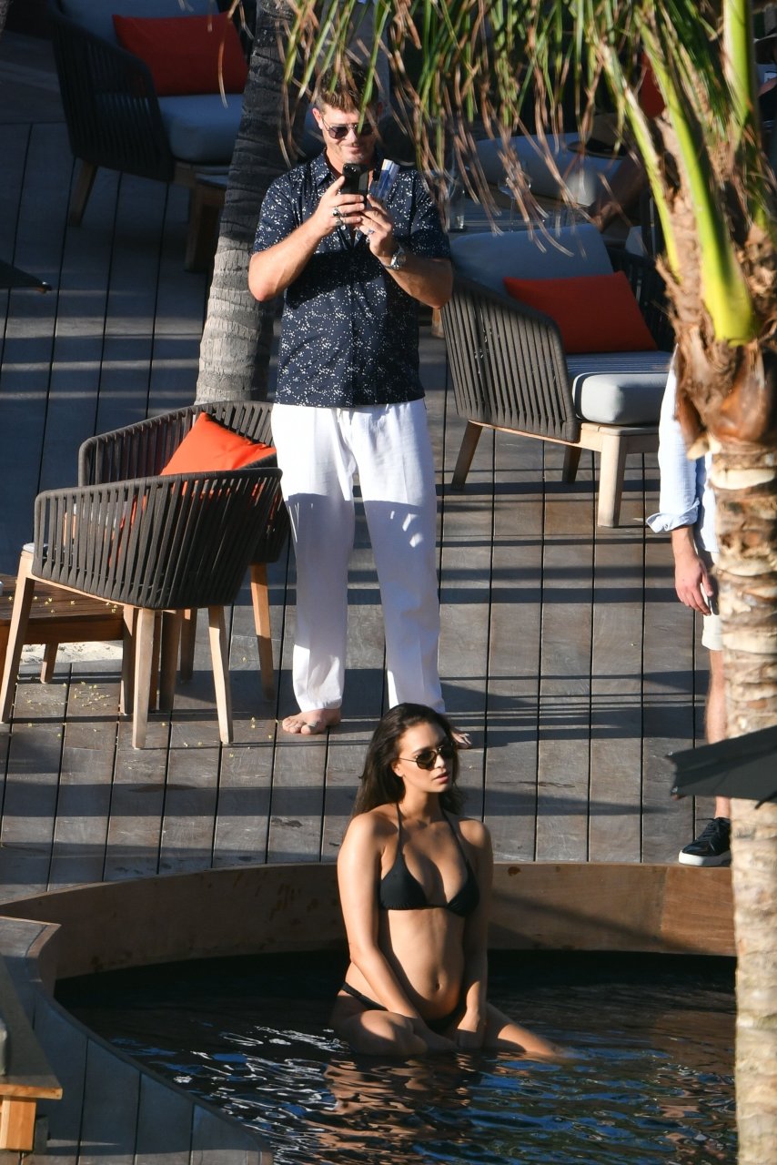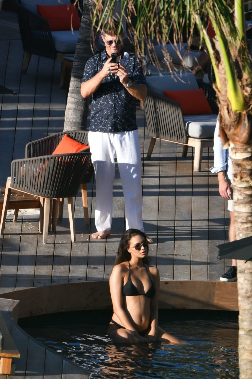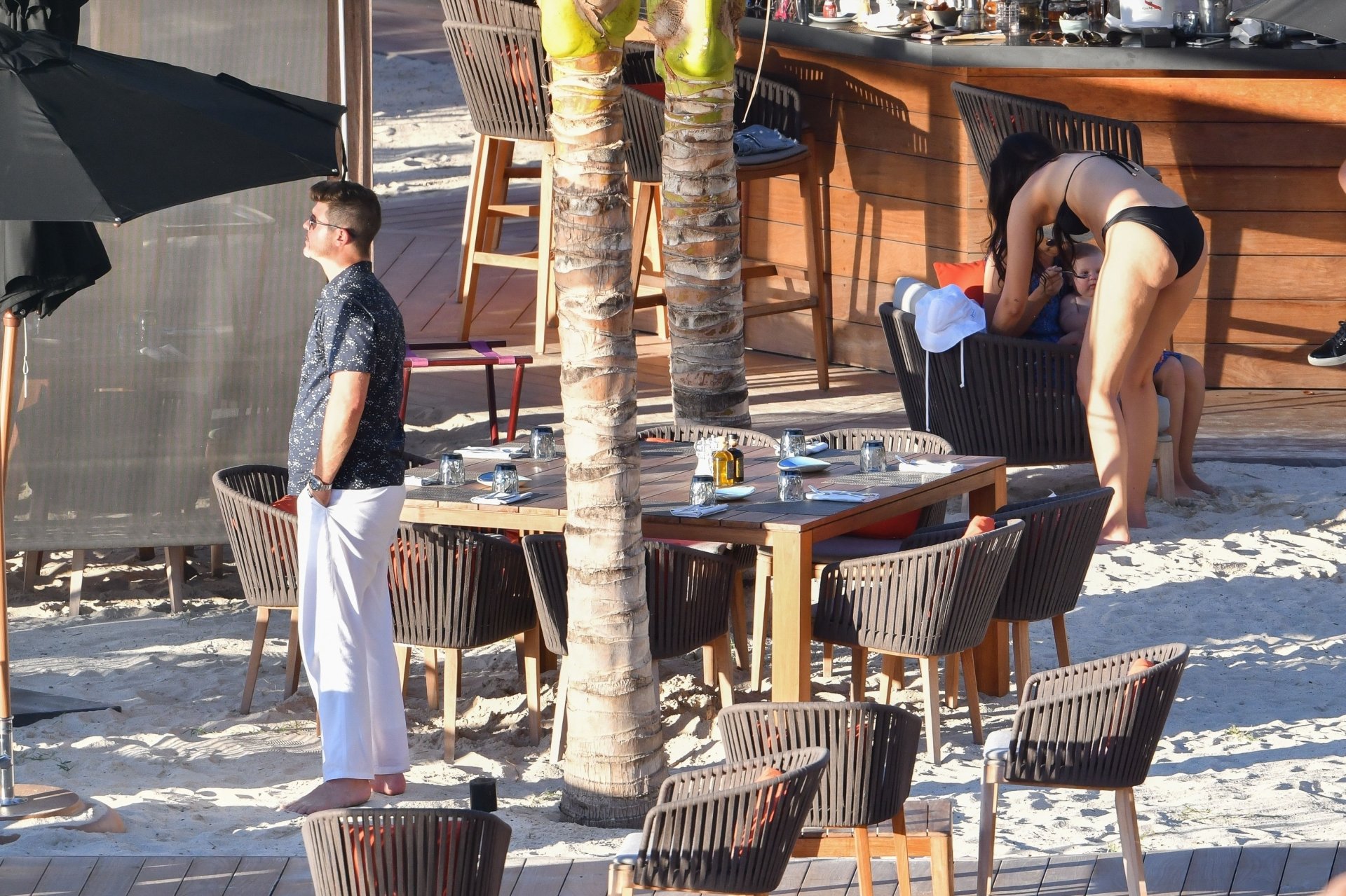 Robin Thicke posa con su pareja embarazada April Love Geary (23) para una sesión de fotos tropical en St. Barts, 26/10/2018. Se pudo ver a Thicke acurrucándose con April en una piscina inflable.