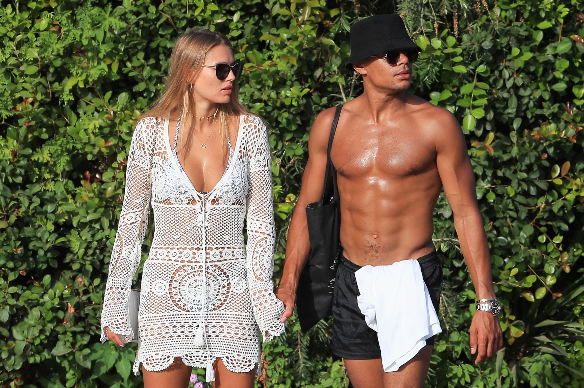 Love Island’s Arabella Chi y Wes Nelson fueron vistos tomados de la mano mientras disfrutaban de un día juntos en la playa de Ibiza, 11/08/2019.