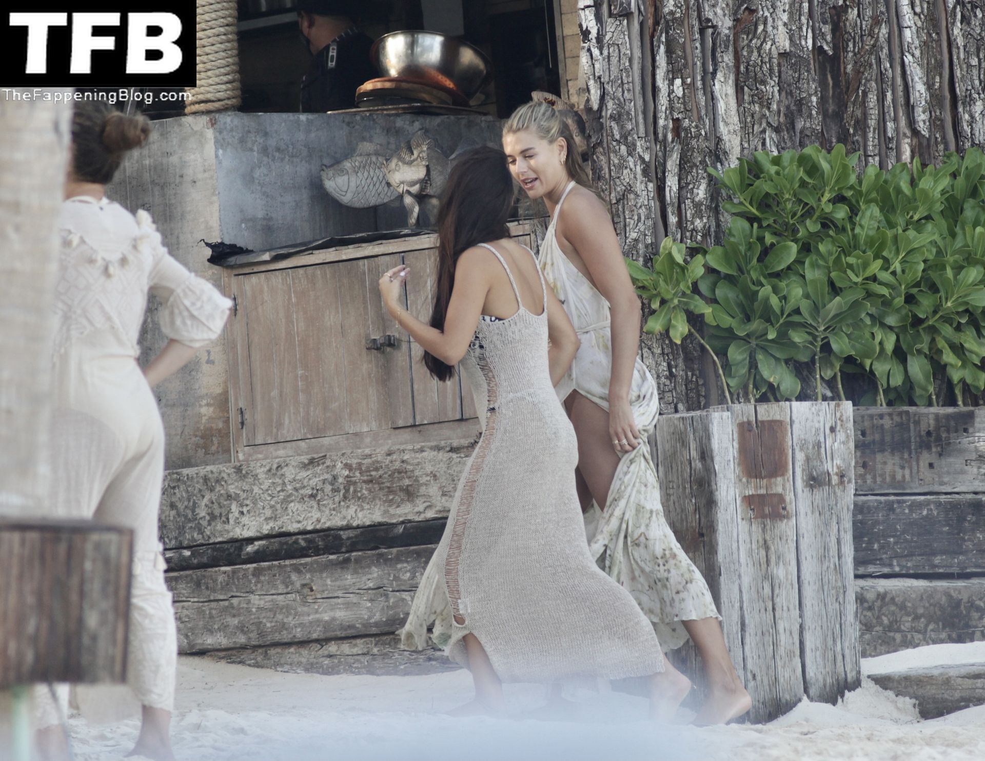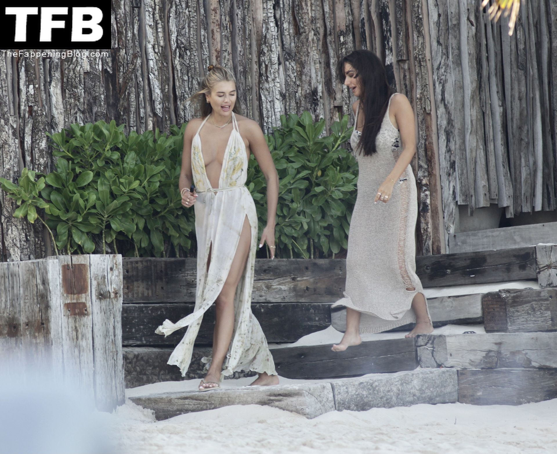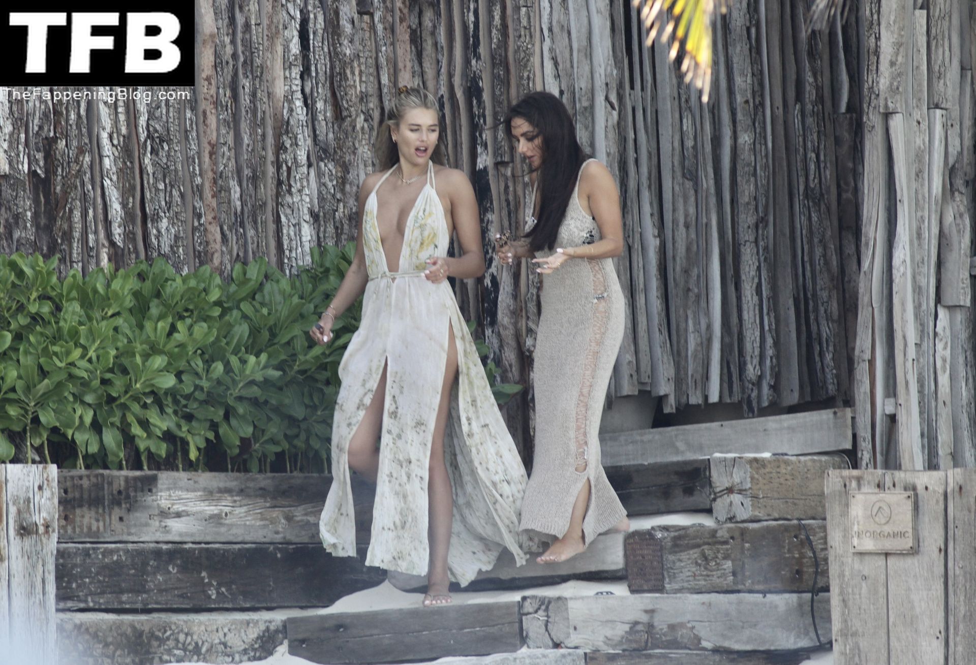 La estrella de la televisión de realidad Arabella Chi es vista con su amiga en la playa de Tulum, México, 17/02/2022.