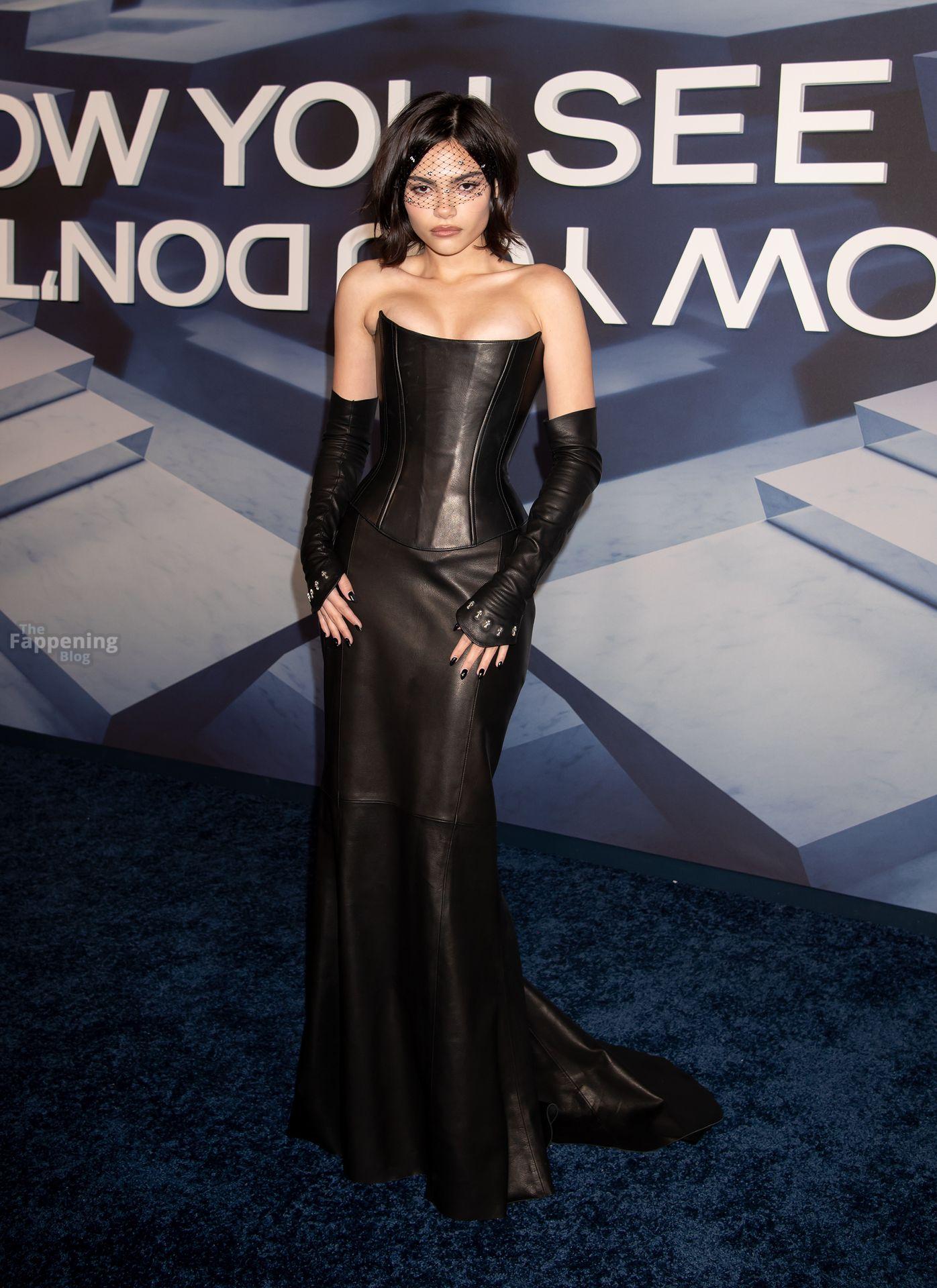 La actriz estadounidense con busto Ariana Greenblatt deslumbra con un vestido corsé de cuero en el estreno de Now You See Me Now You Don’t en The Lighthouse at Chelsea Piers en Manhattan, NYC.