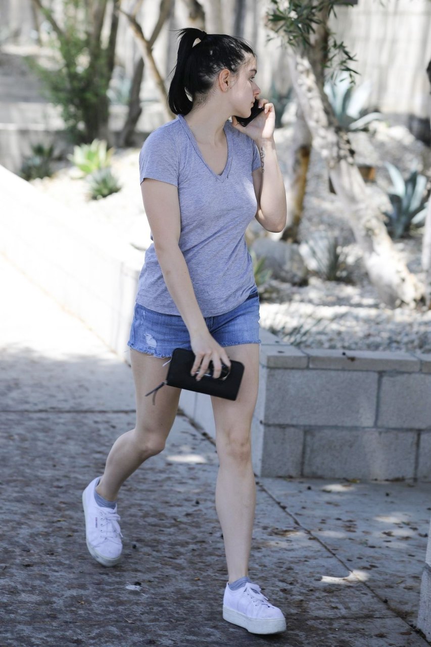 Ariel Winter va sin sostén y luce shorts cortos, en una salida en solitario en Los Ángeles, 23/04/2019. La actriz de 21 años atiende una llamada telefónica mientras pasea por las calles.