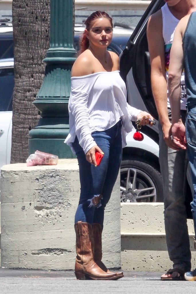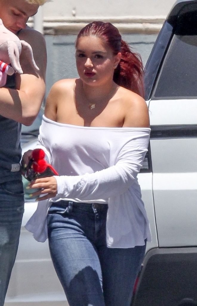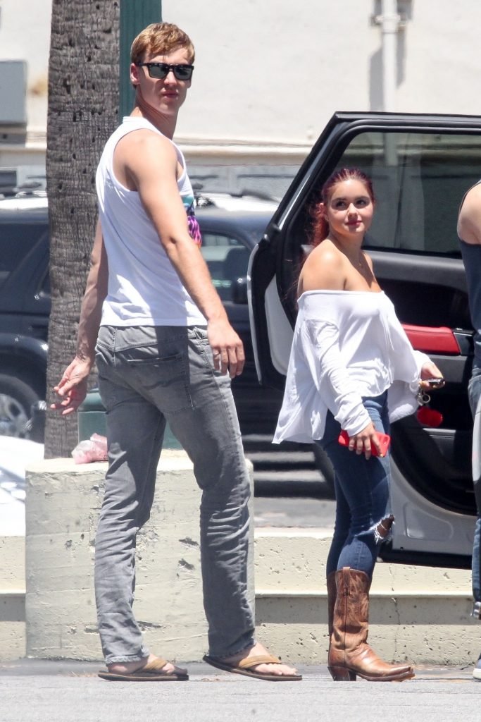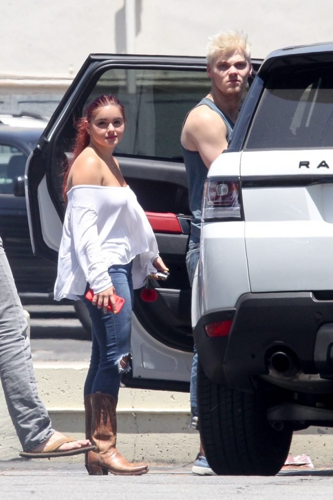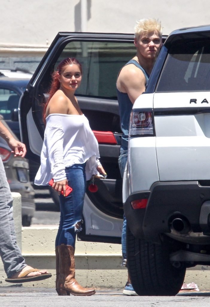 La voluptuosa actriz estadounidense Ariel Winter compra comestibles con su novio Levi Meaden y su familia en Los Ángeles, 21/07/2017.