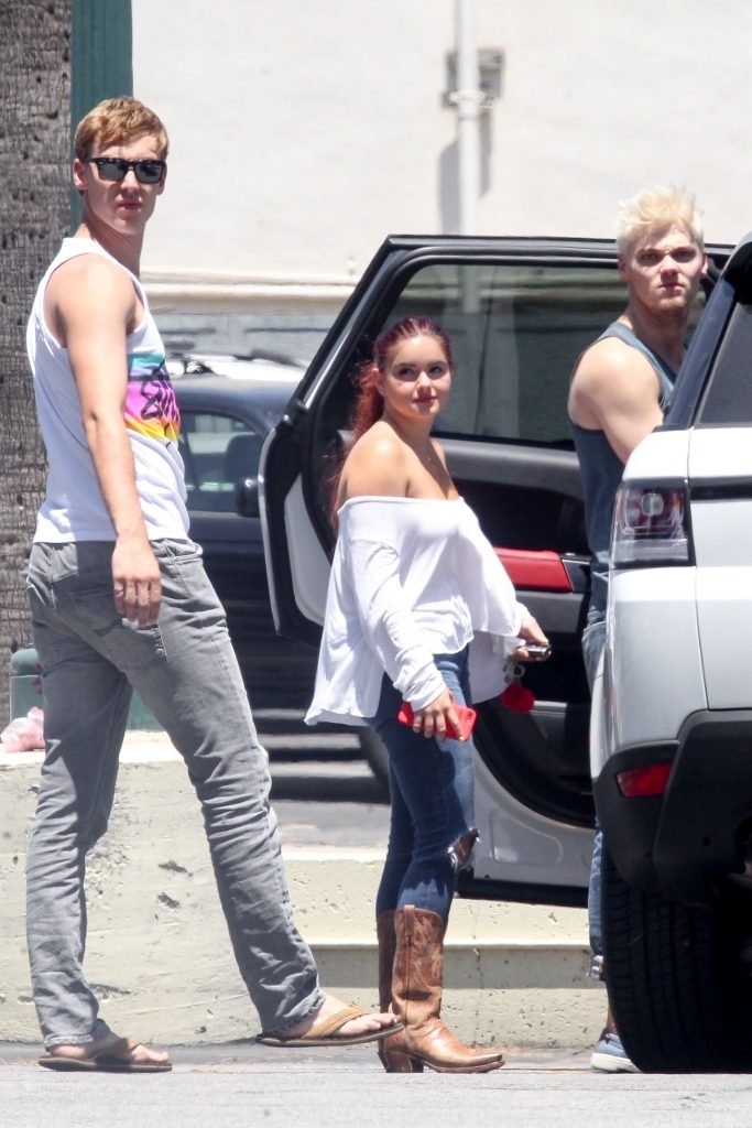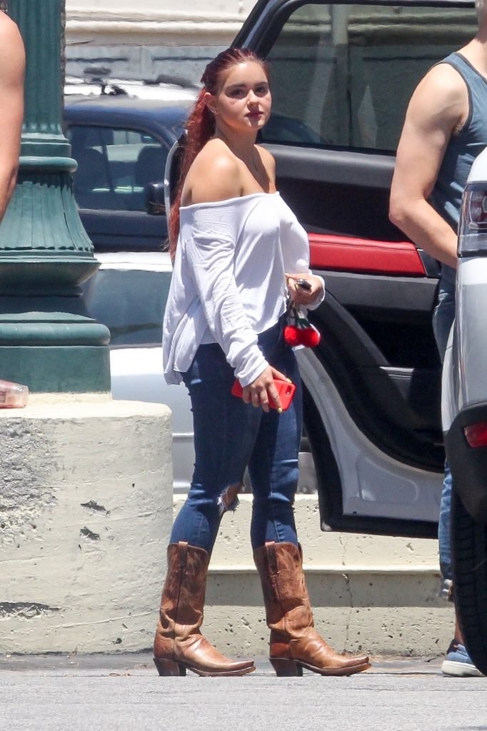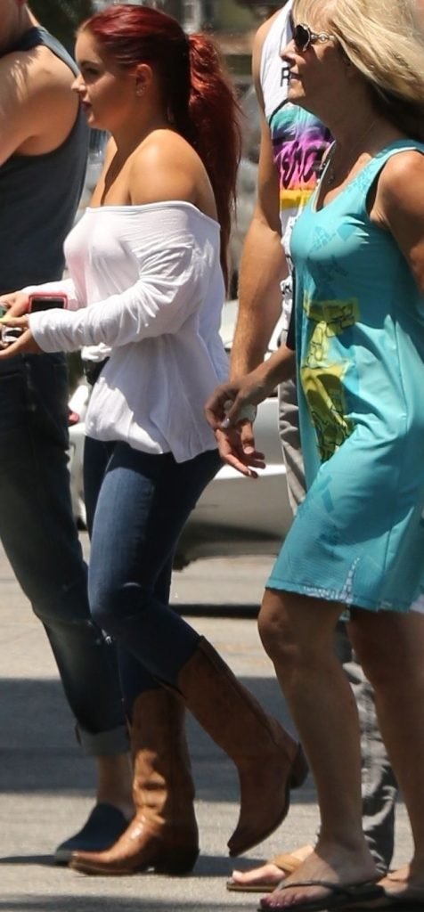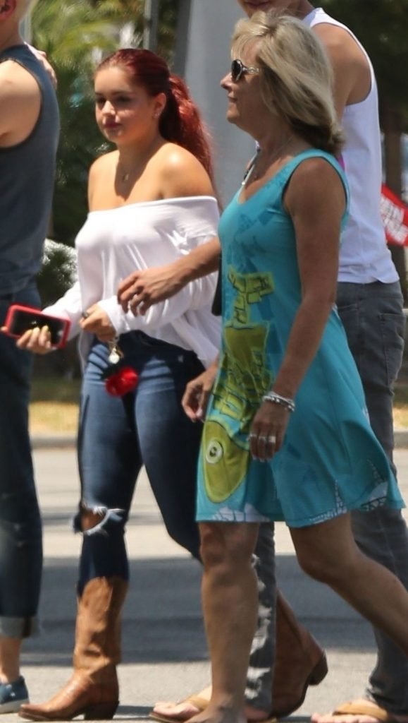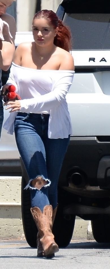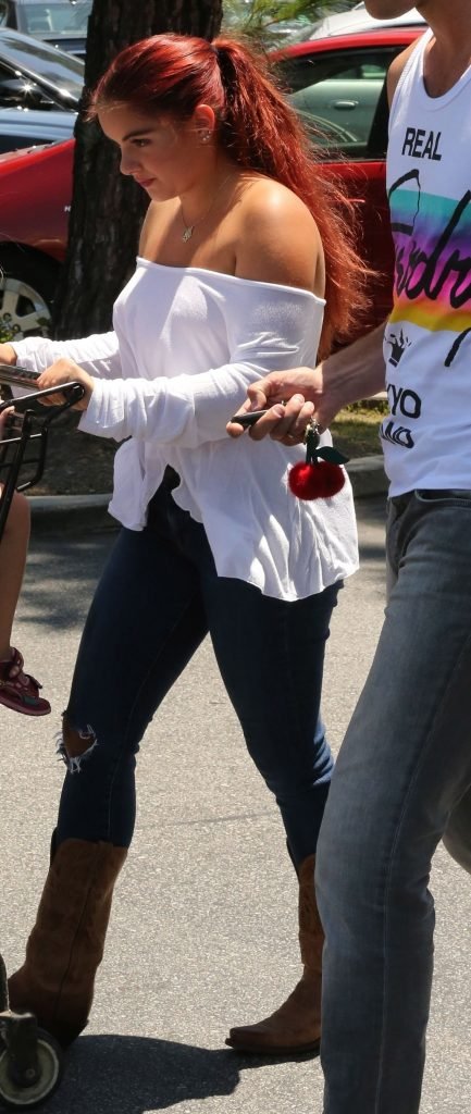 La voluptuosa actriz estadounidense Ariel Winter compra comestibles con su novio Levi Meaden y su familia en Los Ángeles, 21/07/2017.