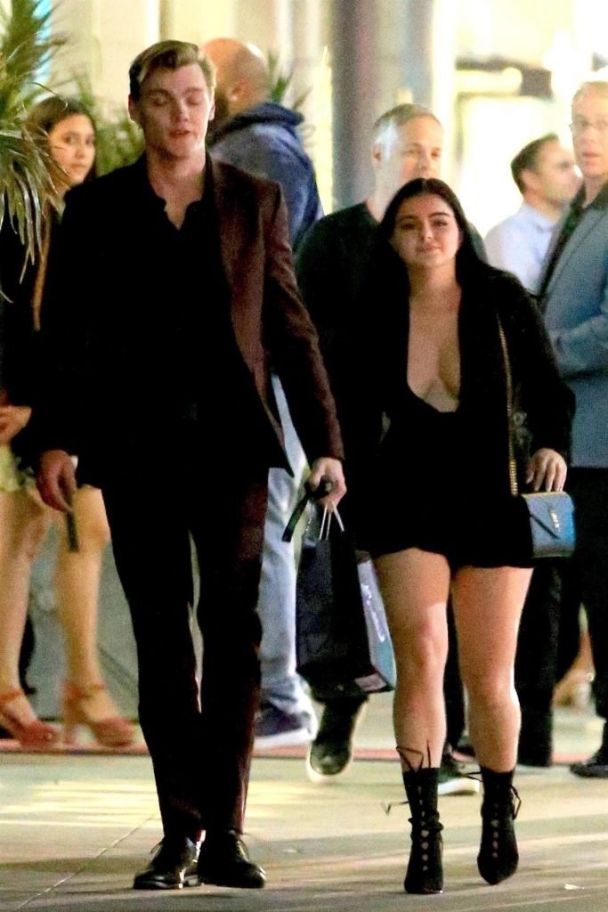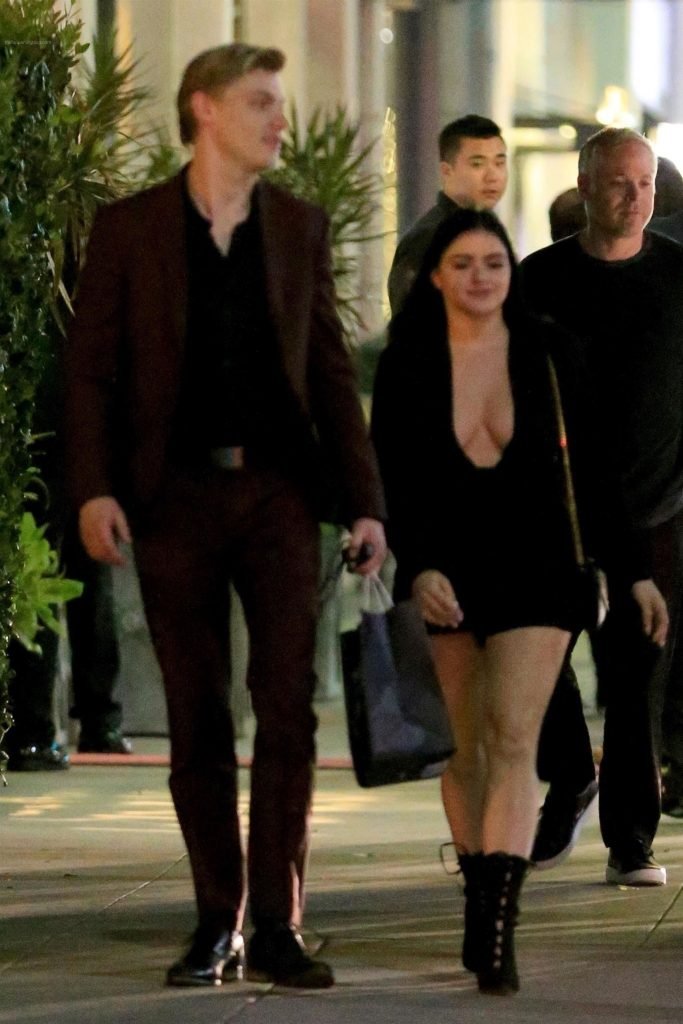 La actriz Ariel Winter y su novio Levi Meaden fueron vistos juntos saliendo del restaurante Mastro’s después de una cita romántica para cenar en Beverly Hills, 17/04/2018. La busty Ariel de 20 años no tuvo vergüenza de mostrar su figura curvilínea con un mono negro con un escote muy profundo sin sujetador.
