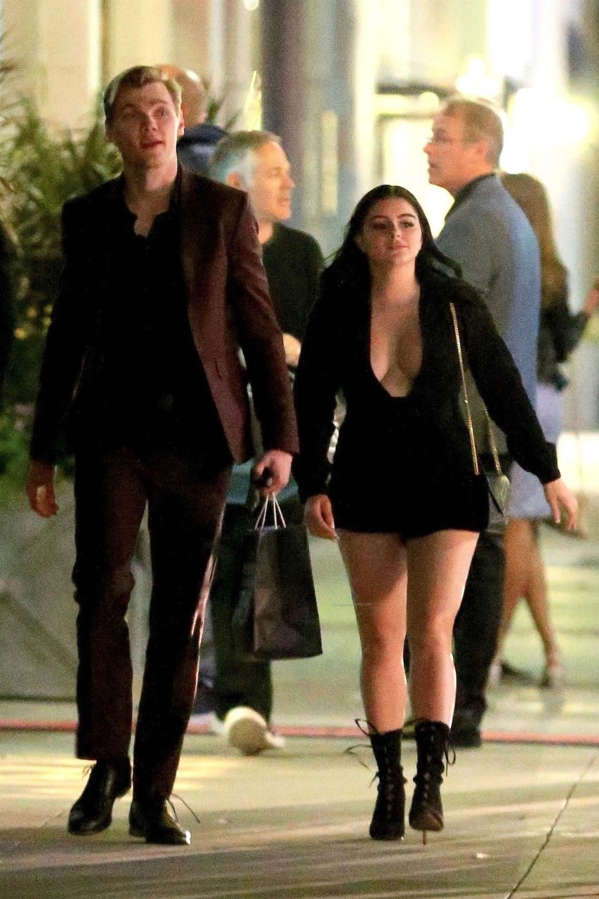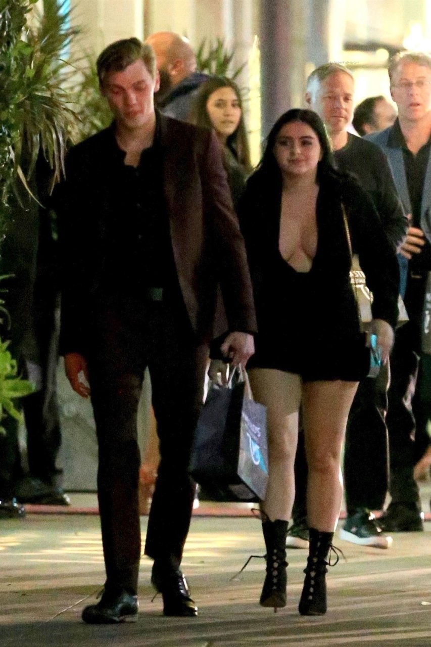 La actriz Ariel Winter y su novio Levi Meaden fueron vistos juntos saliendo del restaurante Mastro’s después de una cita romántica para cenar en Beverly Hills, 17/04/2018. La busty Ariel de 20 años no tuvo vergüenza de mostrar su figura curvilínea con un mono negro con un escote muy profundo sin sujetador.