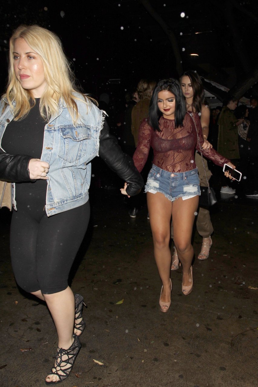 Ariel Winter luce una blusa roja transparente y unos shorts de mezclilla súper sexys fuera del club Peppermint en West Hollywood, 01/10/2017. Ariel Winter es una actriz estadounidense (Sofia the First (2016-2017 (voz)), modelo y cantante. Edad: 18 (nacida el 28 de enero de 1998).