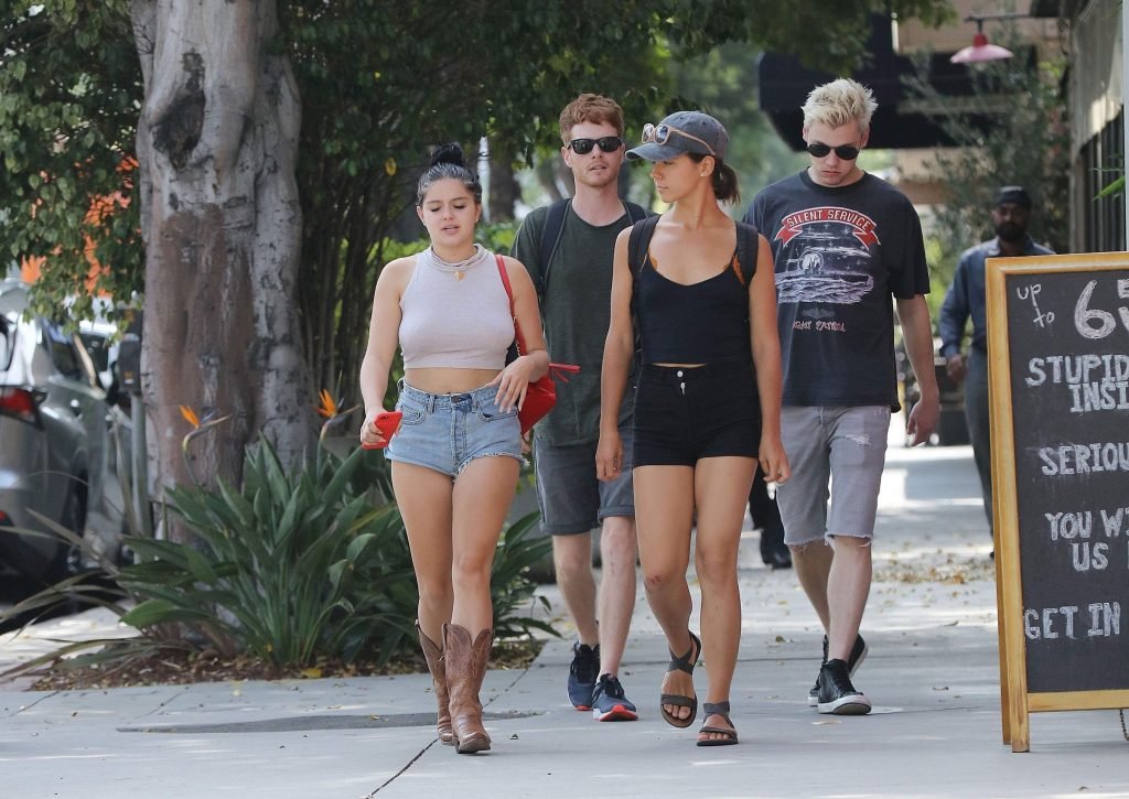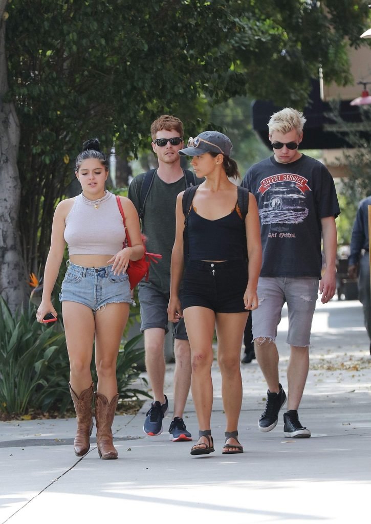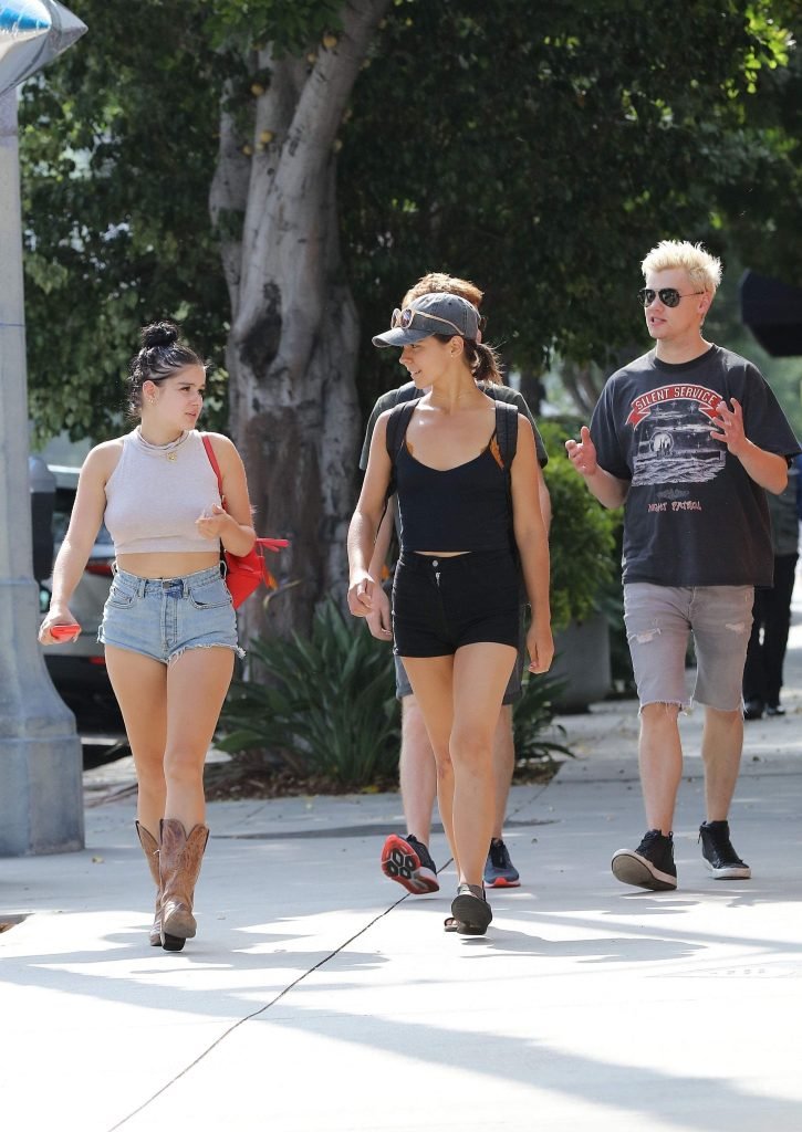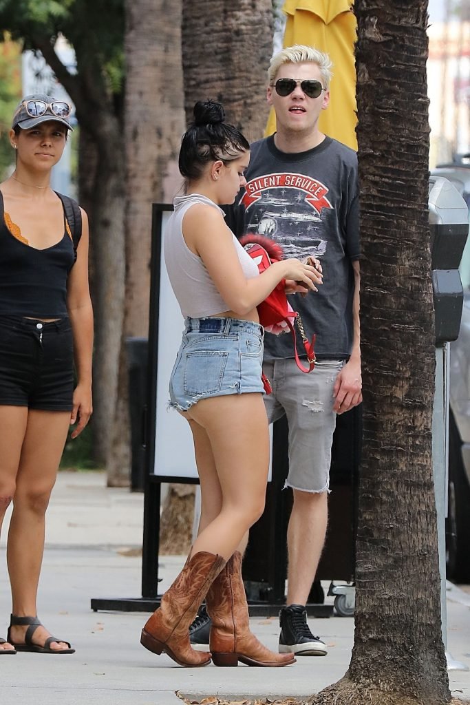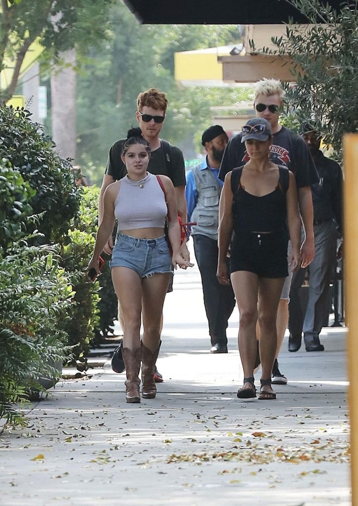 Ariel Winter (19) fue vista comprando en un supermercado en Los Ángeles con shorts de mezclilla cortados, top corto beige y botas vaqueras, 09/04/2017. Ariel Winter es una actriz (Sofia the First, TV), cantante y modelo de Los Ángeles.
