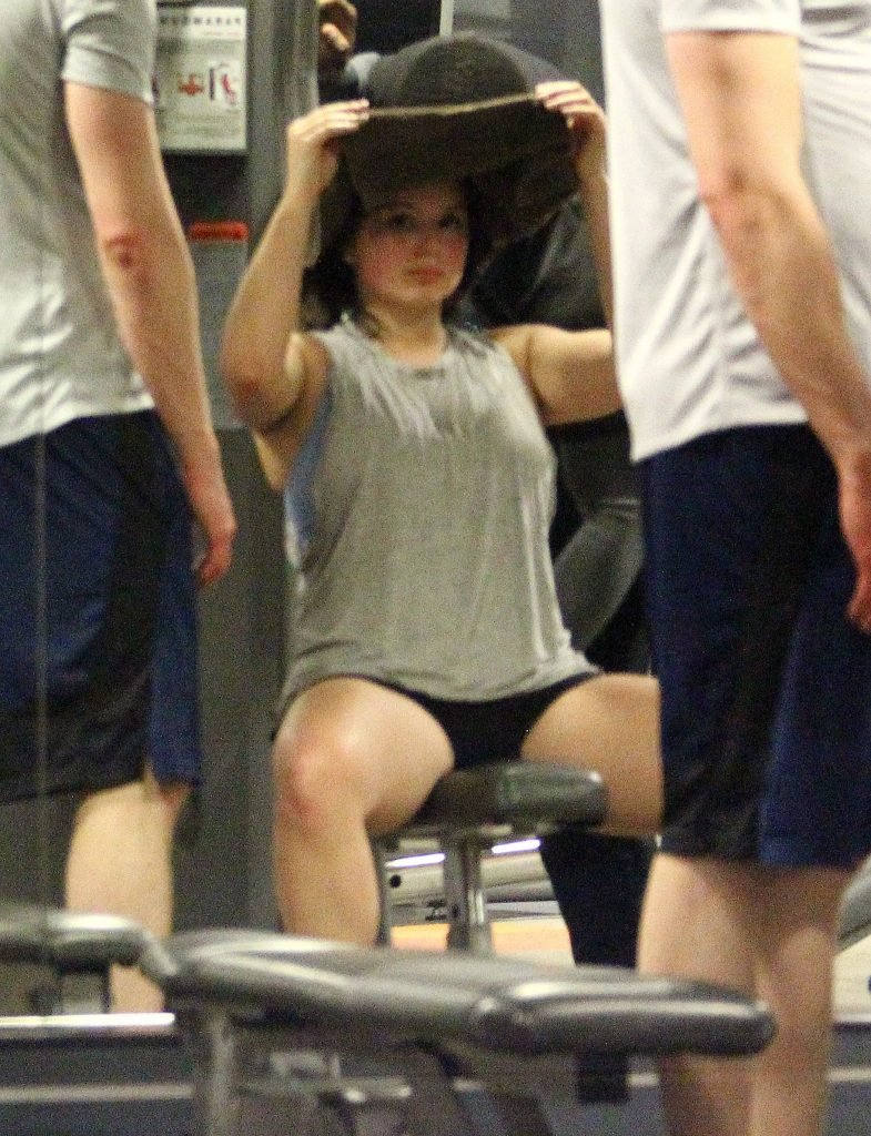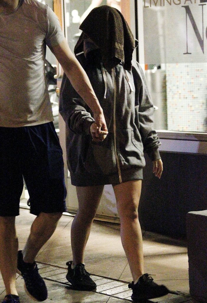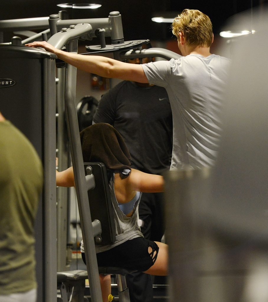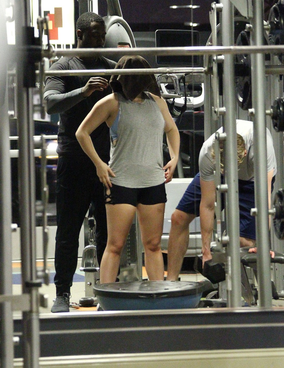 Actriz y modelo Ariel Winter, 20, se cubre la cara durante todo su entrenamiento con su novio Levi Meaden en el gimnasio de Los Ángeles, 08/02/2018.