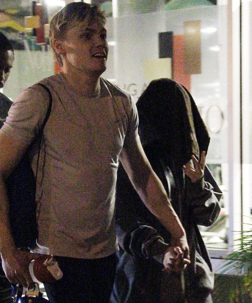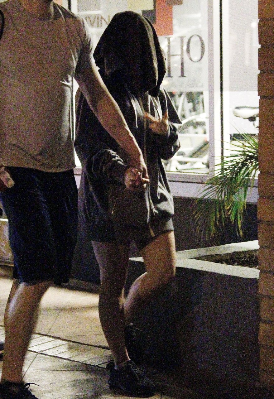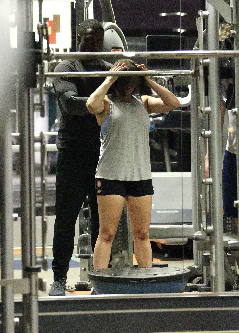 Actriz y modelo Ariel Winter, 20, se cubre la cara durante todo su entrenamiento con su novio Levi Meaden en el gimnasio de Los Ángeles, 08/02/2018.