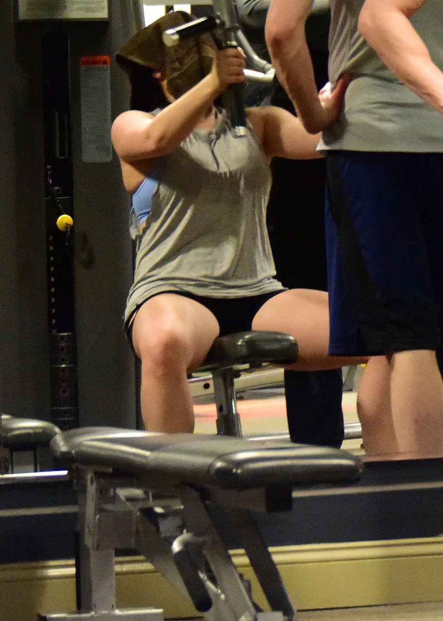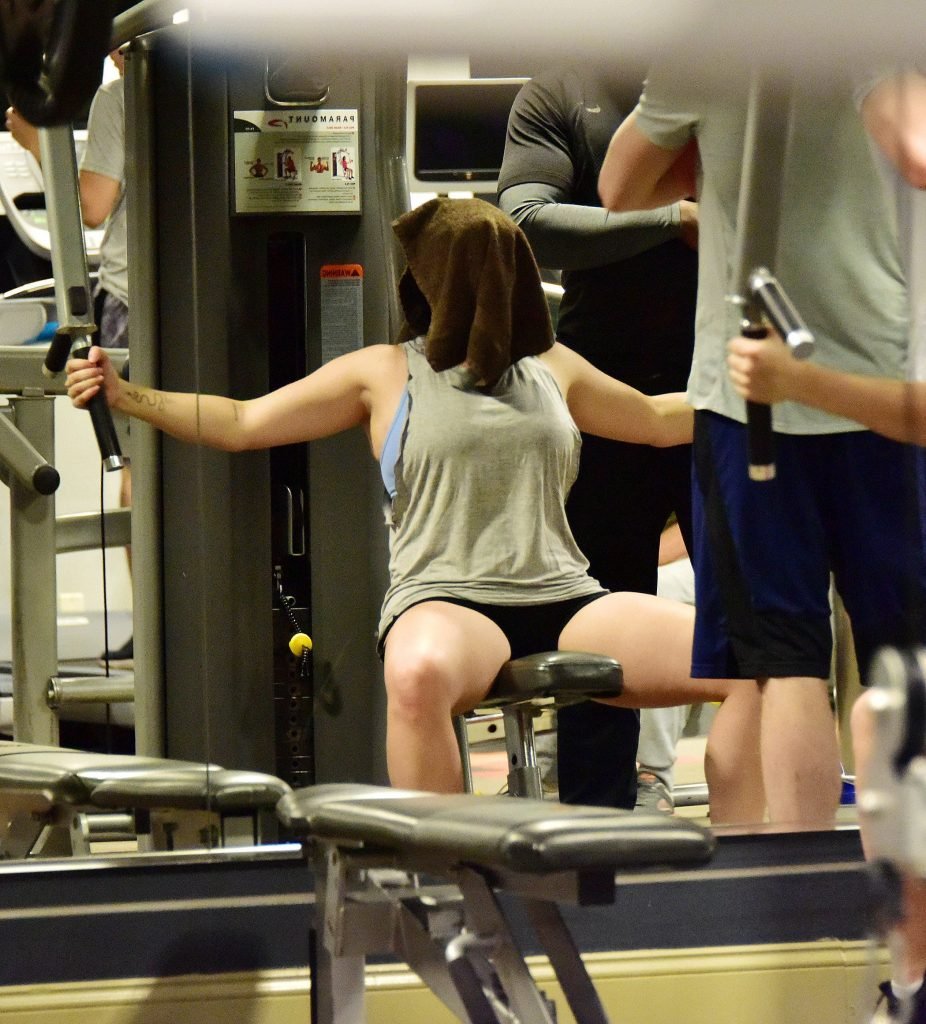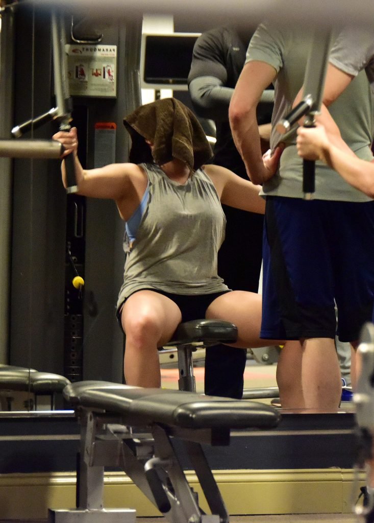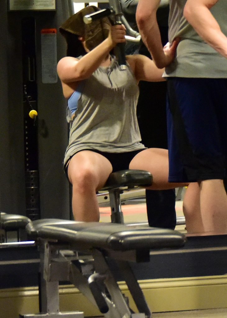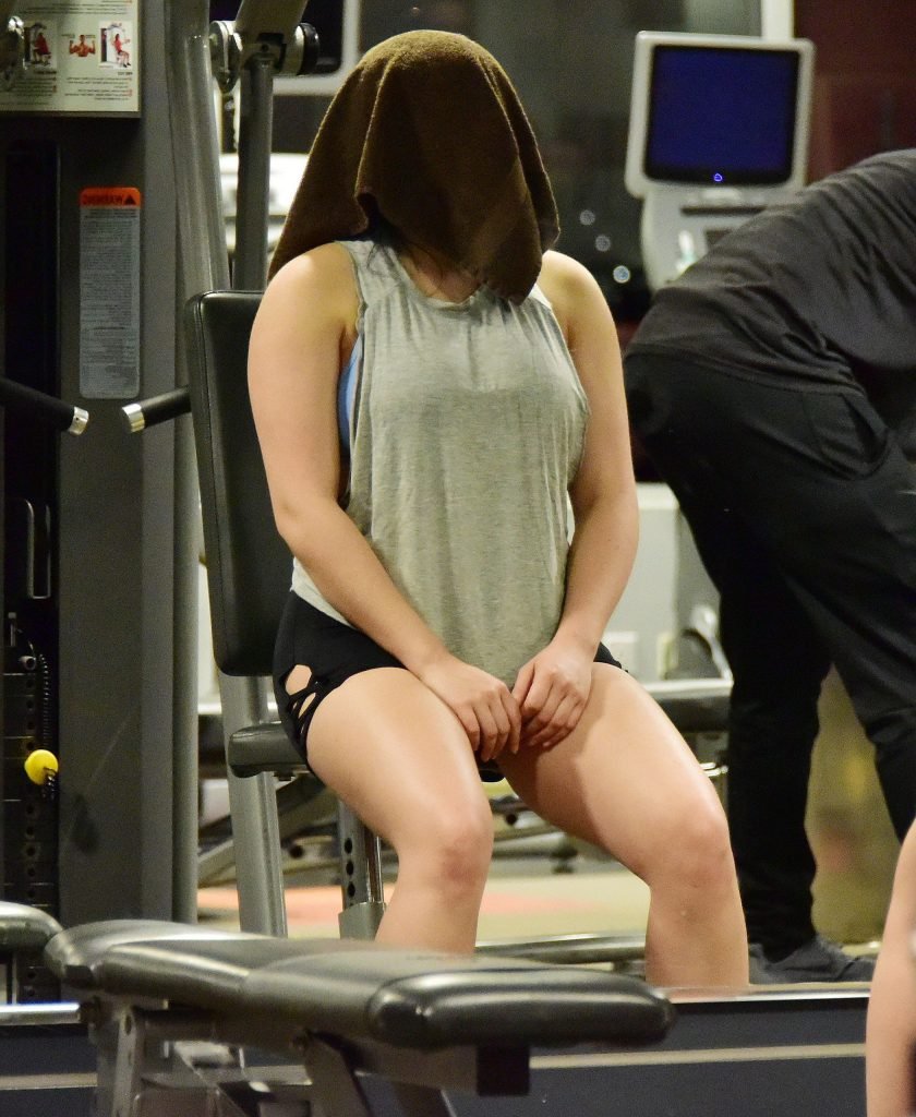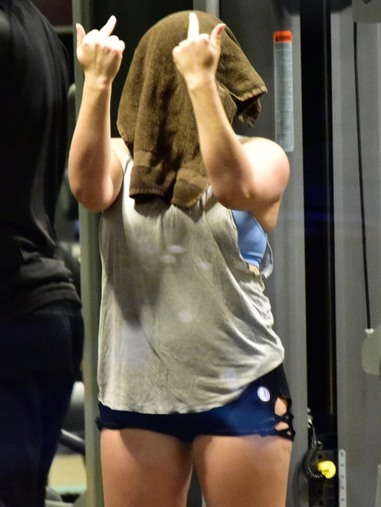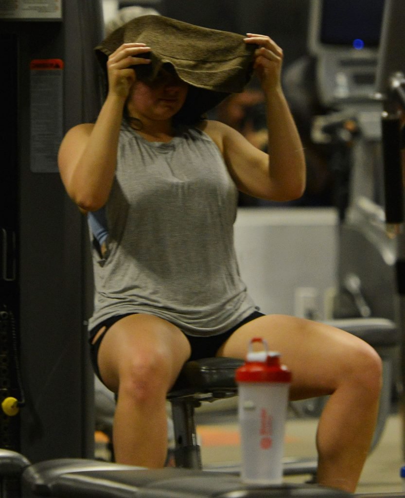Perra, si vas a ir a un gimnasio público no deberías preocuparte por que te tomen fotos. En lugar de llevar una toalla todo el tiempo, ¿por qué no compras un Bowflex y haces ejercicio en casa?