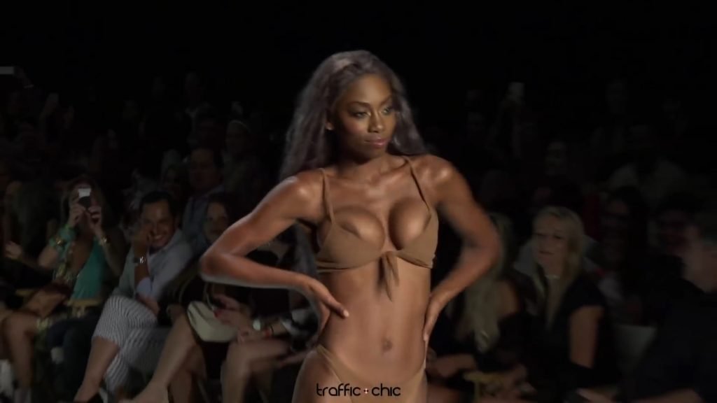 Arreyon Ford muestra sus pechos en la pasarela en Miami Swim Week (julio de 2017). Arreyon ‘Staurm’ Ford es una modelo estadounidense. Edad: 23.