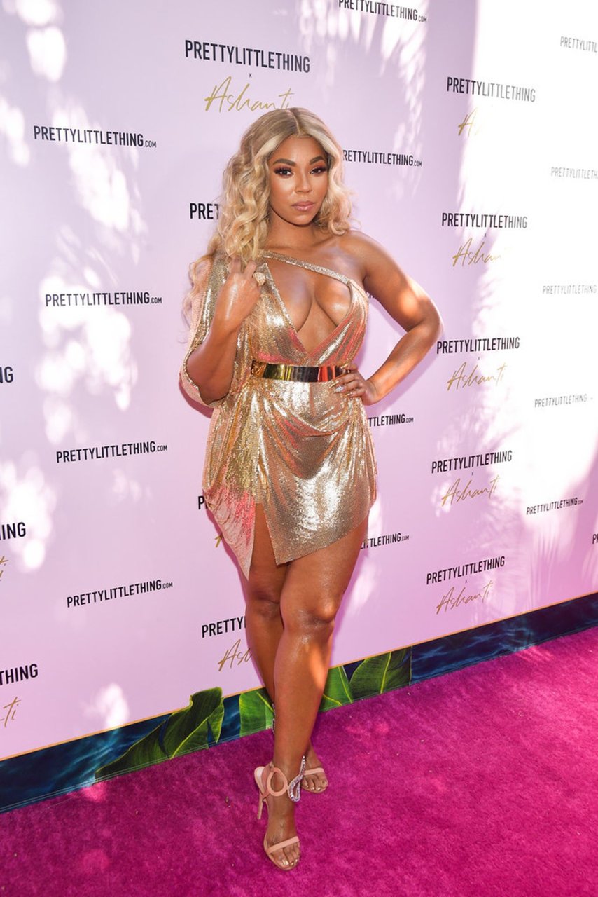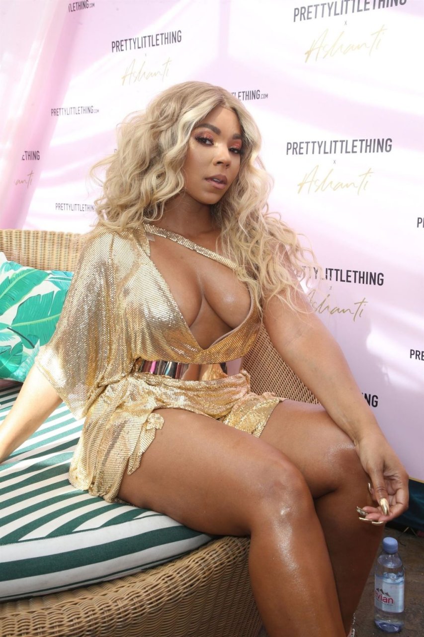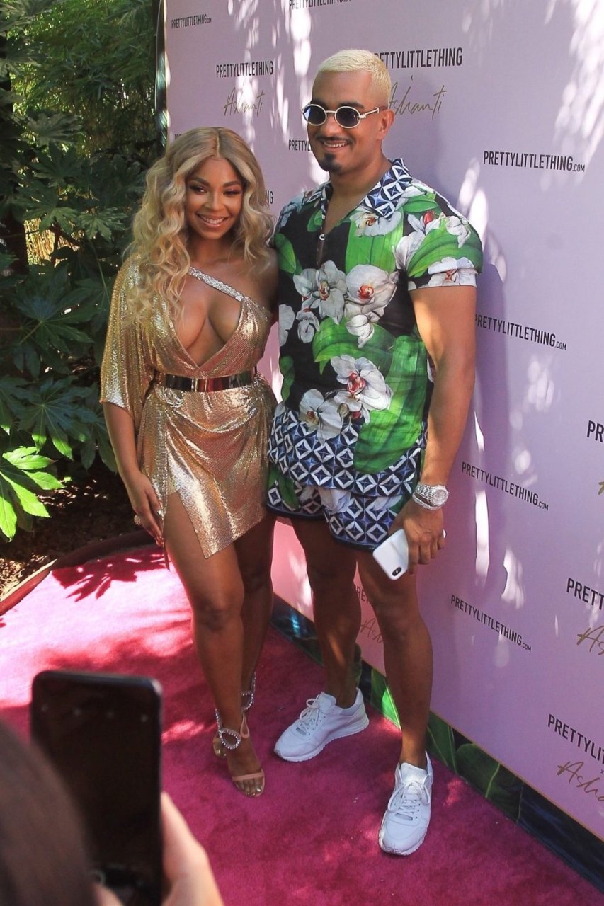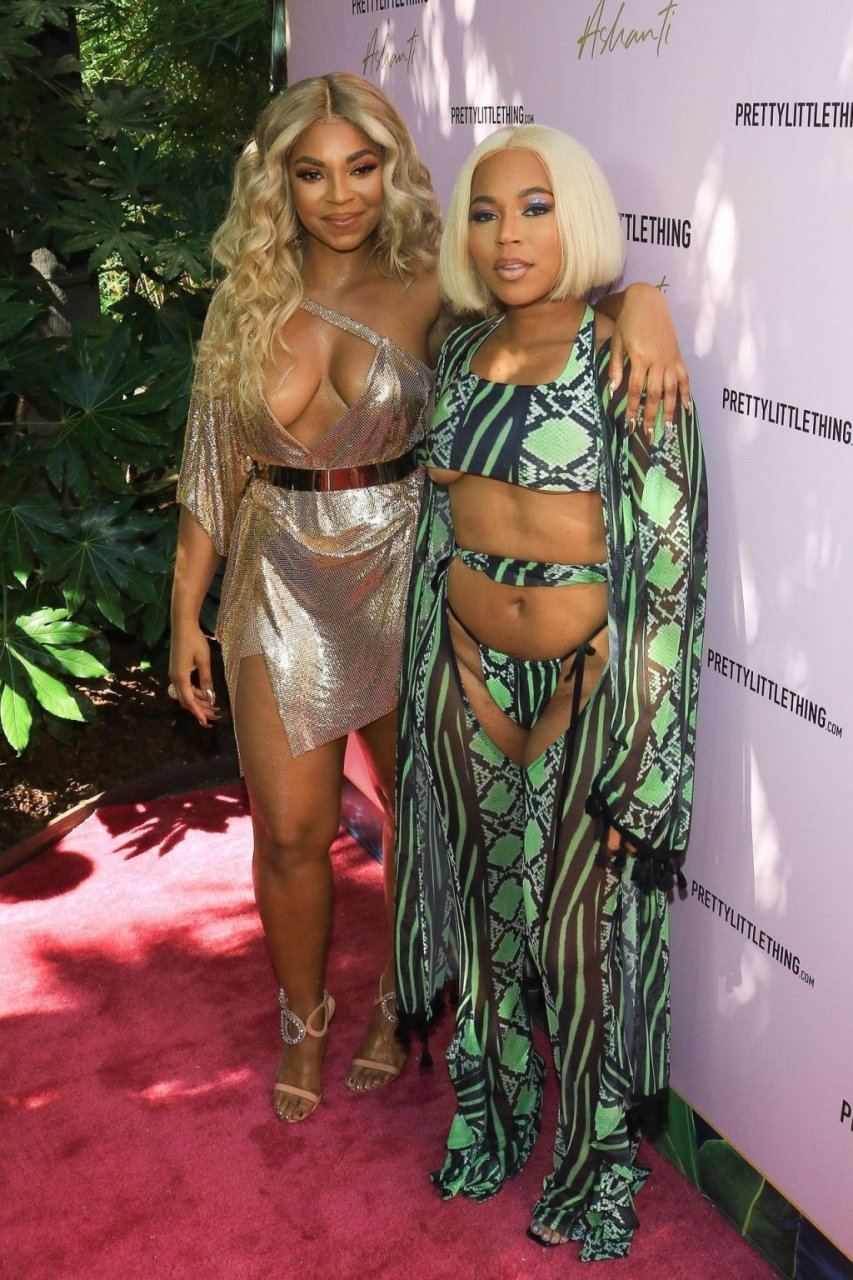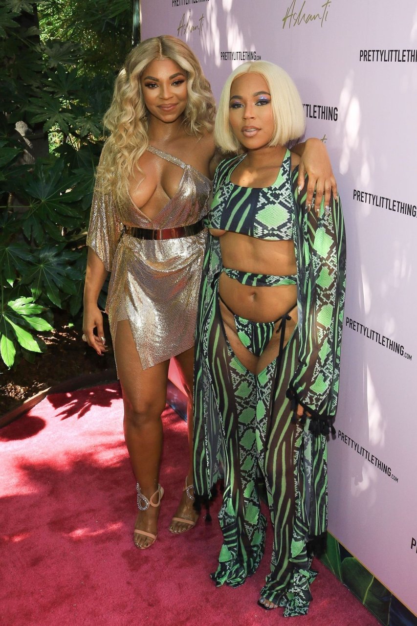 La cantante Ashanti muestra su escote en el evento de lanzamiento PrettyLittleThing X Ashanti en el Hotel Hollywood Roosevelt, 30/06/2019.