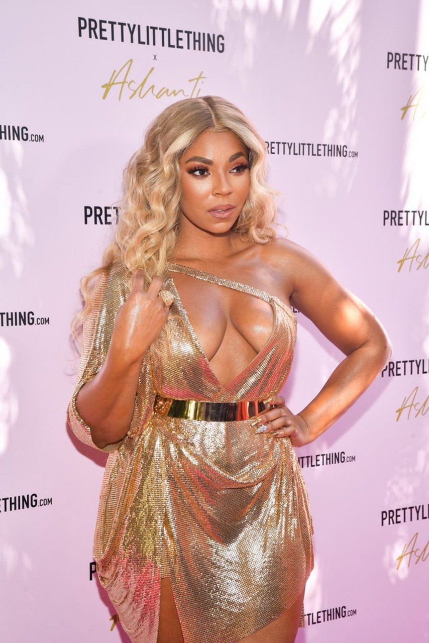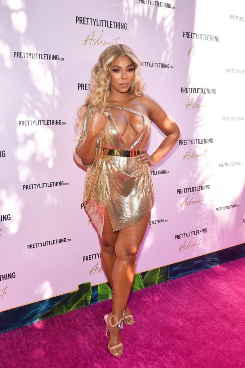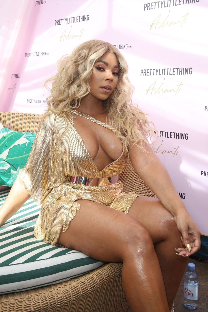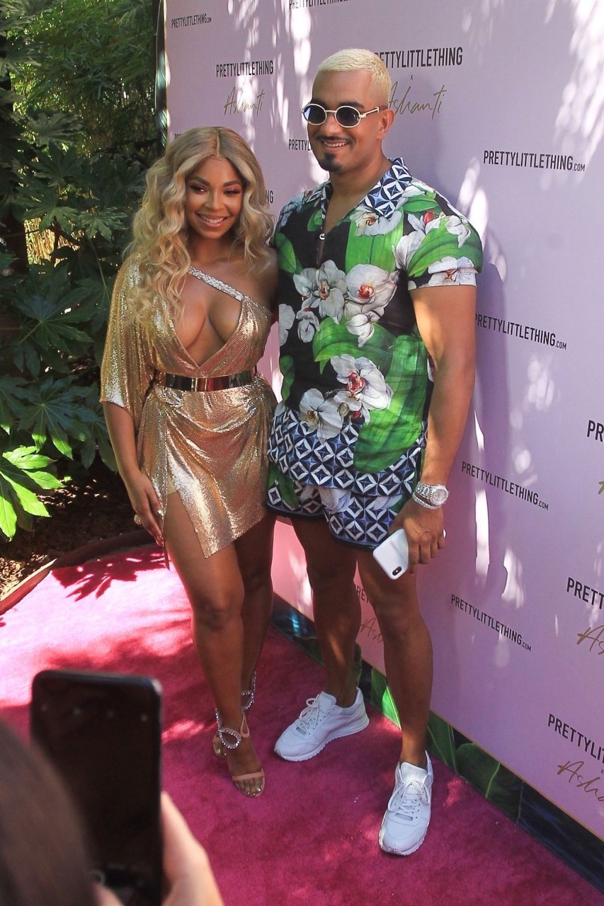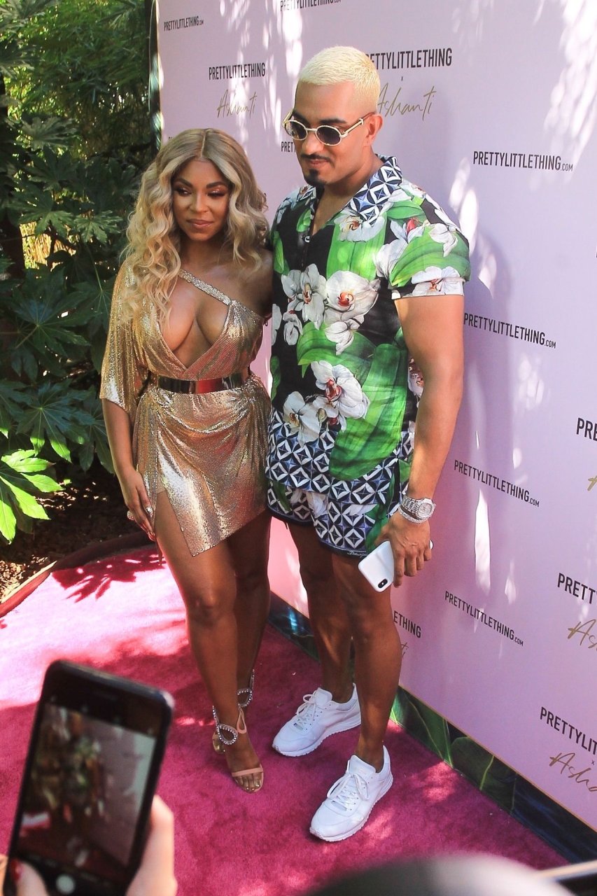 La cantante Ashanti muestra su escote en el evento de lanzamiento PrettyLittleThing X Ashanti en el Hotel Hollywood Roosevelt, 30/06/2019.