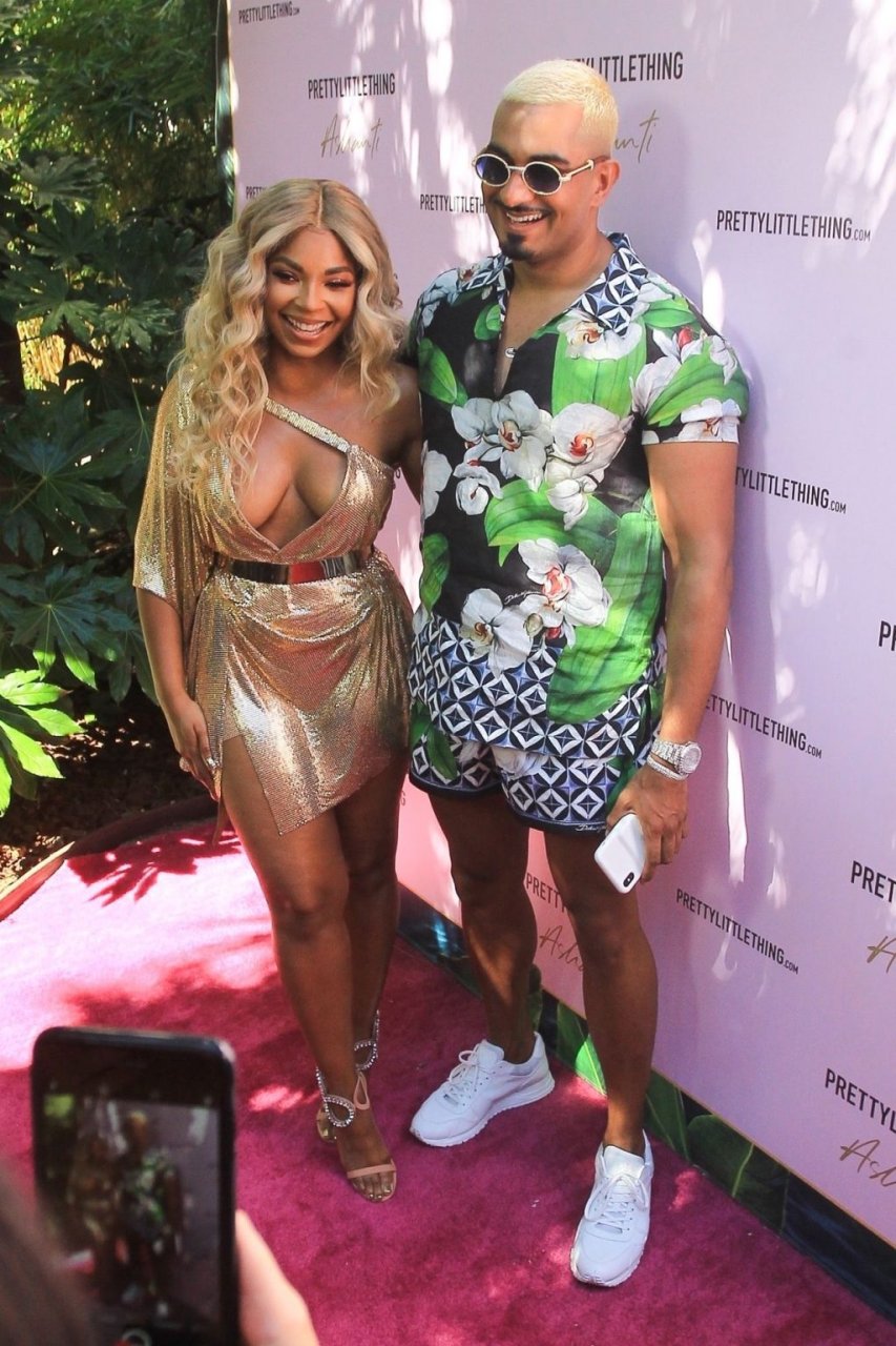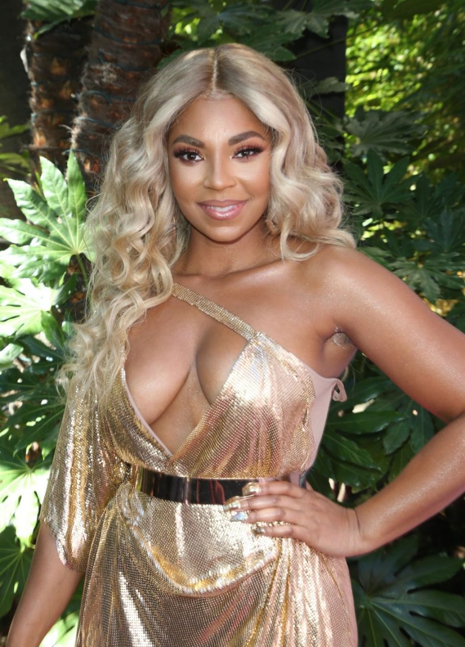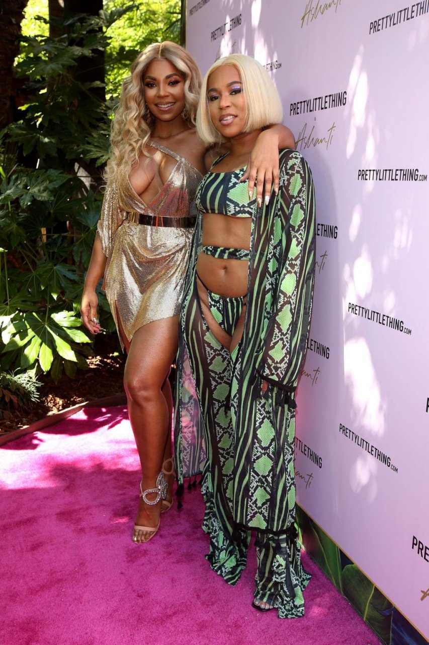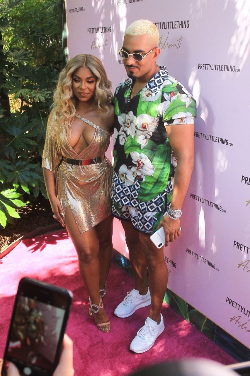 La cantante Ashanti muestra su escote en el evento de lanzamiento PrettyLittleThing X Ashanti en el Hotel Hollywood Roosevelt, 30/06/2019.