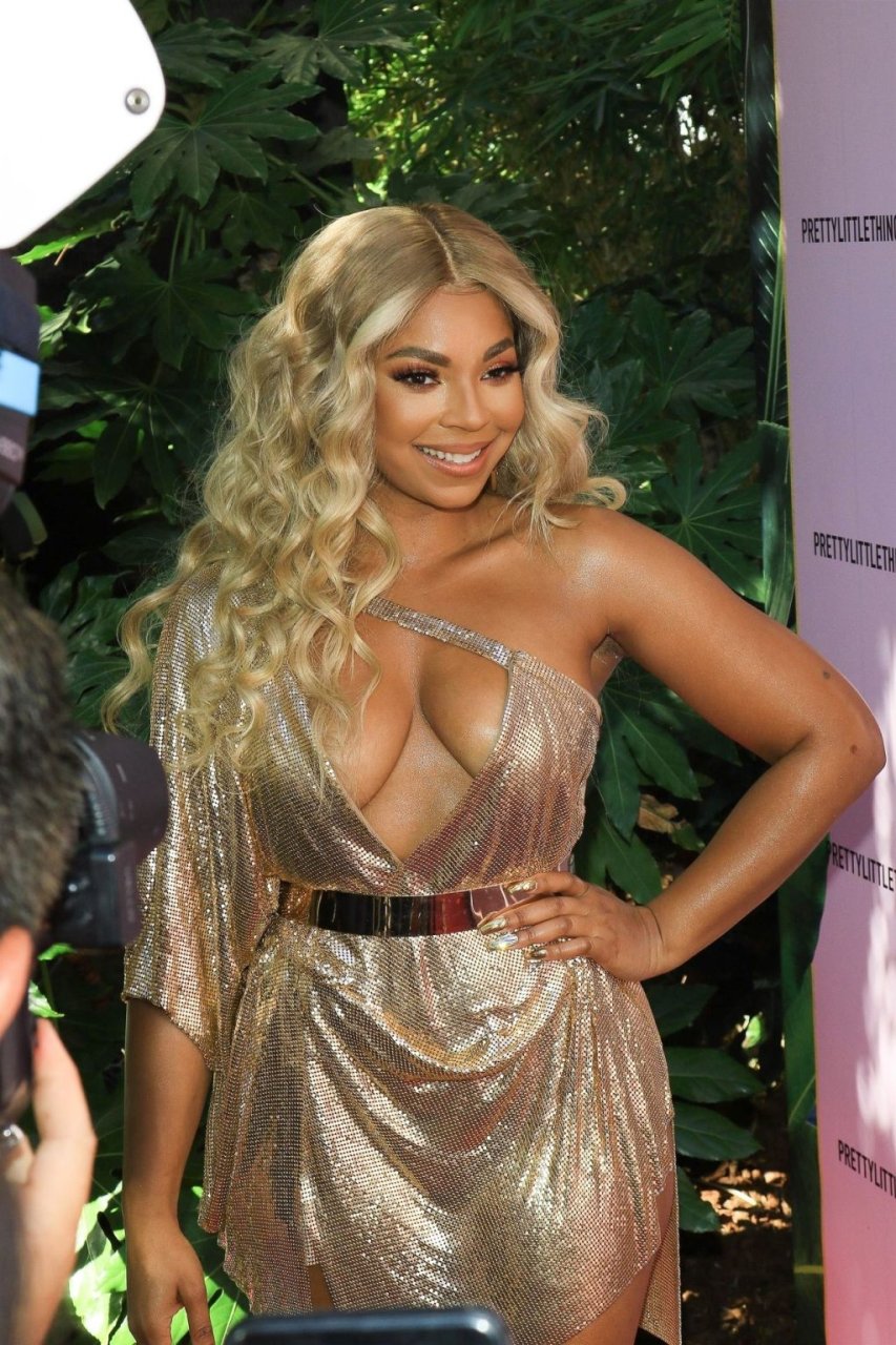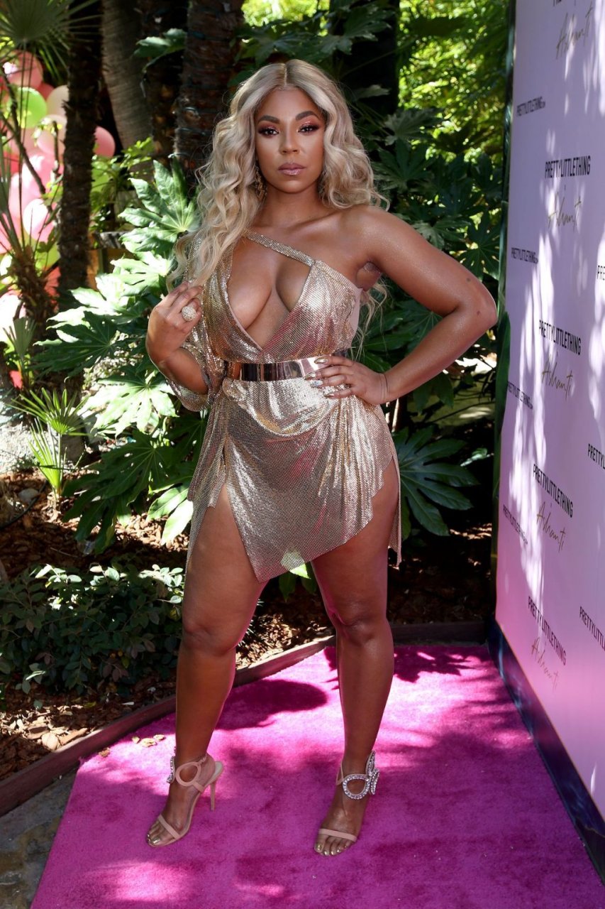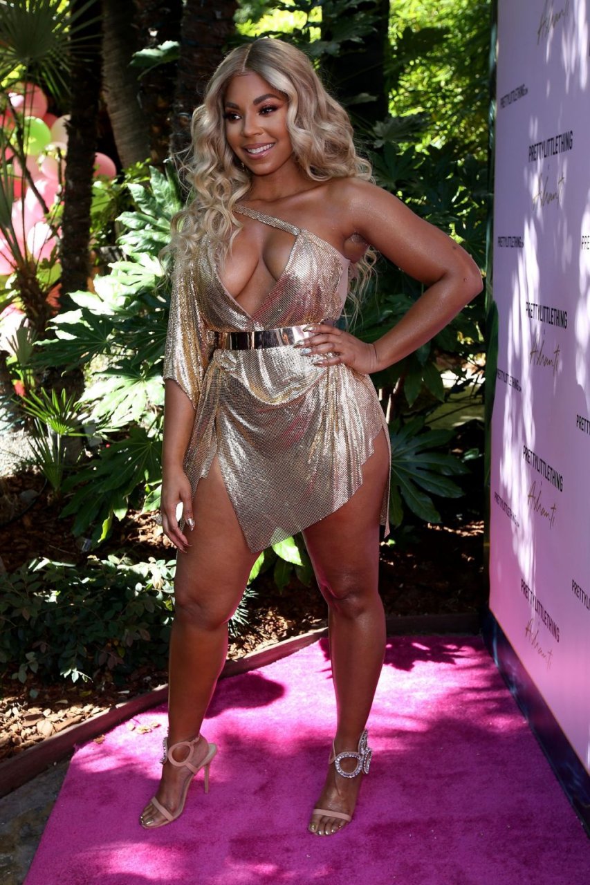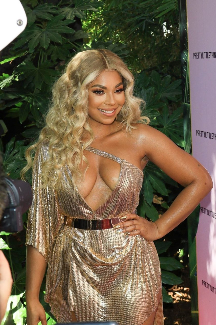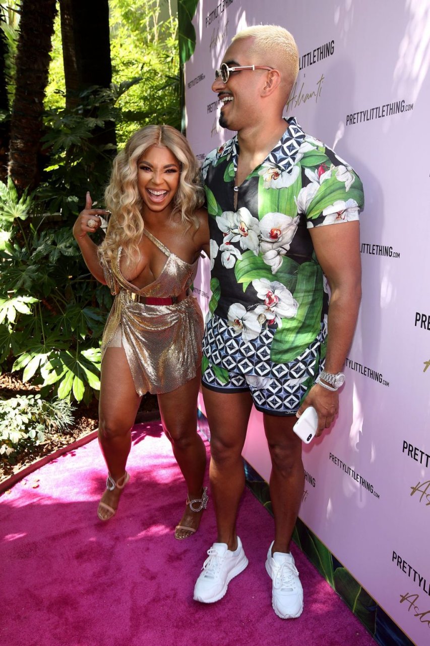 La cantante Ashanti muestra su escote en el evento de lanzamiento PrettyLittleThing X Ashanti en el Hotel Hollywood Roosevelt, 30/06/2019.