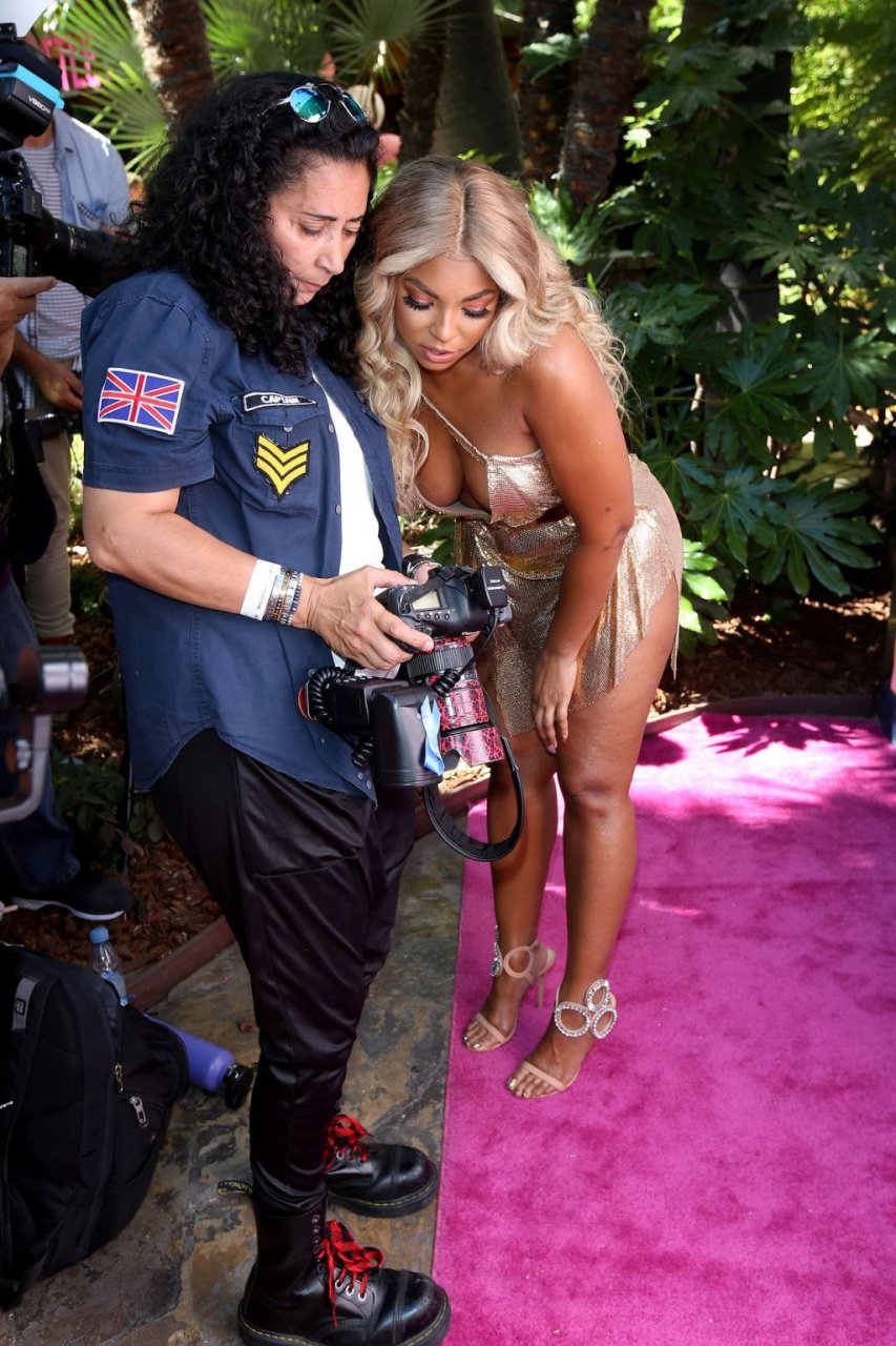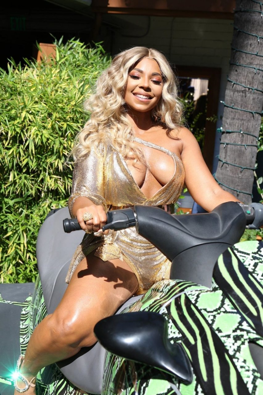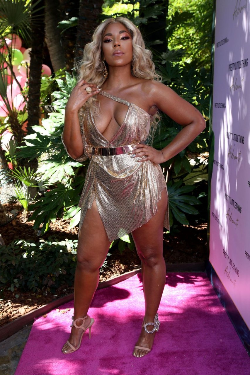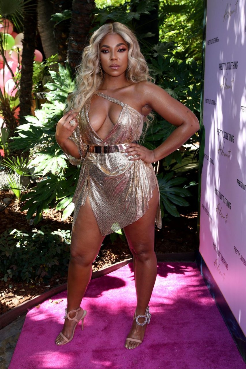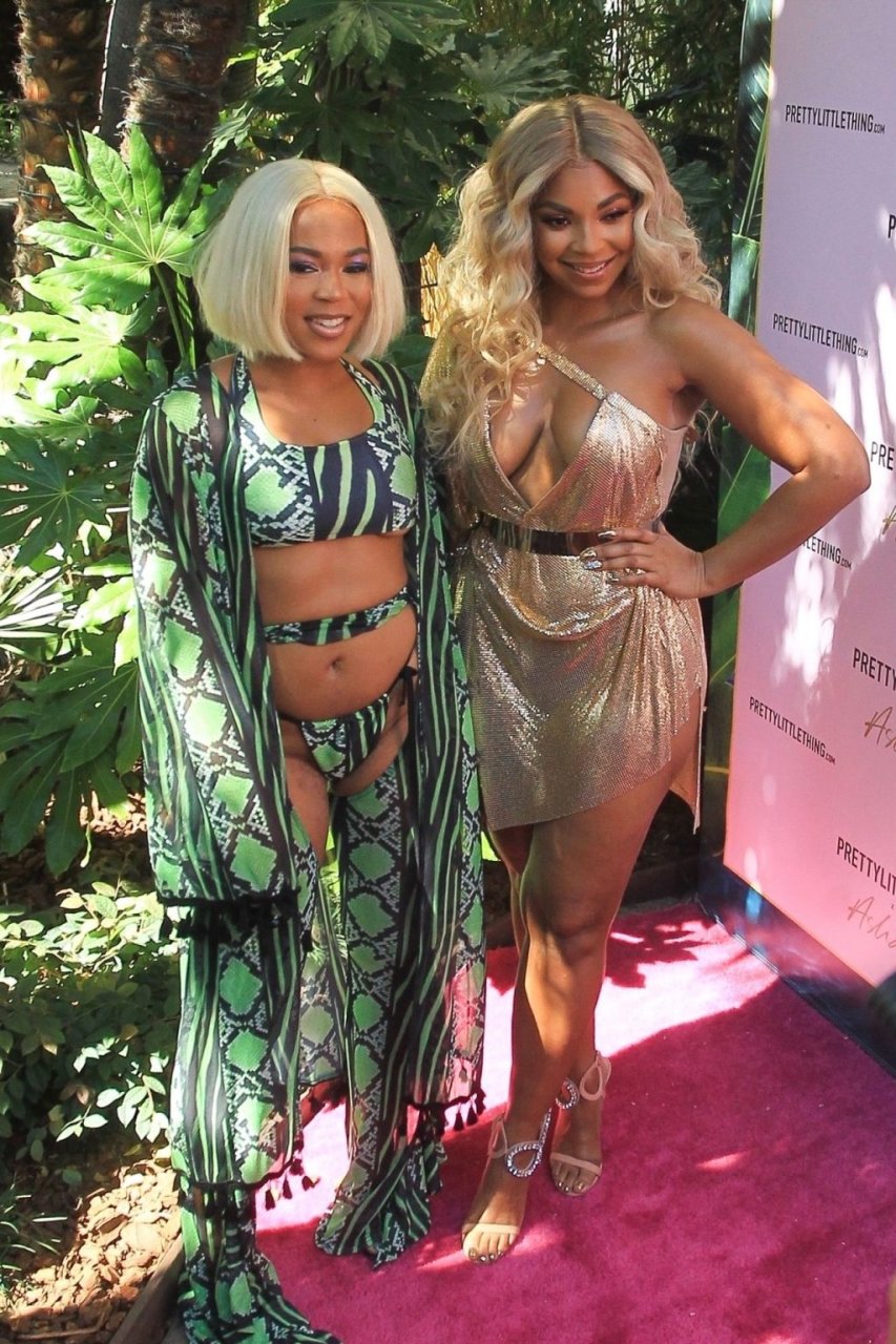 La cantante Ashanti muestra su escote en el evento de lanzamiento PrettyLittleThing X Ashanti en el Hotel Hollywood Roosevelt, 30/06/2019.