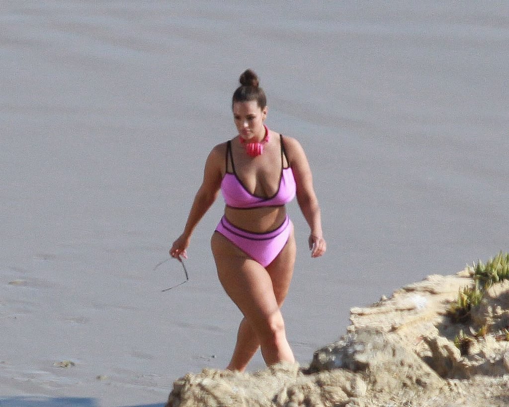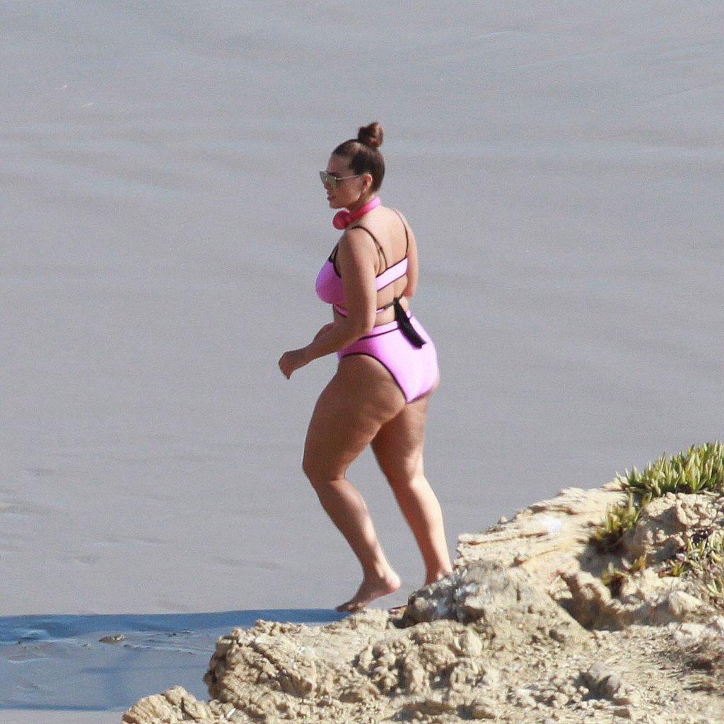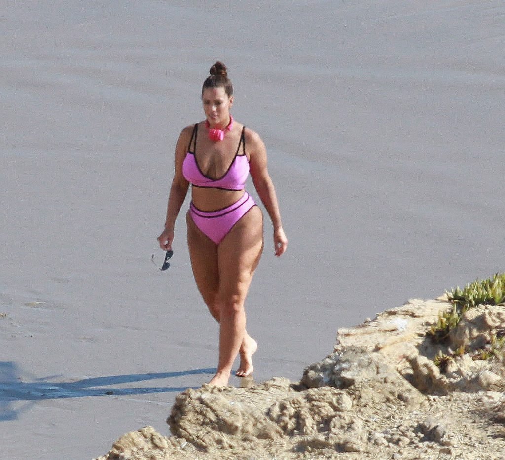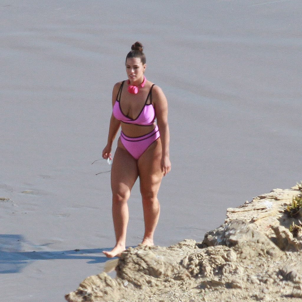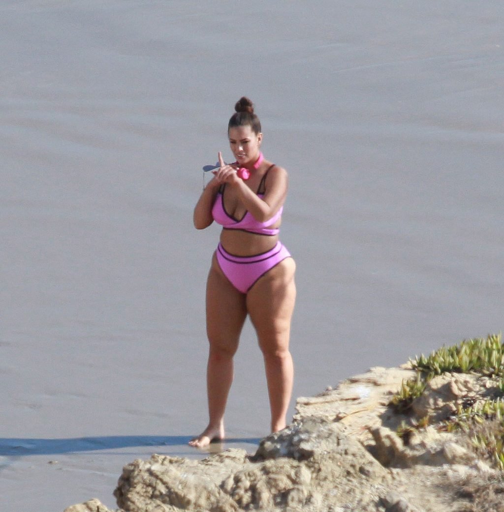 Ashley Graham fue vista usando un bikini rosa durante una sesión de fotos en la playa en Los Ángeles, California, 14/01/2019.