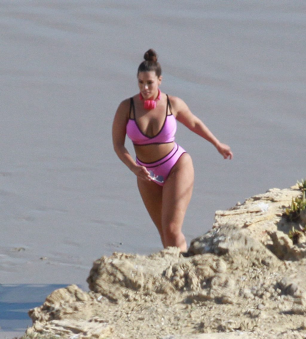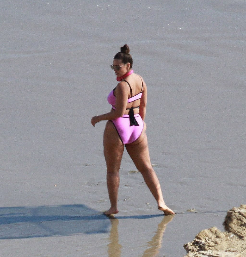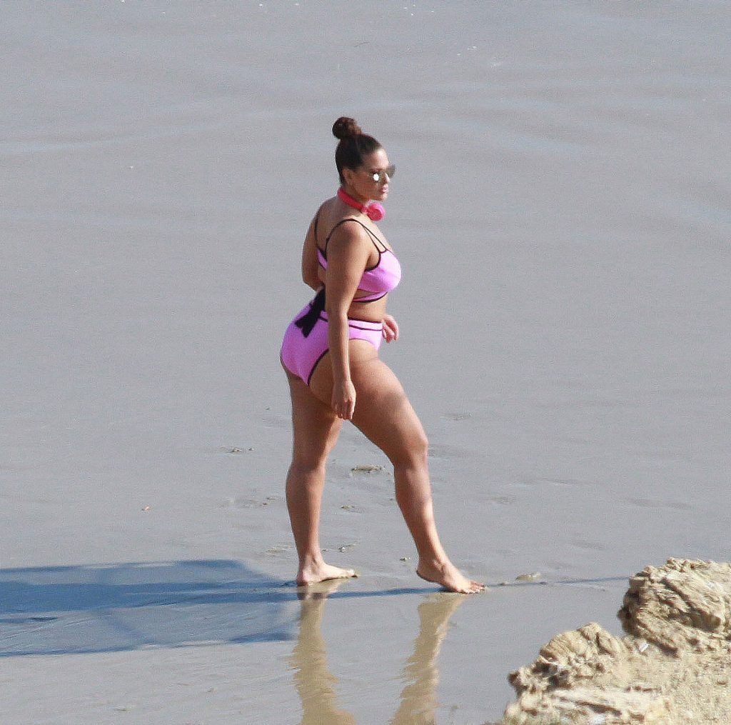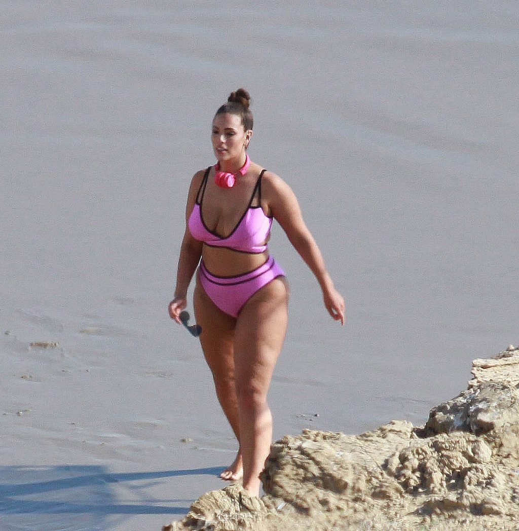 Ashley Graham fue vista usando un bikini rosa durante una sesión de fotos en la playa en Los Ángeles, California, 14/01/2019.