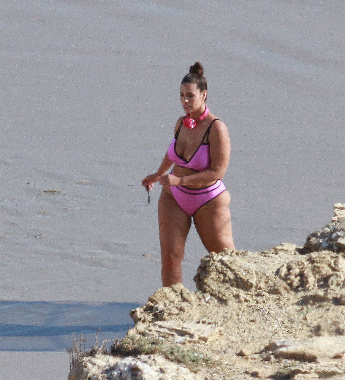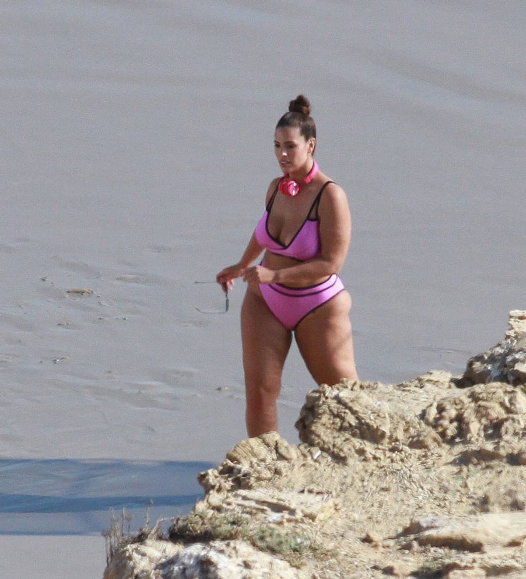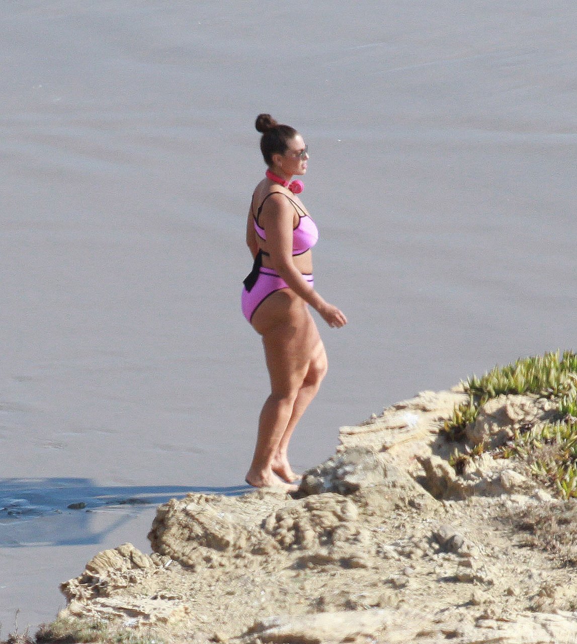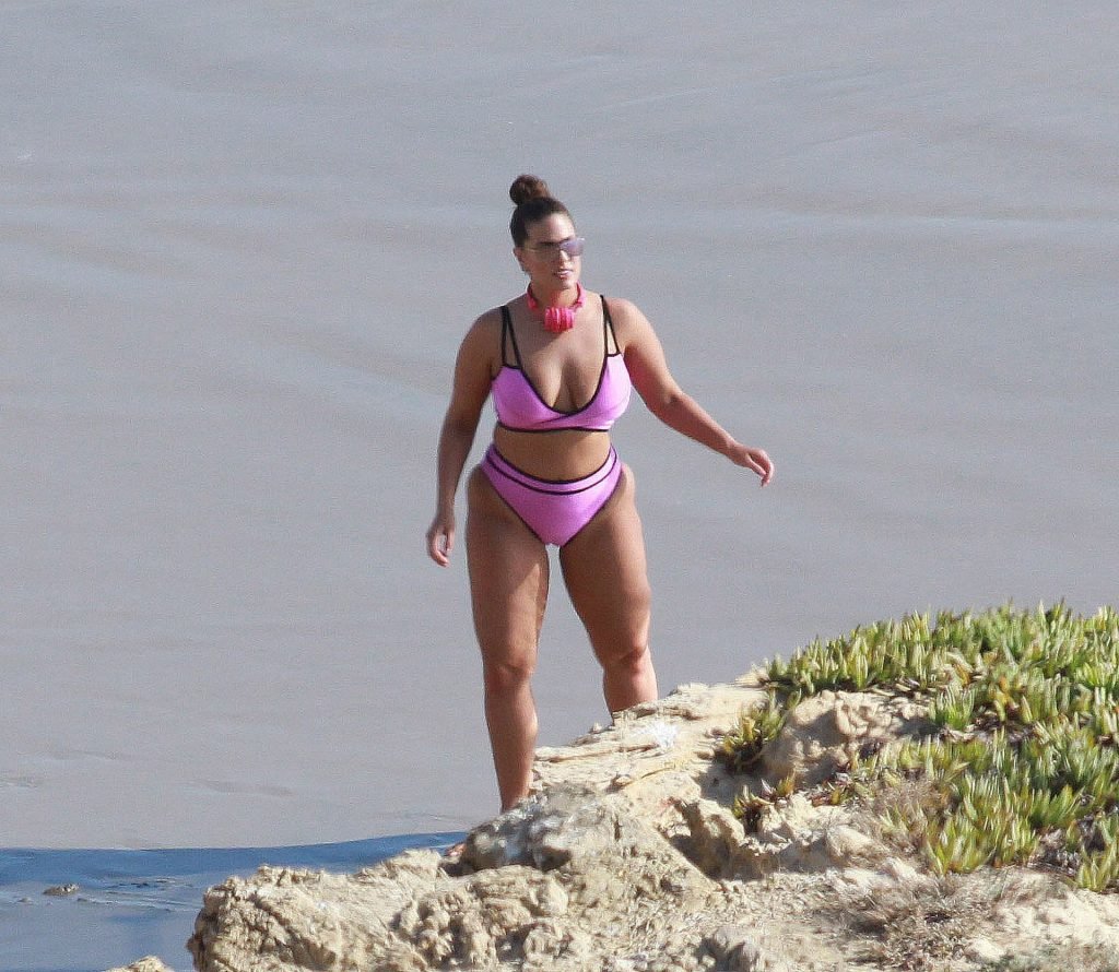 Ashley Graham fue vista usando un bikini rosa durante una sesión de fotos en la playa en Los Ángeles, California, 14/01/2019.