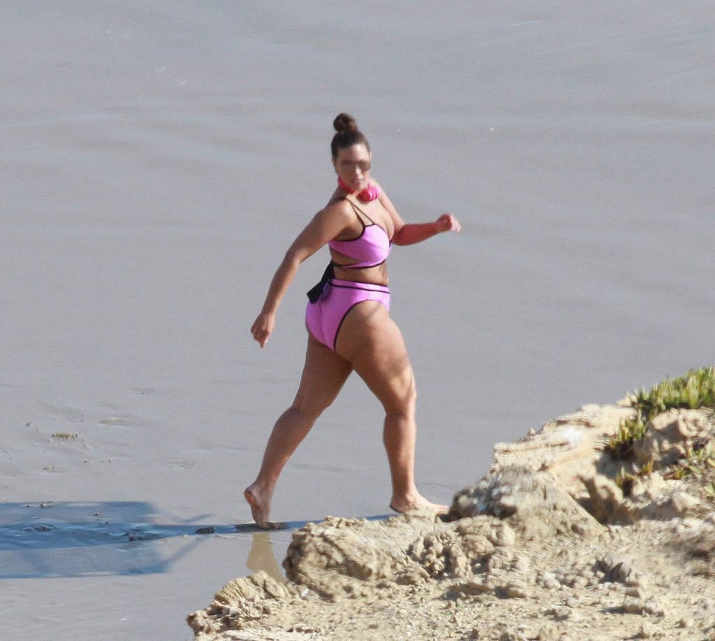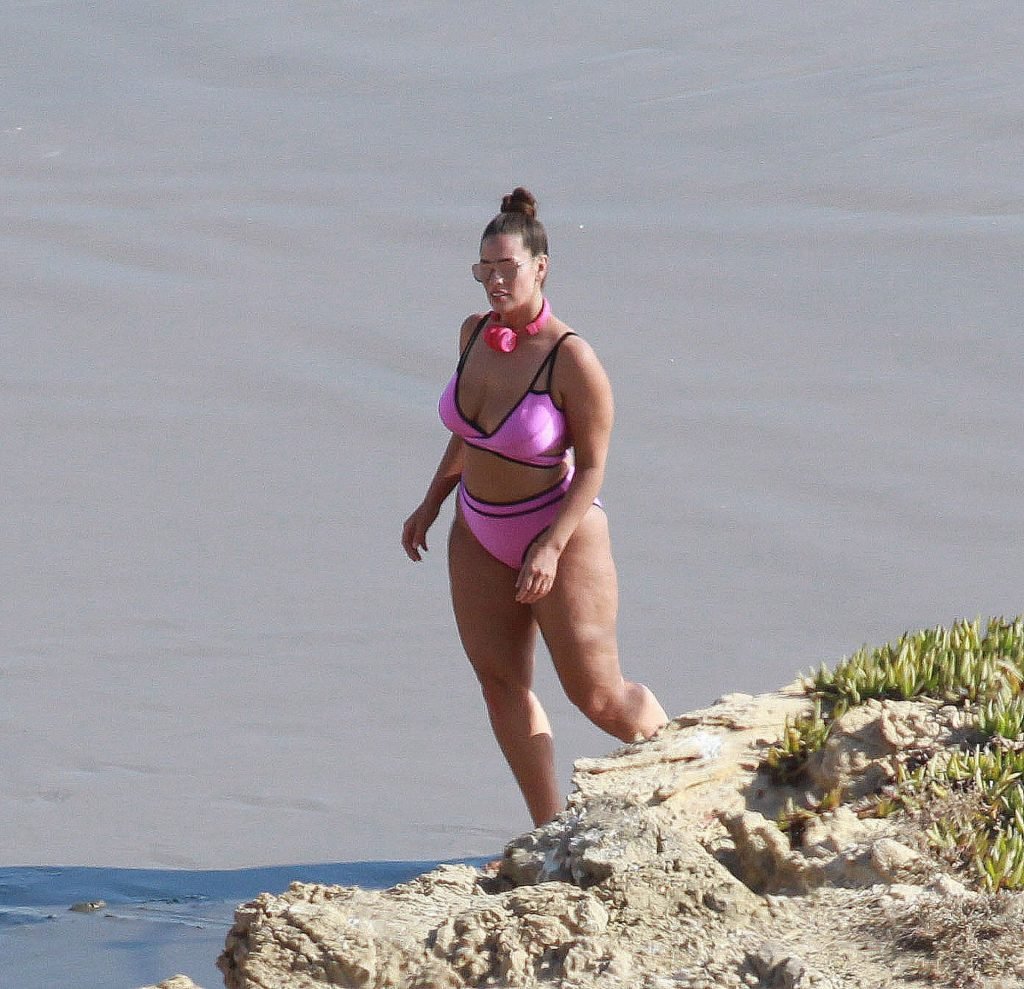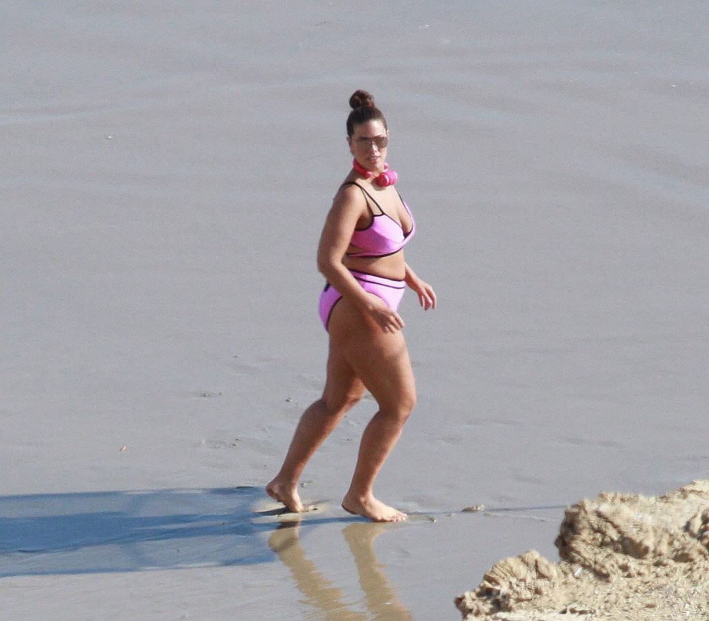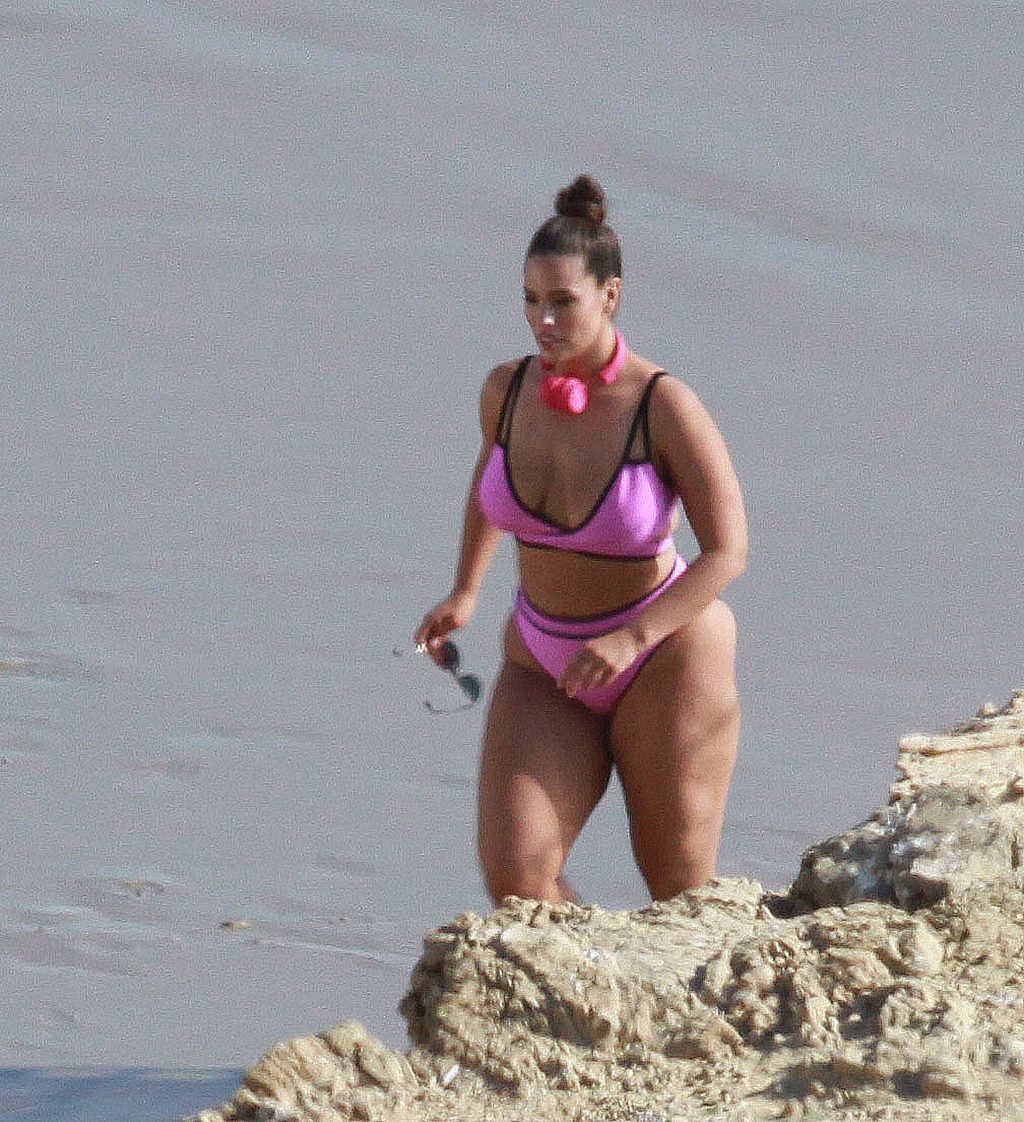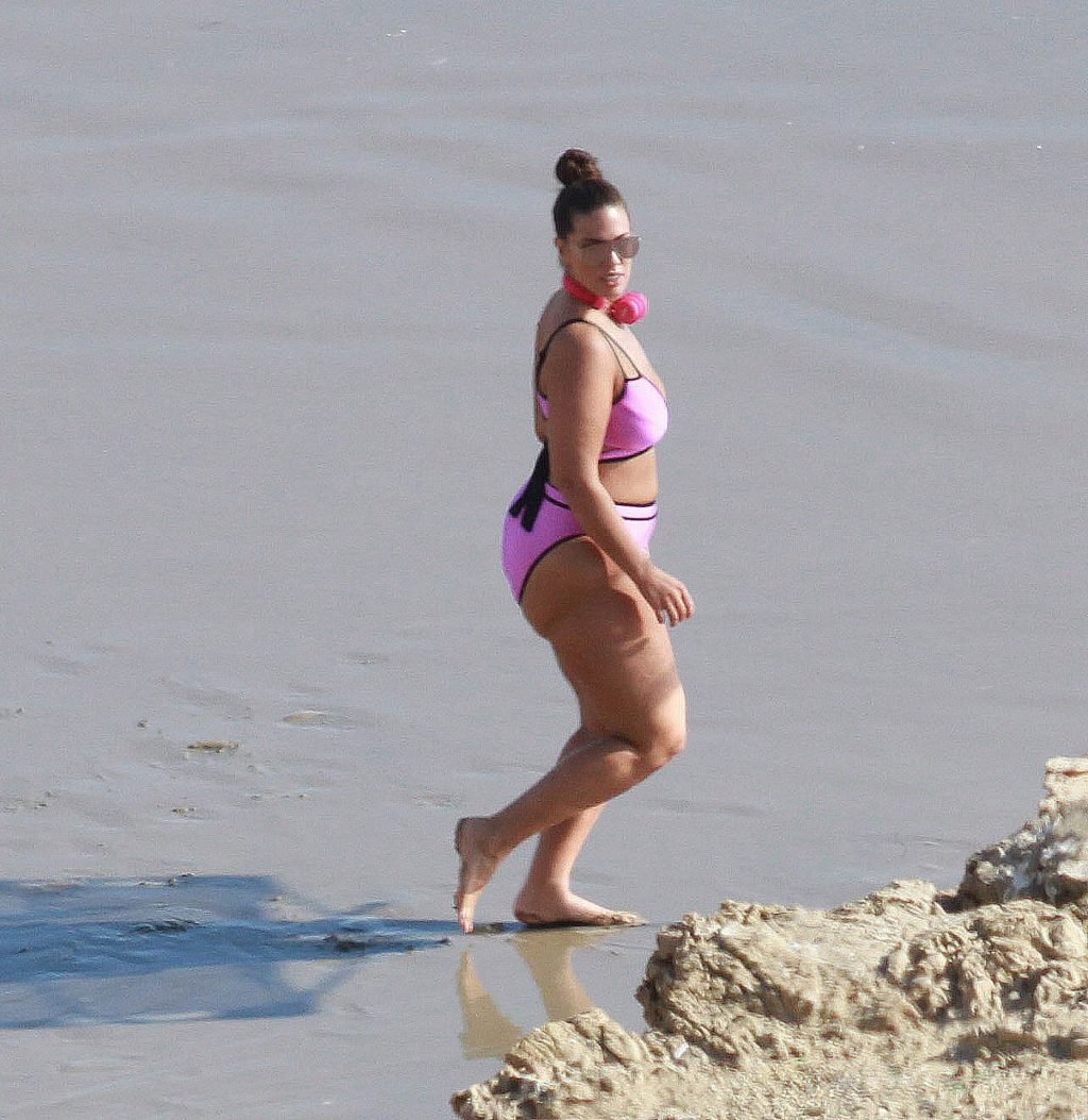 Ashley Graham fue vista usando un bikini rosa durante una sesión de fotos en la playa en Los Ángeles, California, 14/01/2019.
