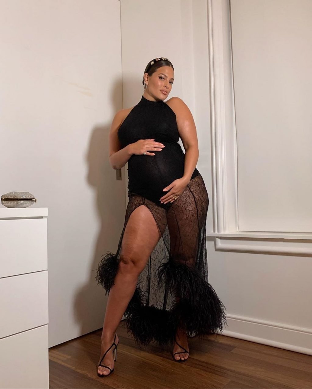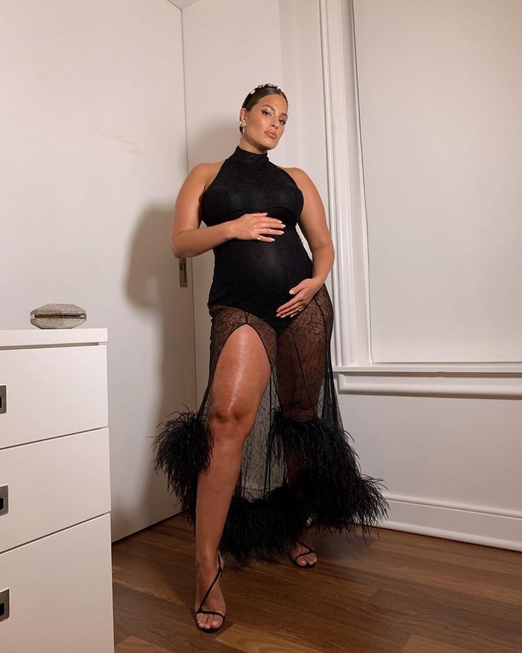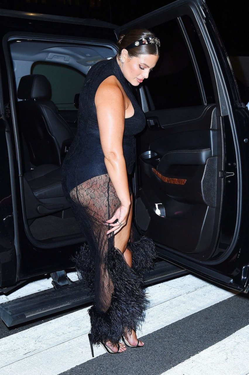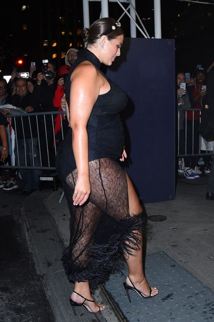 Ashley Graham embarazada muestra sus largas piernas al llegar al Hotel Plaza para el evento de Harper’s BAZAAR durante la Semana de la Moda de Nueva York, 06/09/2019.