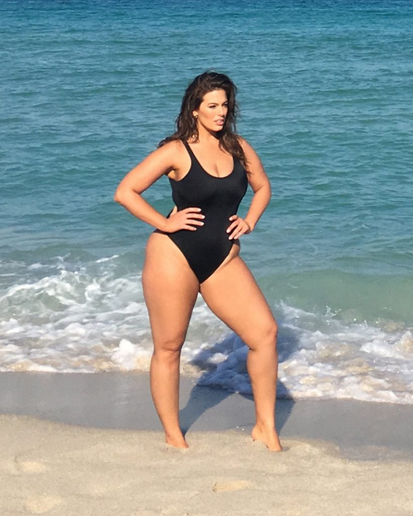 Ashley Graham se muestra aquí con toda su belleza natural en una serie de fotografías sin retocar de una sesión en la playa para el lanzamiento de su colección de trajes de baño para el verano de 2018.