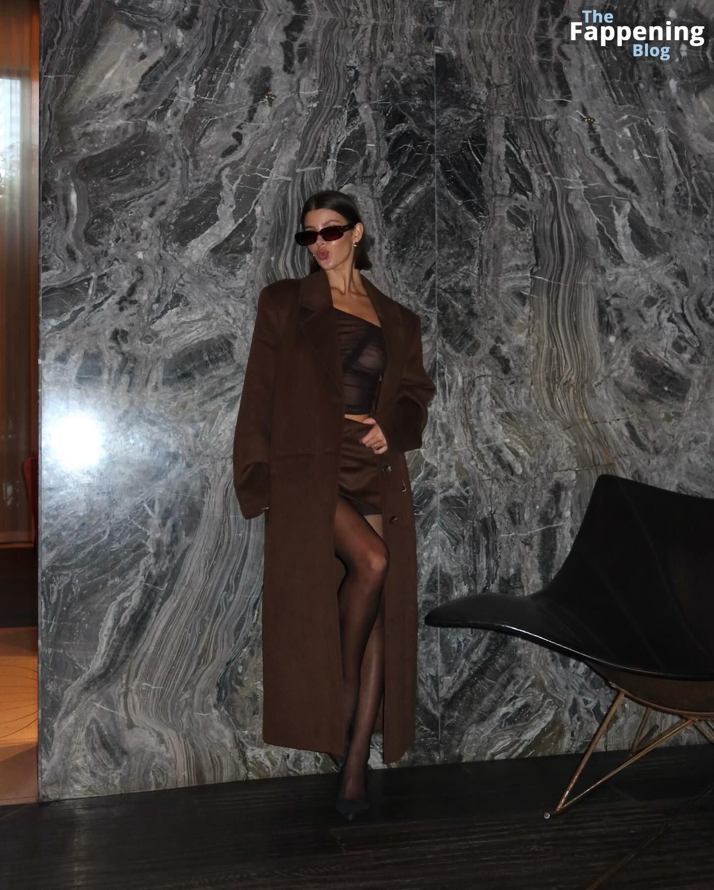 La estrella de las redes sociales Ashley Marie Dickerson presume sus pechos desnudos posando sin sujetador en una nueva sesión para Revolve.