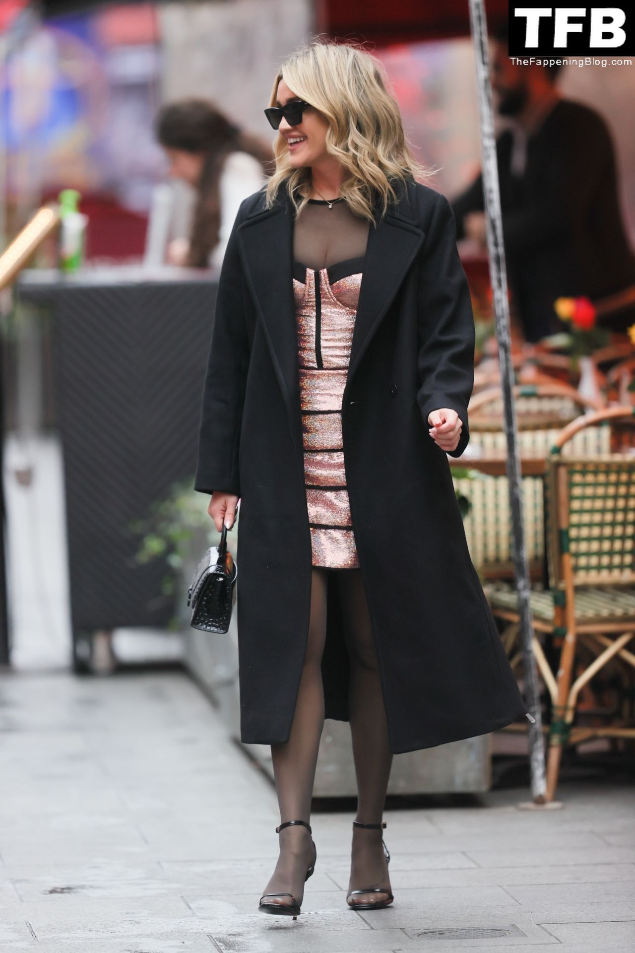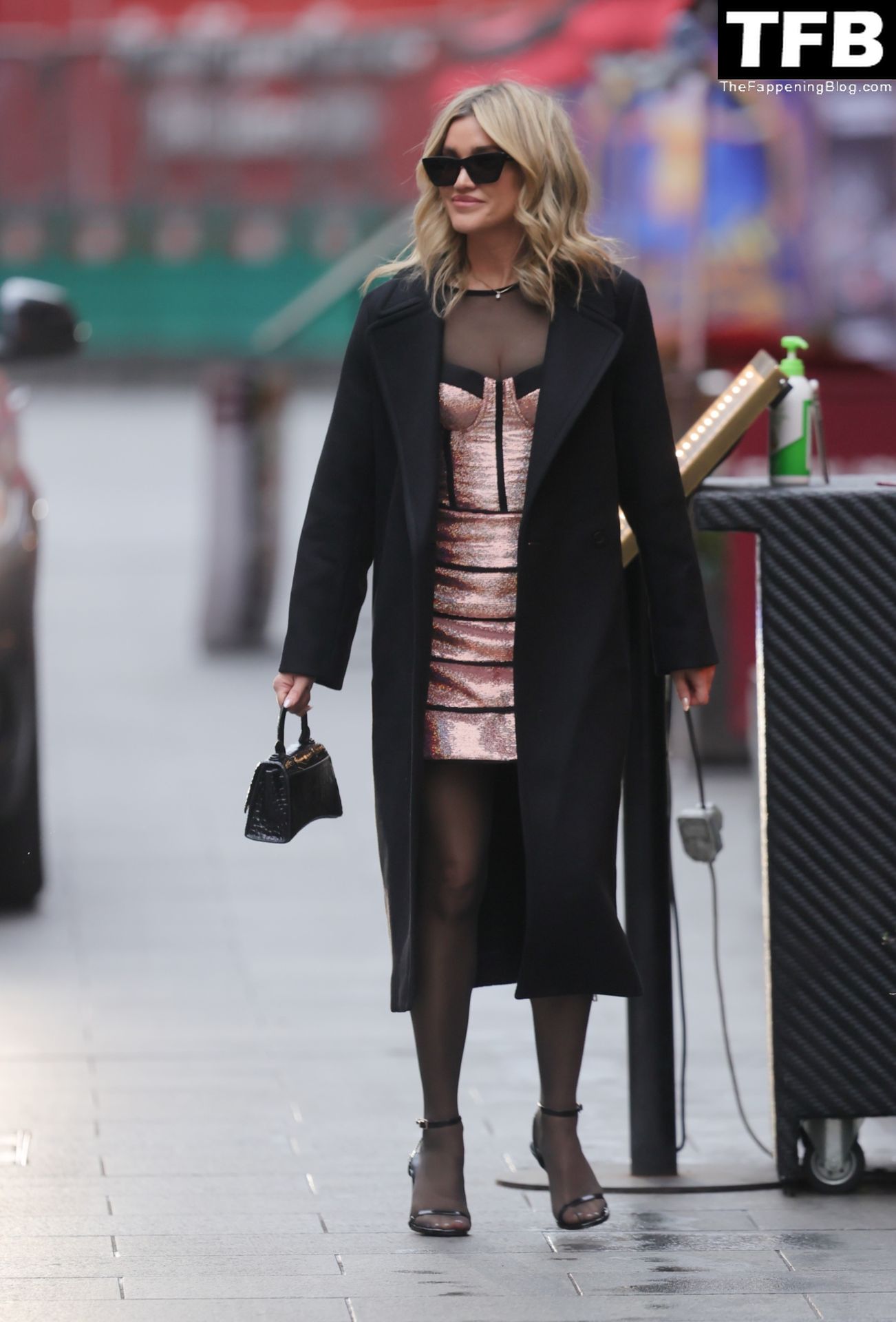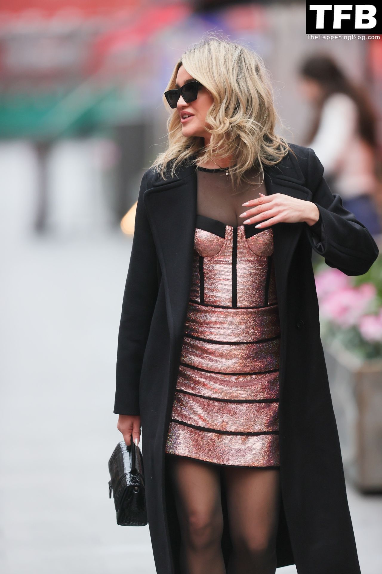 Pussycat Doll Ashley Roberts muestra escote con un sexy vestido metálico estilo corsé en Heart Radio mientras le muestra a su ex Giovanni Pernice lo que se está perdiendo – Londres, 16/12/2021.