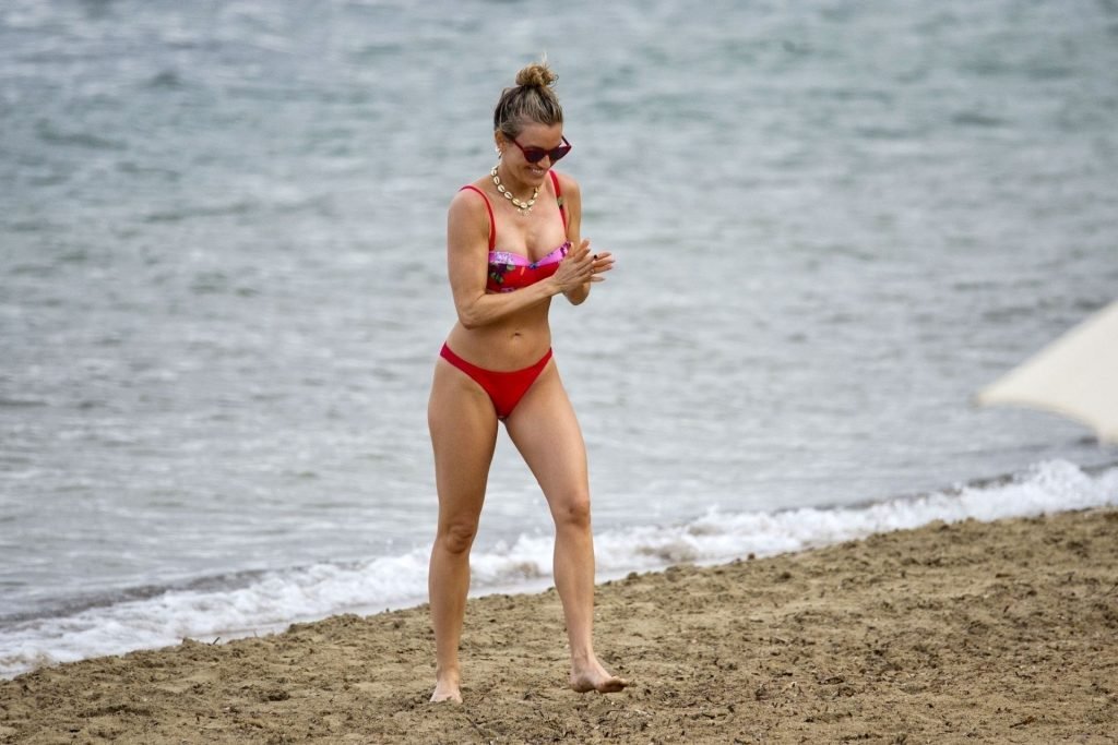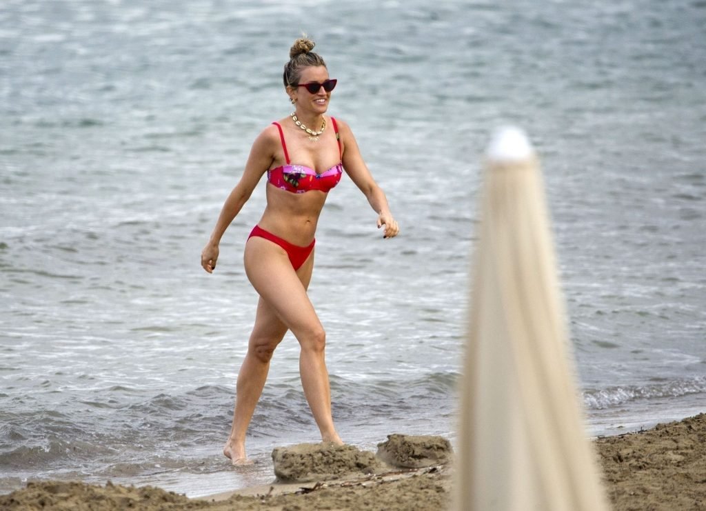 La ex cantante de “Pussycat Dolls” Ashley Roberts mostró su increíble y esbelta figura con su llamativo bikini rojo con estampado floral durante sus vacaciones con amigos en Ibiza, 12/08/2019.